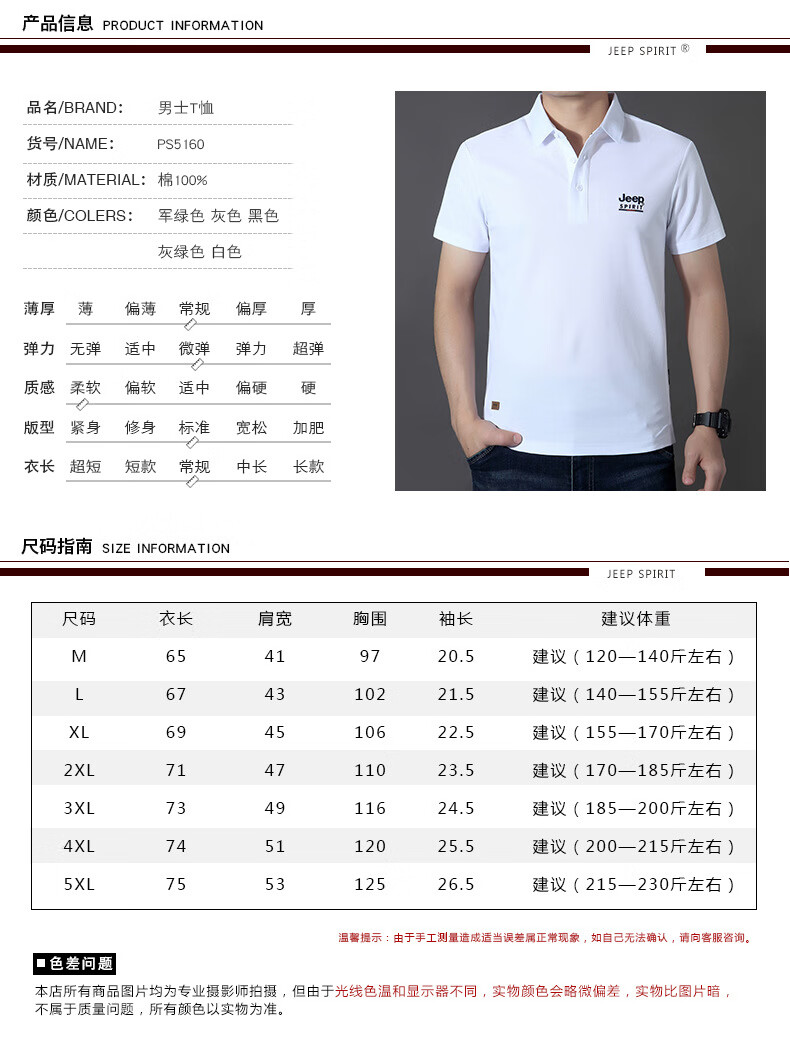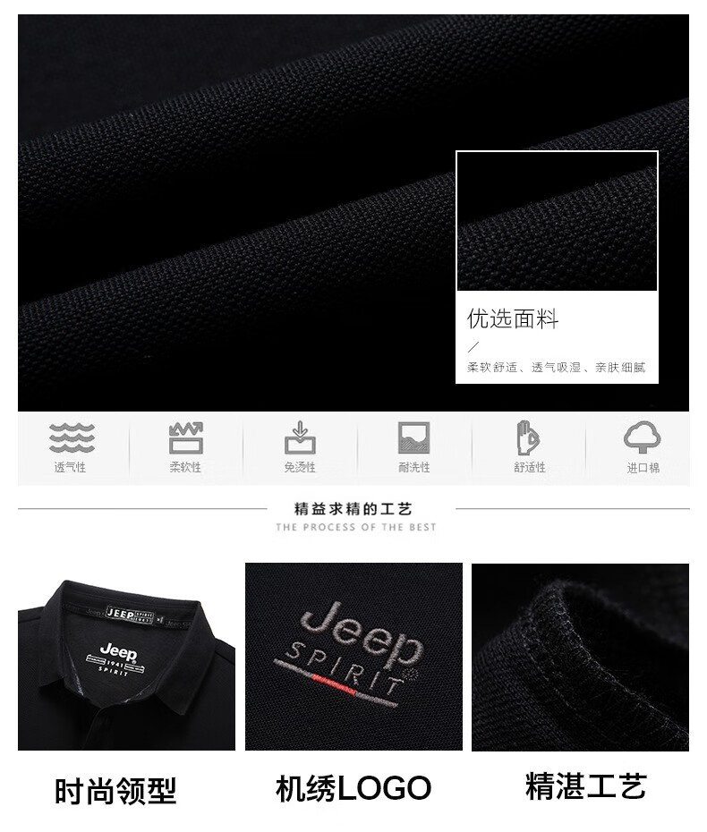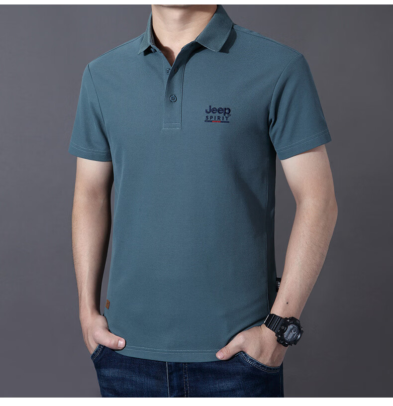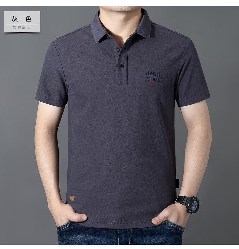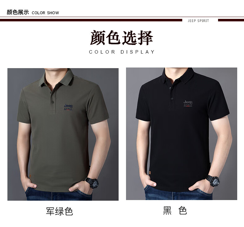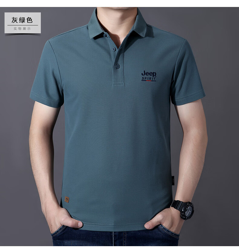 JEEP SPIRIT短袖t恤男棉2025春夏修身休闲大码翻领男士Polo 白色 M