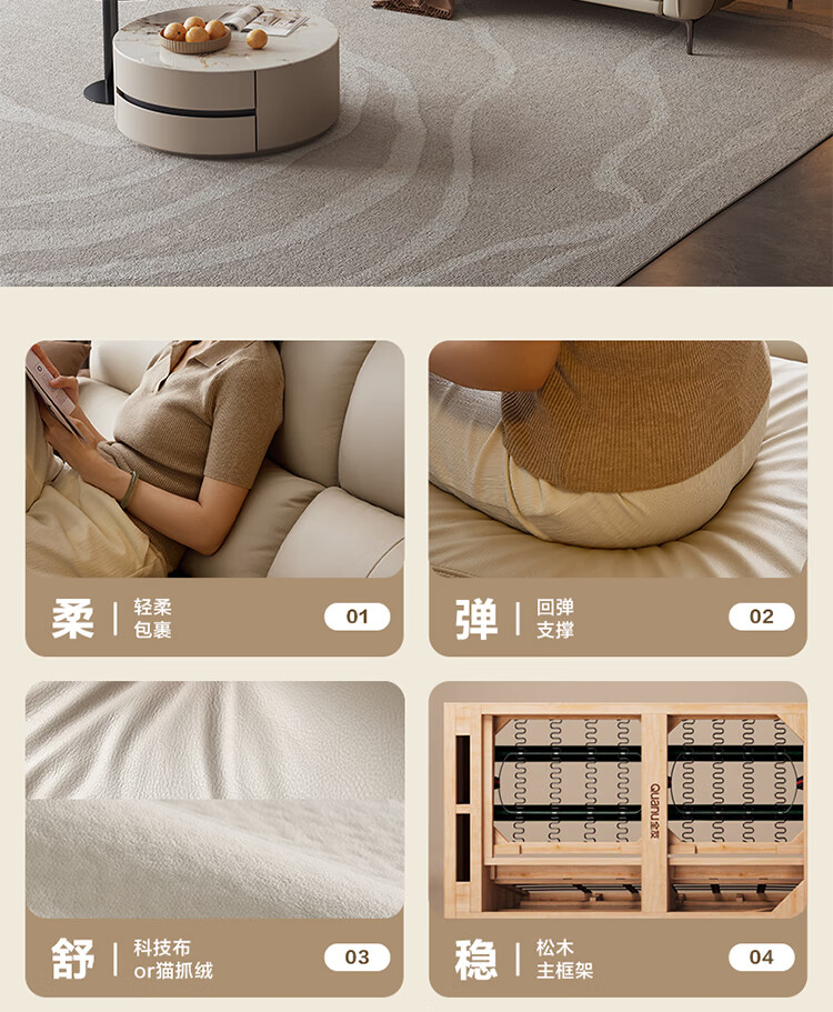 清茵阁2025新款现代简约多功能沙发床两用可折叠沙发床客厅小户型沙发床 【新款猫爪皮+实木脚】米黄 【抑菌乳胶款】升级款2*1.2米(2腰枕2扶手)