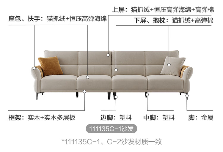 全友家居 沙发防猫抓布艺沙发客厅小户型家用直排式一字沙发现代简约