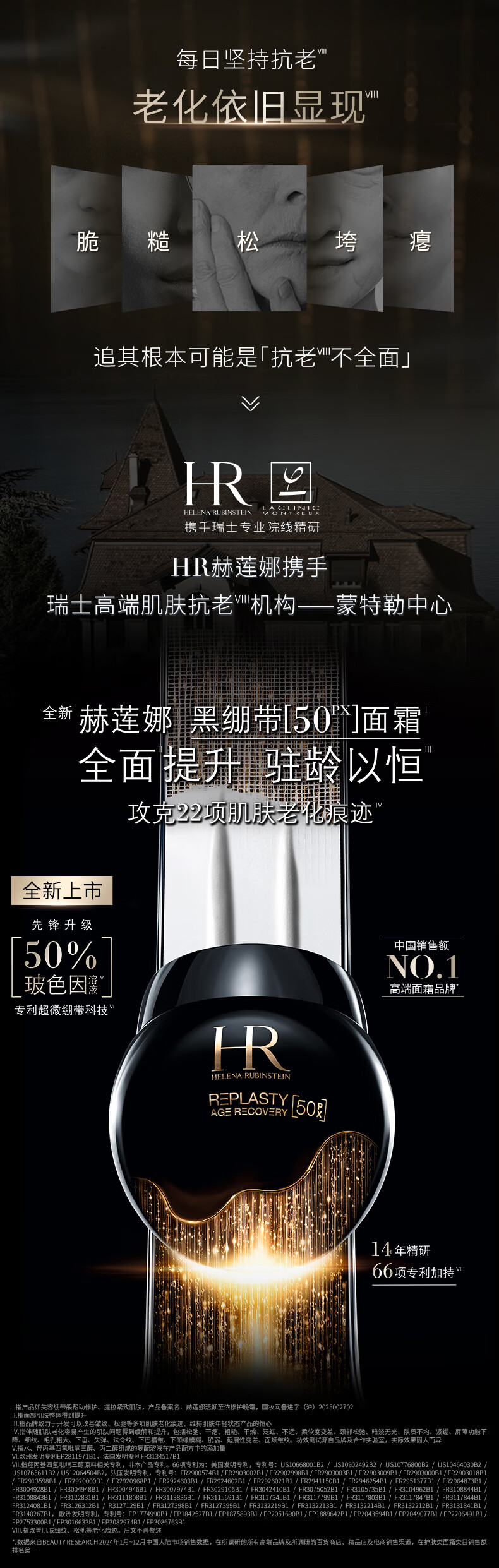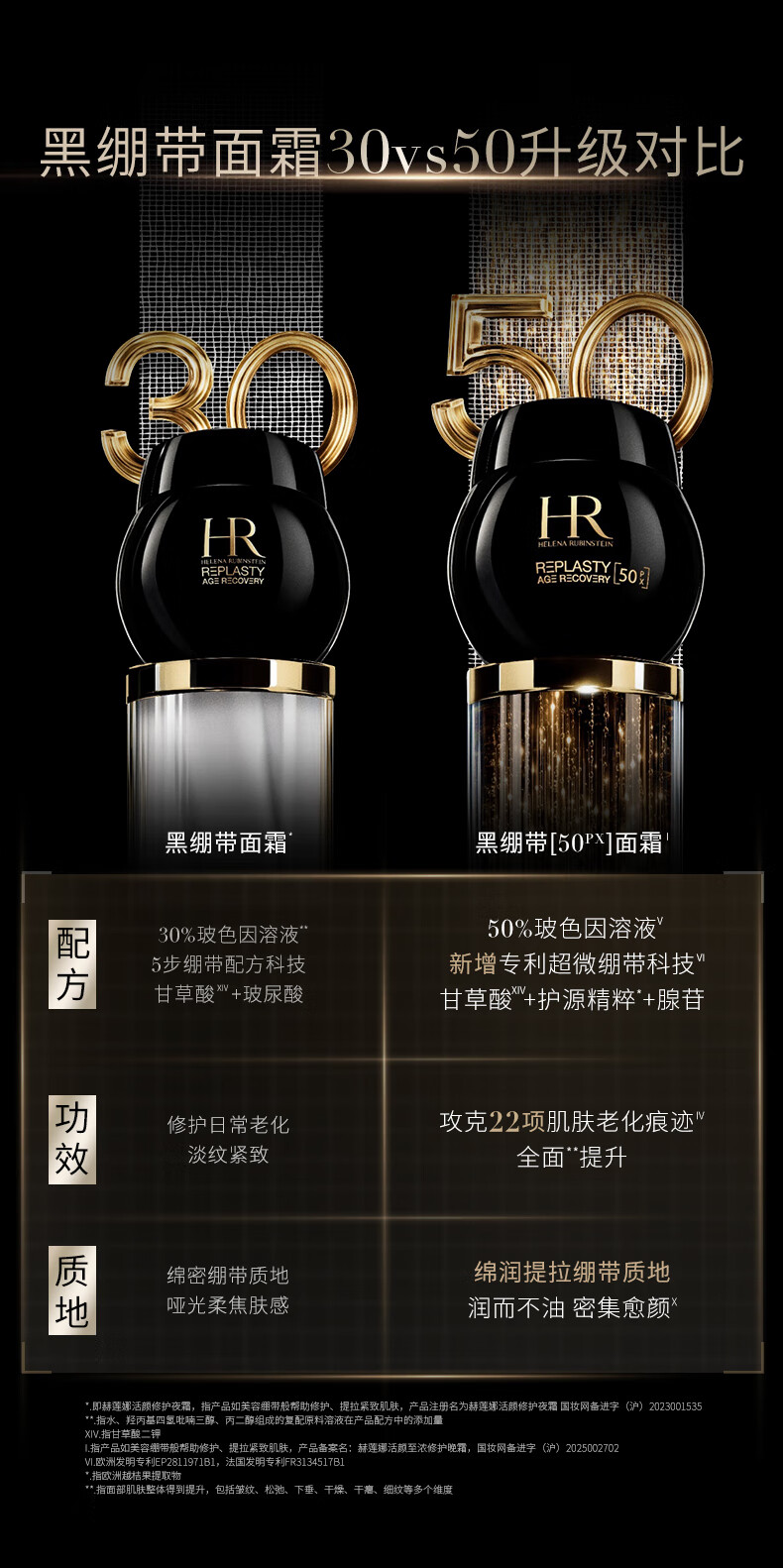 赫莲娜HR全新黑绷带50PX面霜15ml玻色因护肤品化妆品礼盒送女友生日礼物