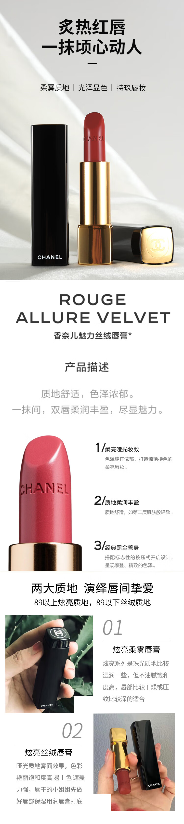 香奈儿(Chanel)口红唇膏丝绒双头唇釉持色coco可可小姐礼盒装 七夕情人节礼物 【热卖】丝绒口红 63#玫瑰豆沙