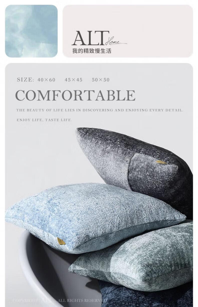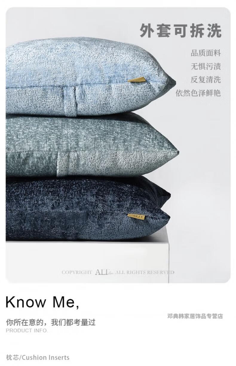 DEATKN德国高端沙发抱枕套不含芯客厅轻奢感床上靠背靠垫可拆洗抱枕方形 蓝灰 45cm*45cm 枕套 (抱不含芯)