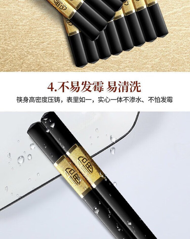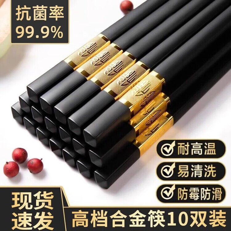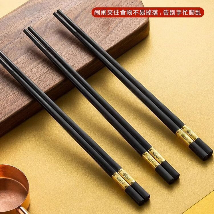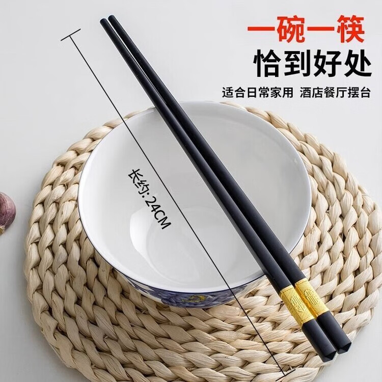 DEATKN德国酒店发霉合金筷子家用变形家庭防滑无漆餐厅 家用金福24CM(光泽好经久耐用) (家用装)10双