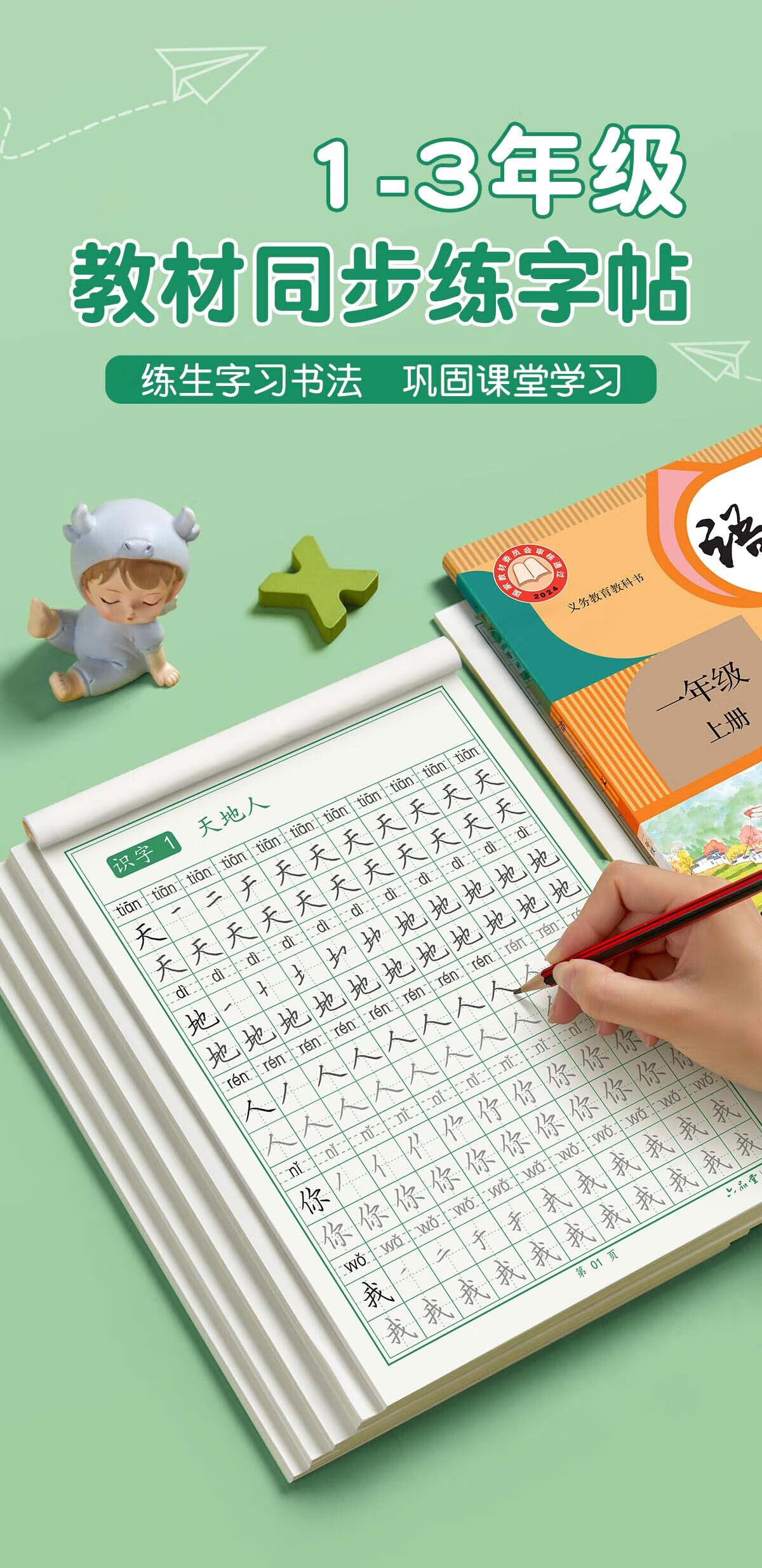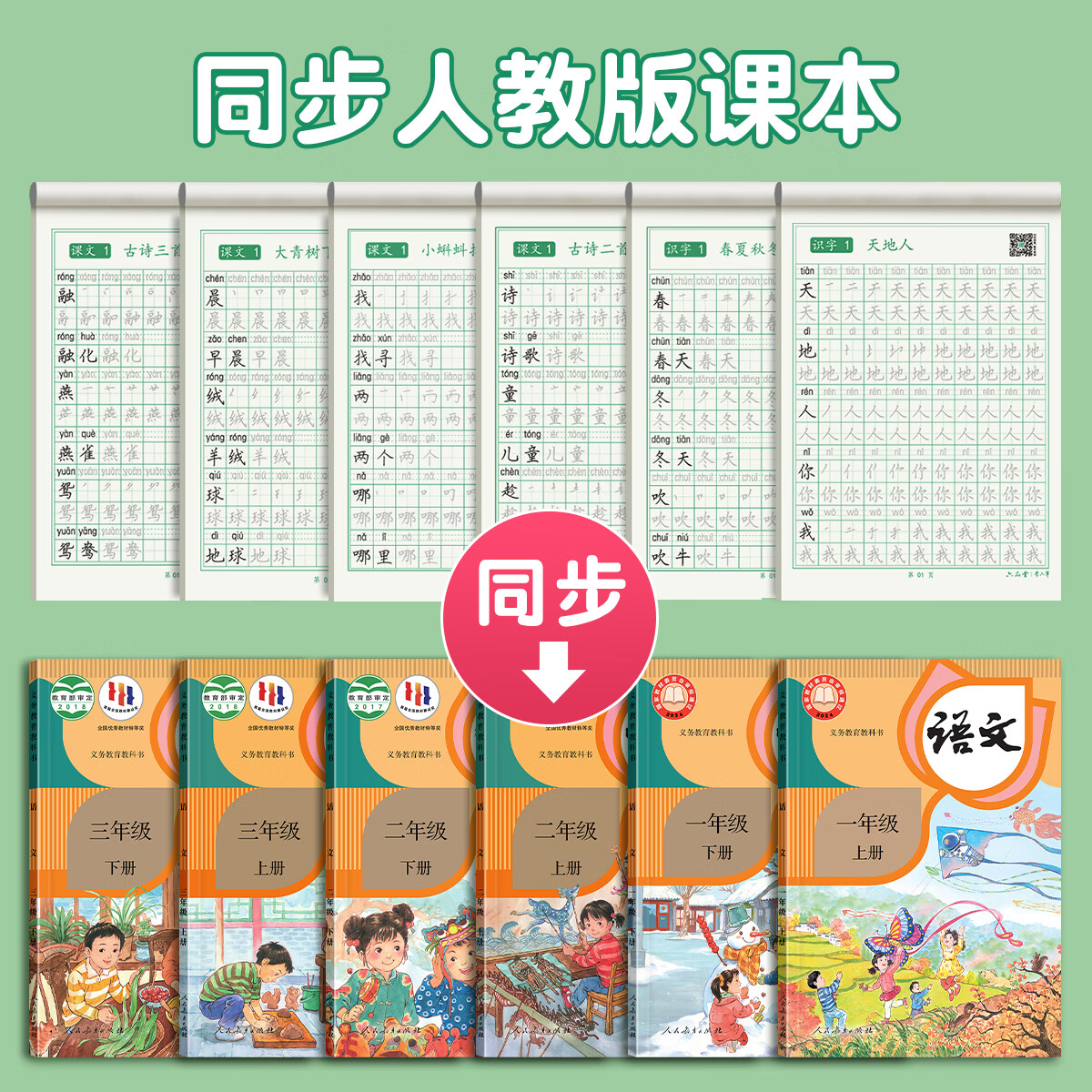 六品堂一年级语文同步练字帖人教版小学生专用字帖硬笔书法练字本楷书笔画笔顺儿童铅笔描红2025新版 【基础款】一年级上下册(3铅笔+2握笔器)