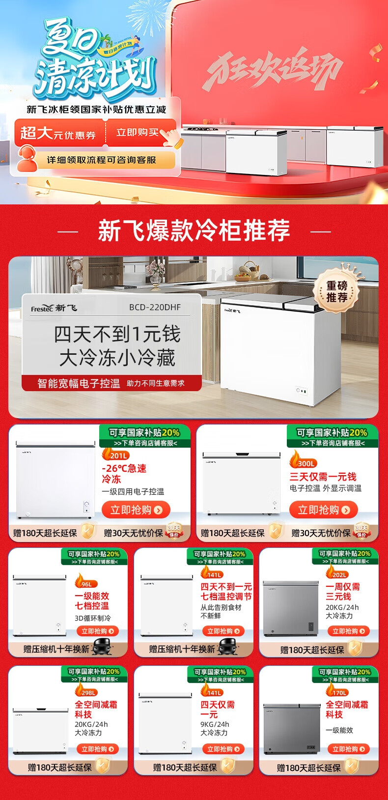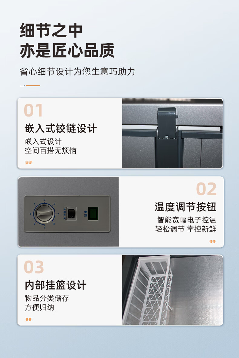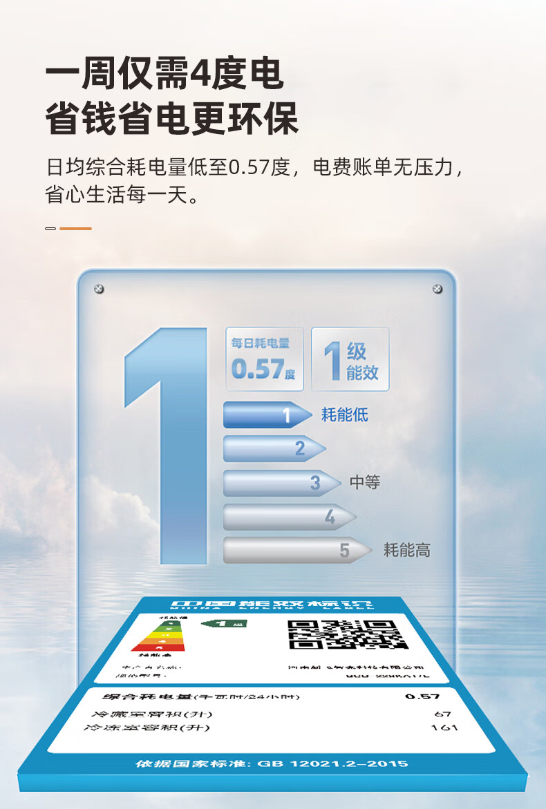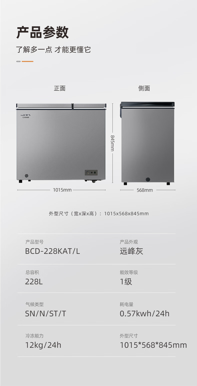新飞(Frestec)228升双温家用冷柜冰柜 全空间减霜80%大冷冻小冷藏保鲜一级节能 BCD-228KAT/L