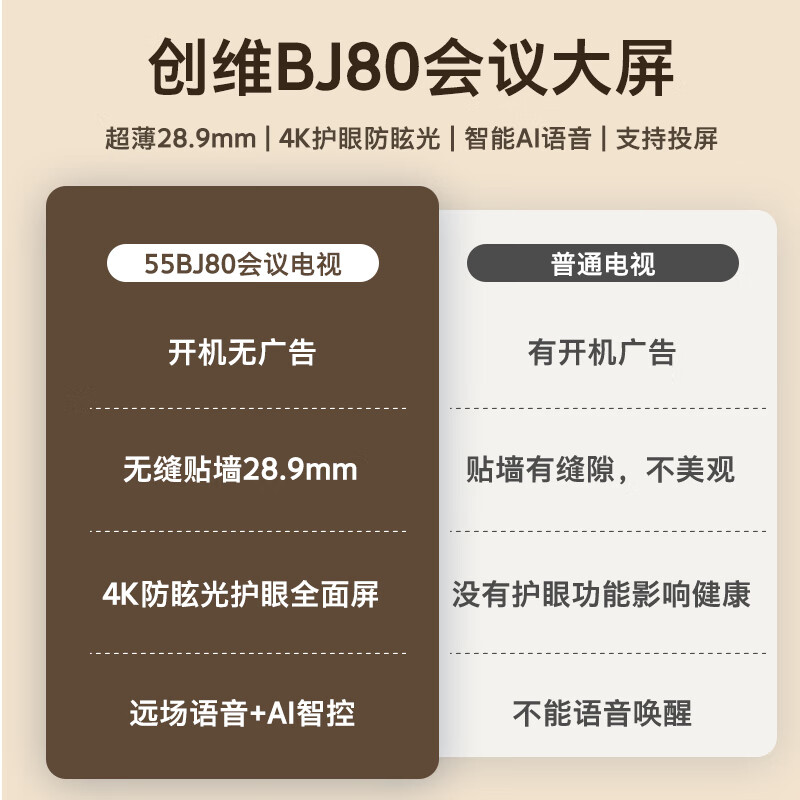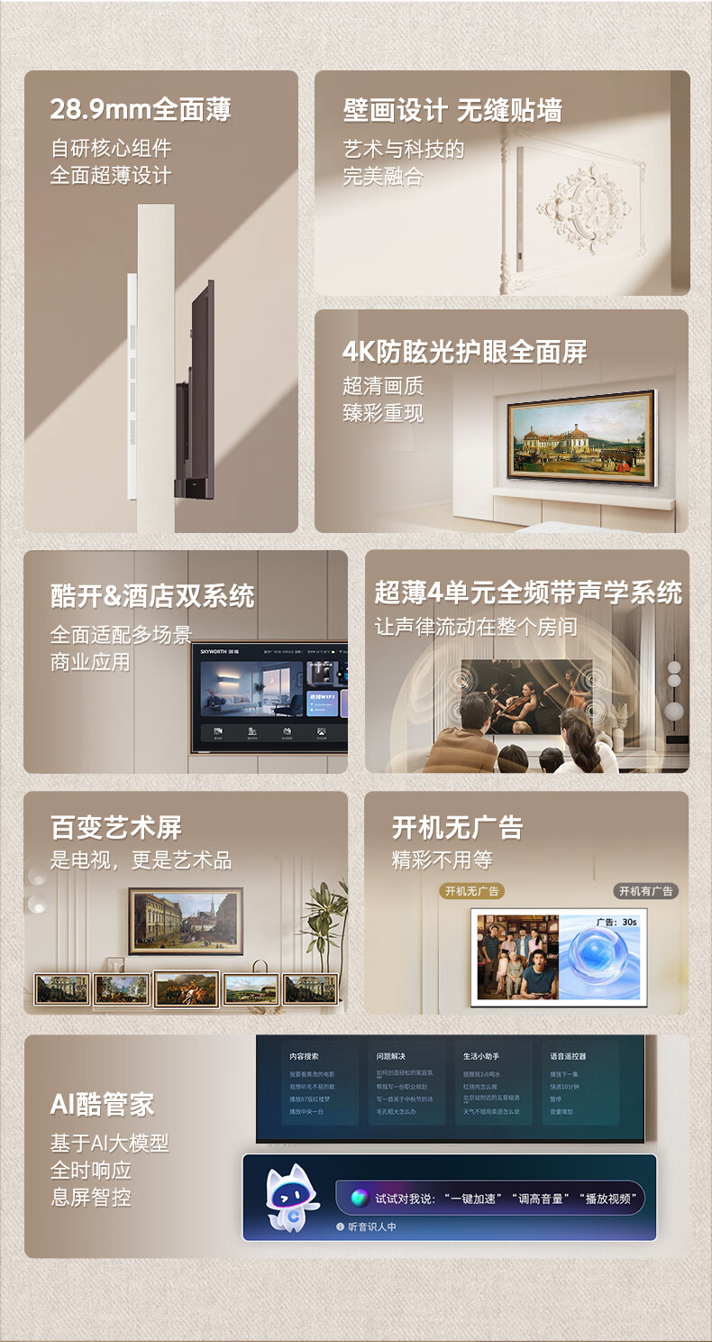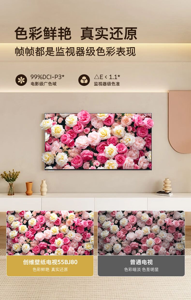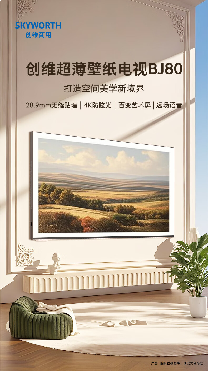 创维壁纸电视55BJ80 55英寸超薄壁画艺术电视机 无缝贴墙28.9mm 4K护眼 智能平板家电液晶电视以旧换新