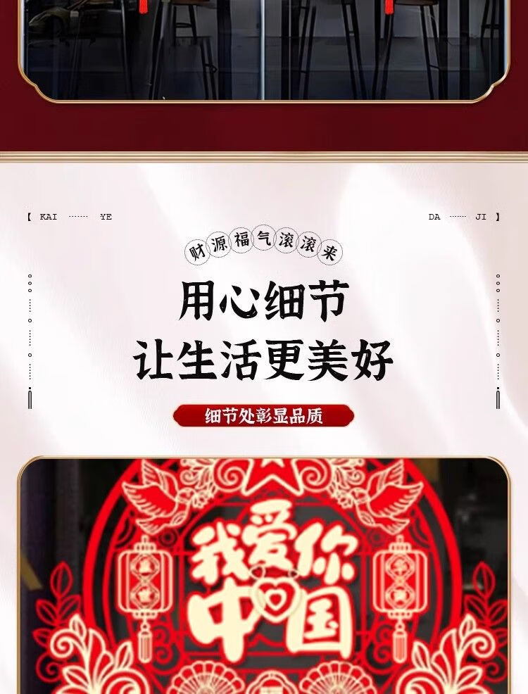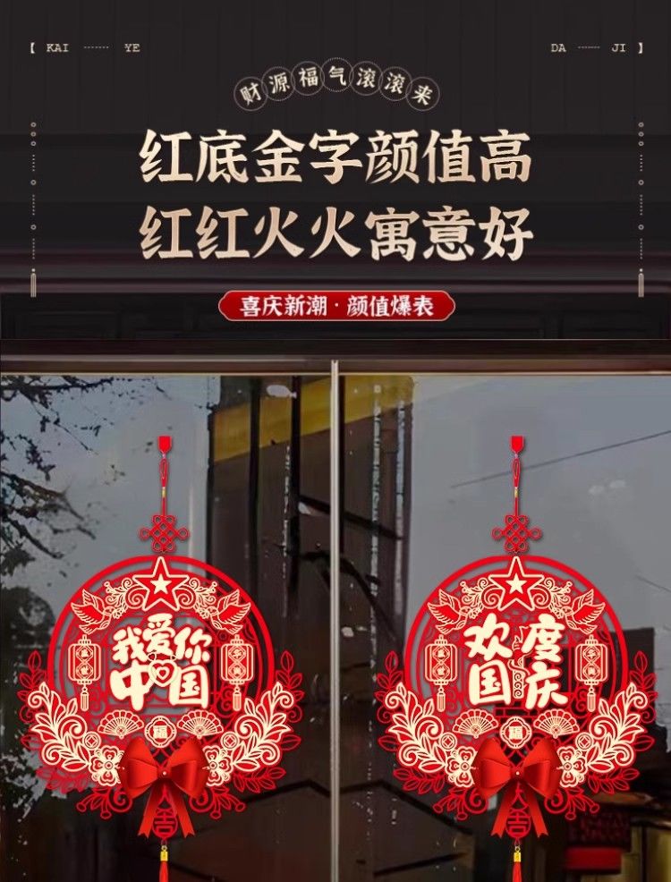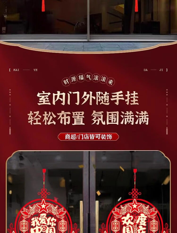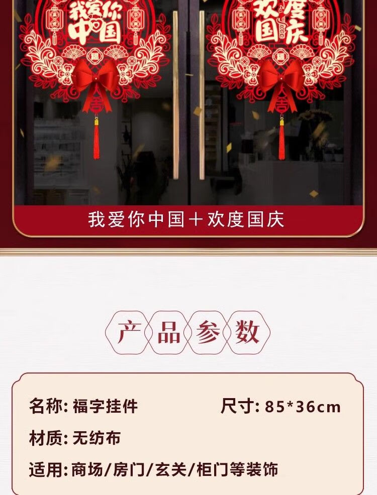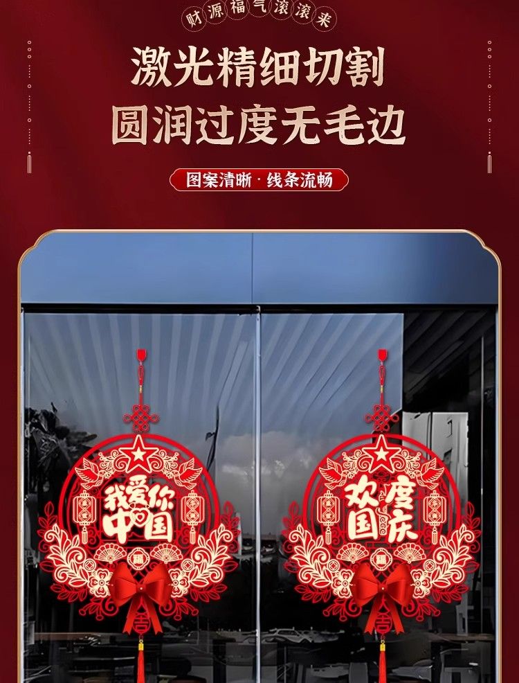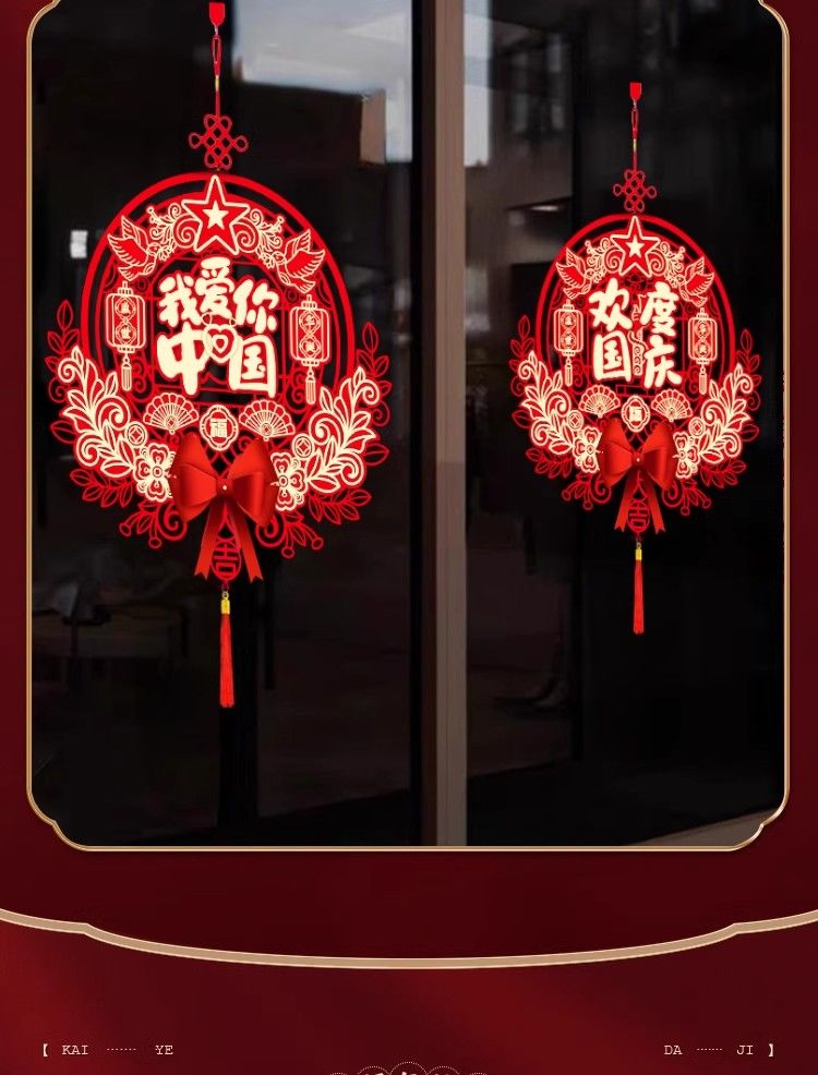 OYKTN新款十一国庆节装饰卧室立体大挂件商场酒店超市玻璃门场景挂饰 我爱你中国挂饰(流苏款) 成品发货(送粘钩)