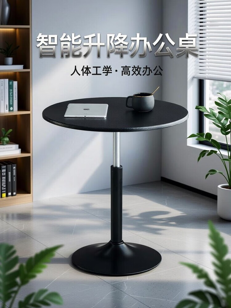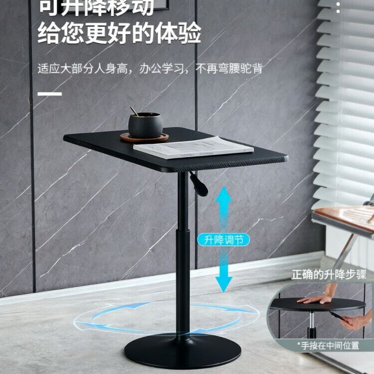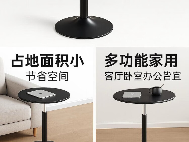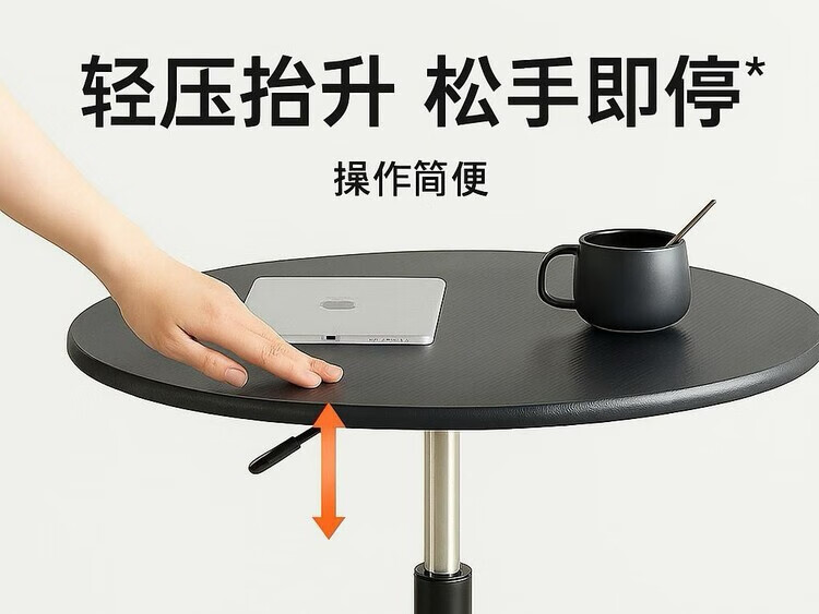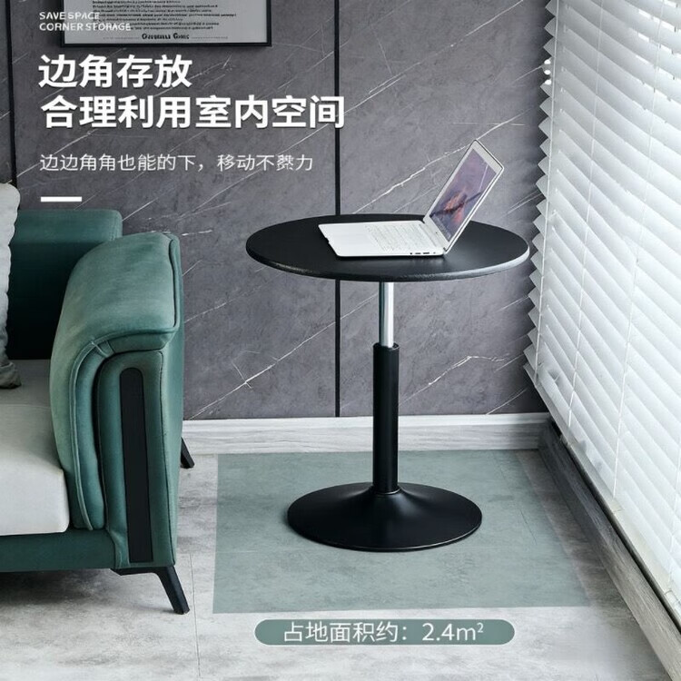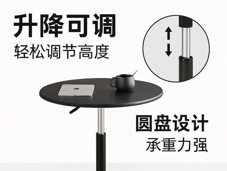 欣慕雅可升降旋转桌移动圆桌电脑办公洽谈床边桌休闲家用餐桌阳台圆盘桌 经典黑(烤漆工艺) 39宽60长升降区54-75cm