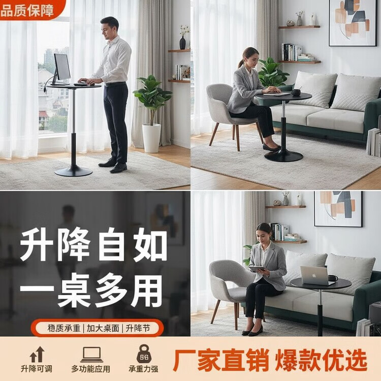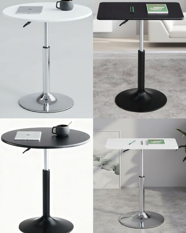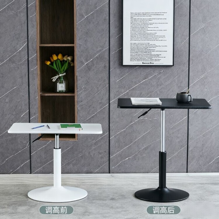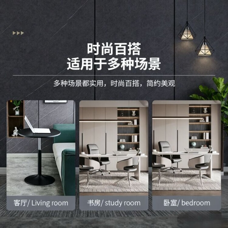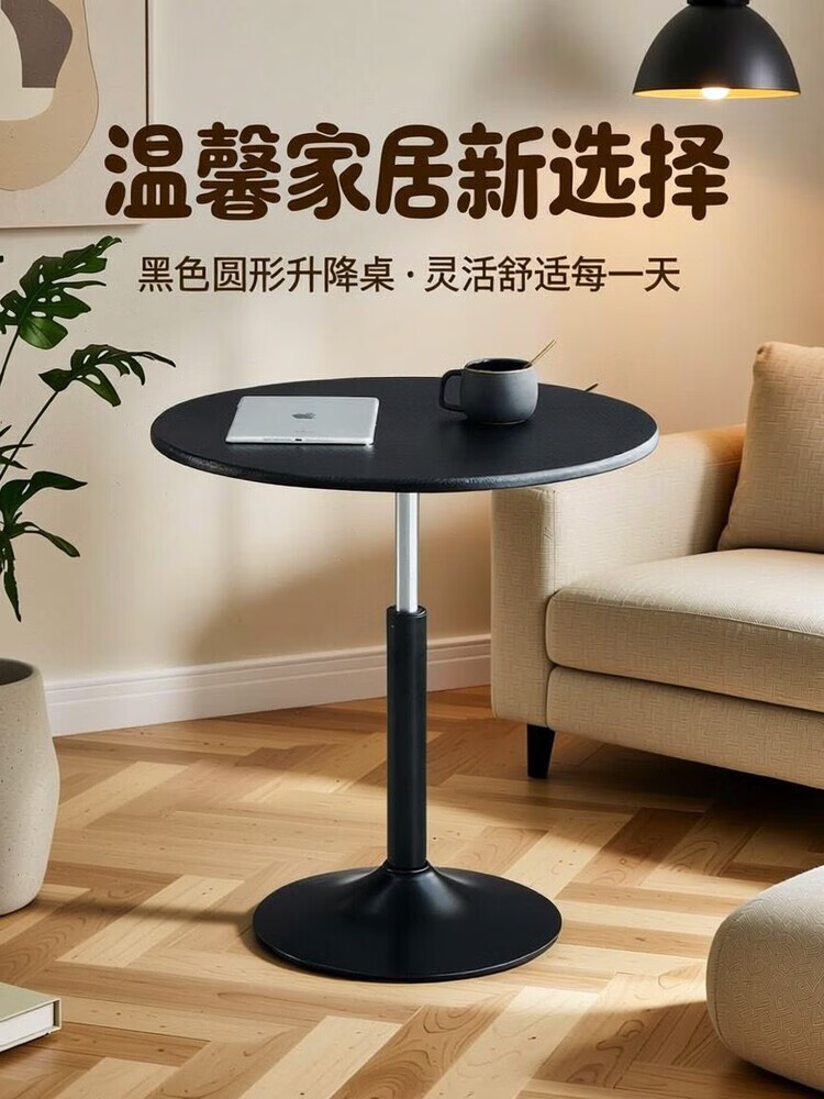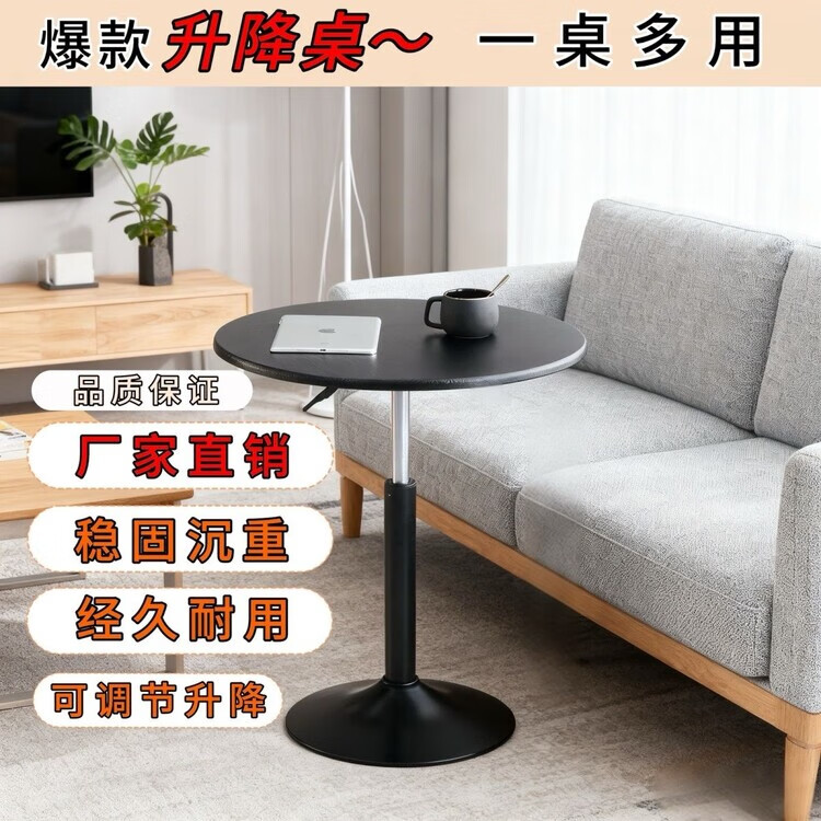 欣慕雅可升降旋转桌移动圆桌电脑办公洽谈床边桌休闲家用餐桌阳台圆盘桌 经典黑(烤漆工艺) 39宽60长升降区54-75cm