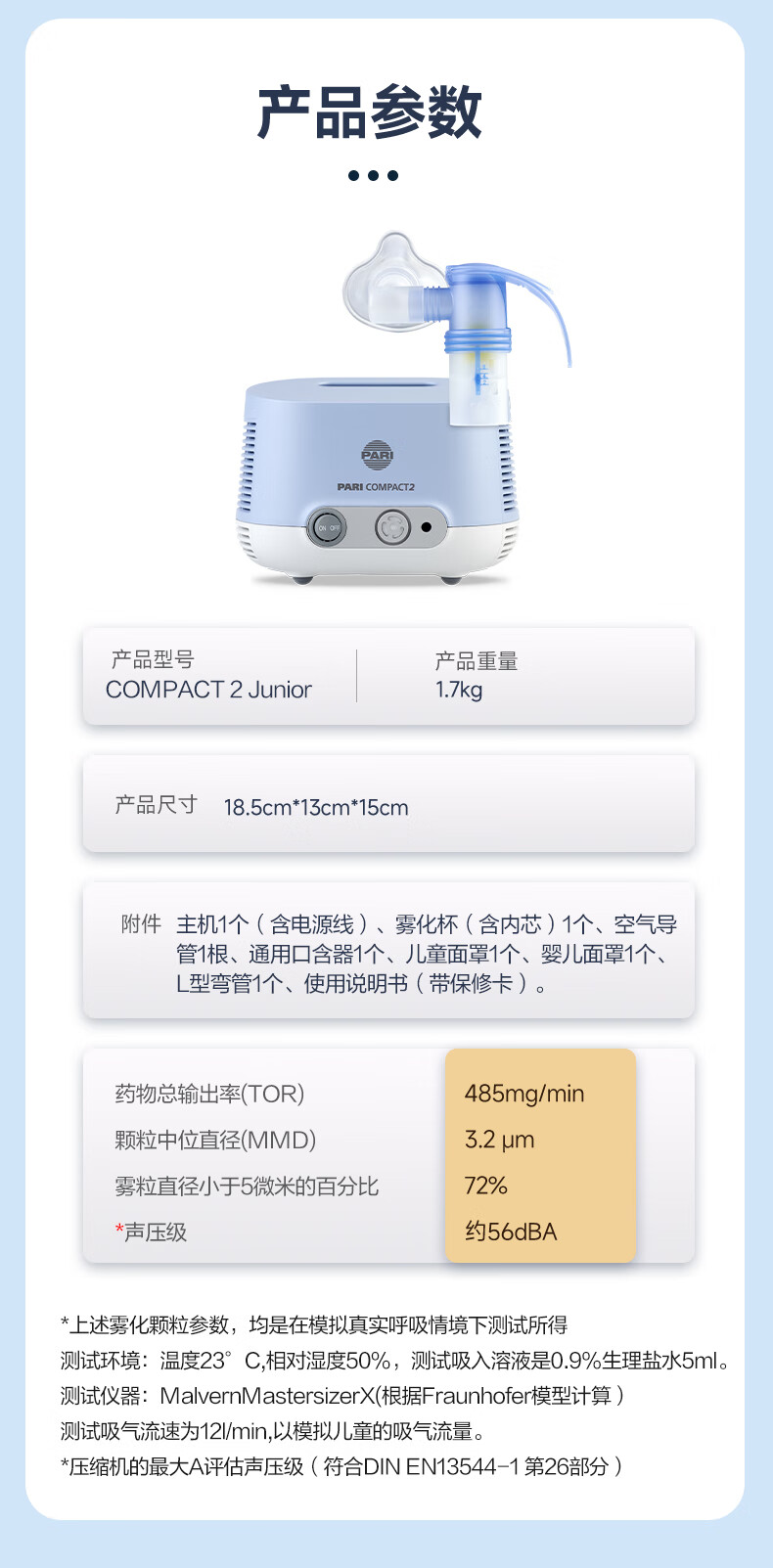 PARI德国帕瑞进口婴幼儿童老人压缩雾化器PARI COMPACT2 Junior
