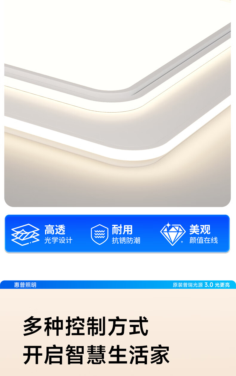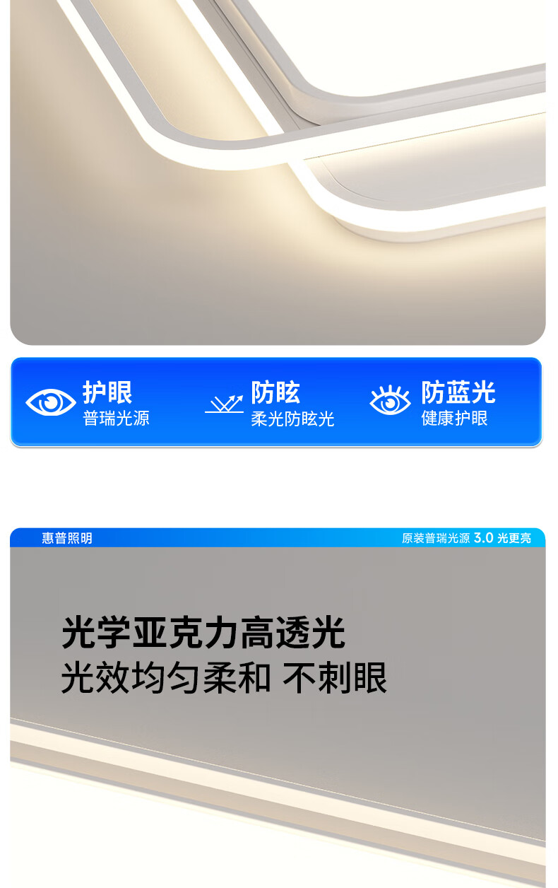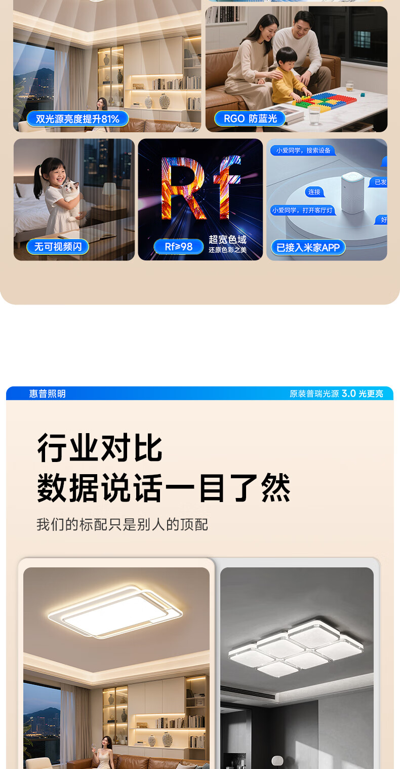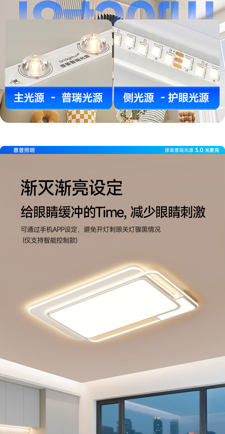 惠普普瑞护眼超薄无缝隙卧室吸顶灯智能儿童房灯中山灯具晨之光包安装
