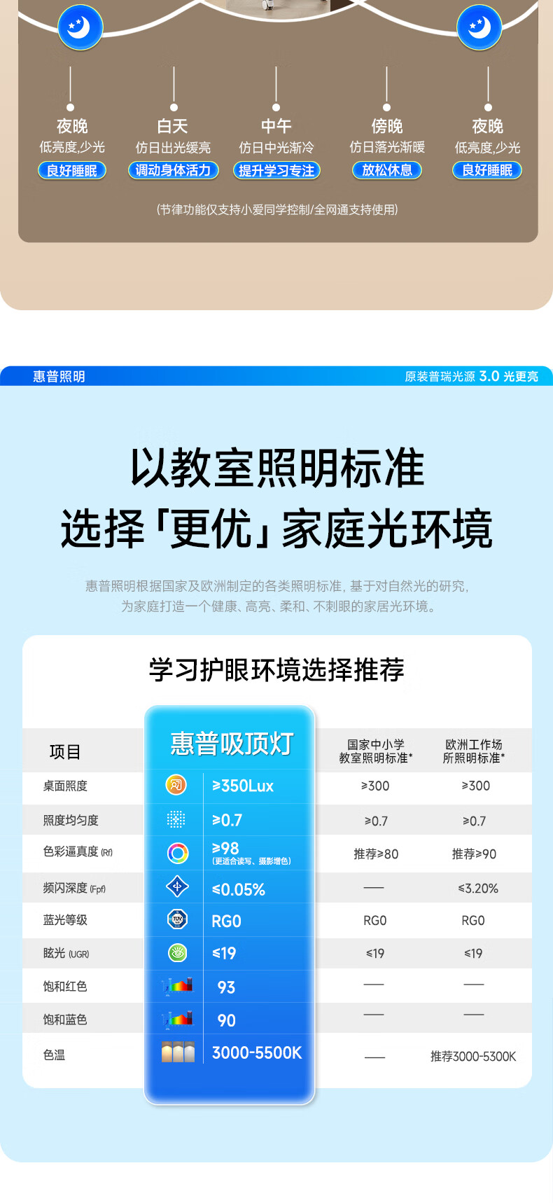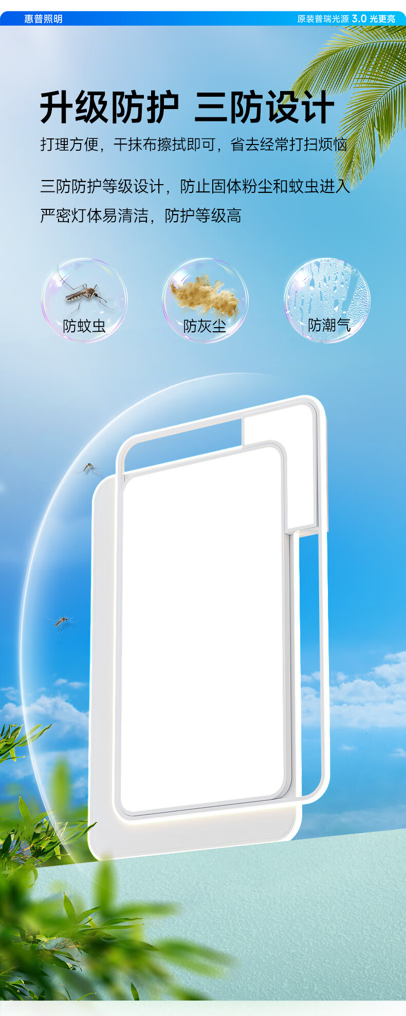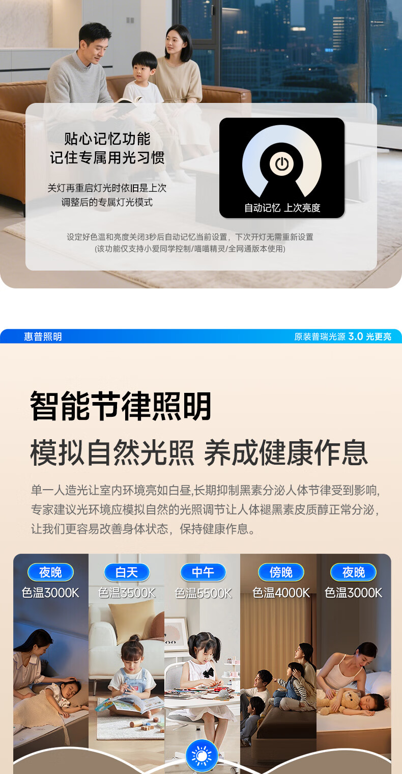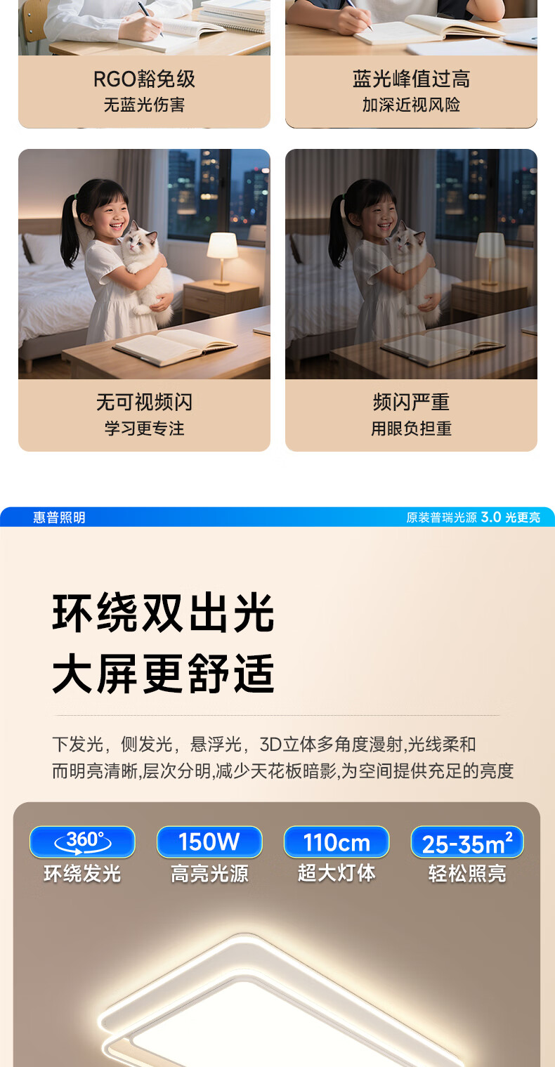 惠普普瑞护眼超薄无缝隙卧室吸顶灯智能儿童房灯中山灯具晨之光包安装