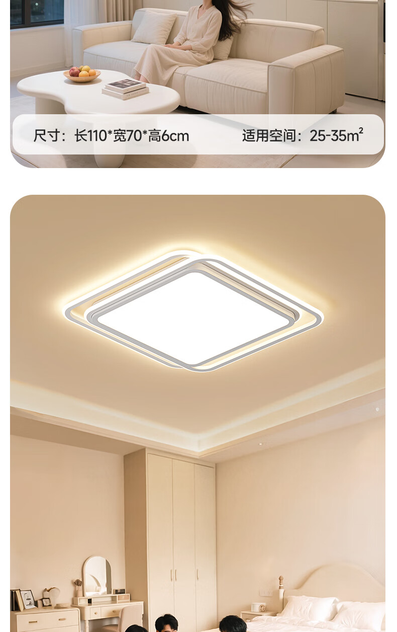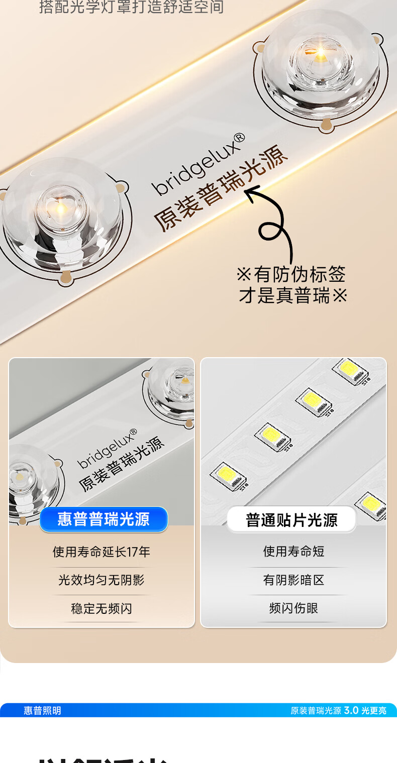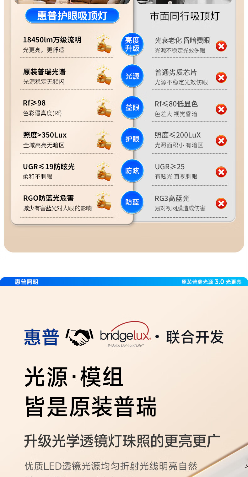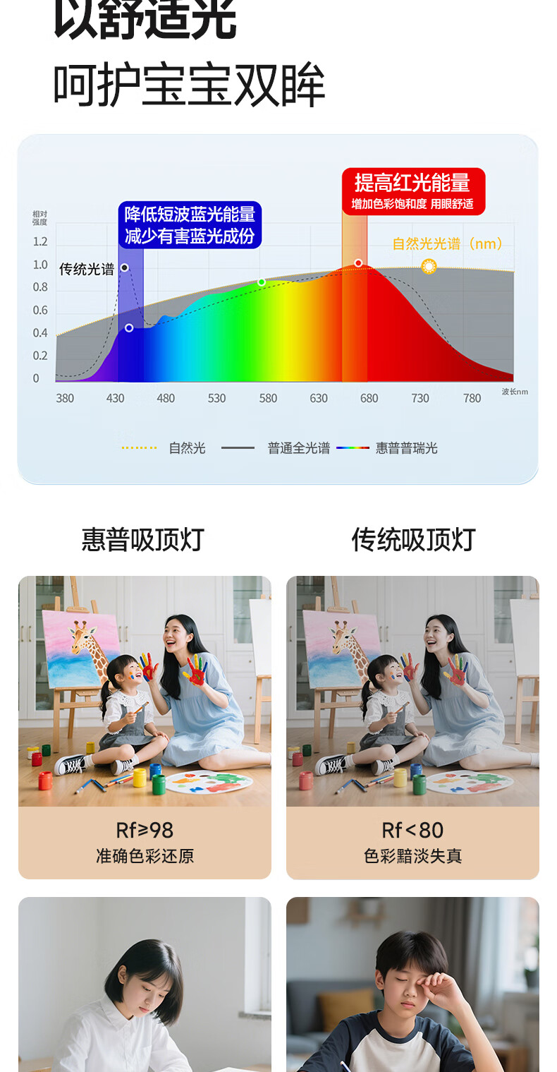 惠普普瑞护眼超薄无缝隙卧室吸顶灯智能儿童房灯中山灯具晨之光包安装