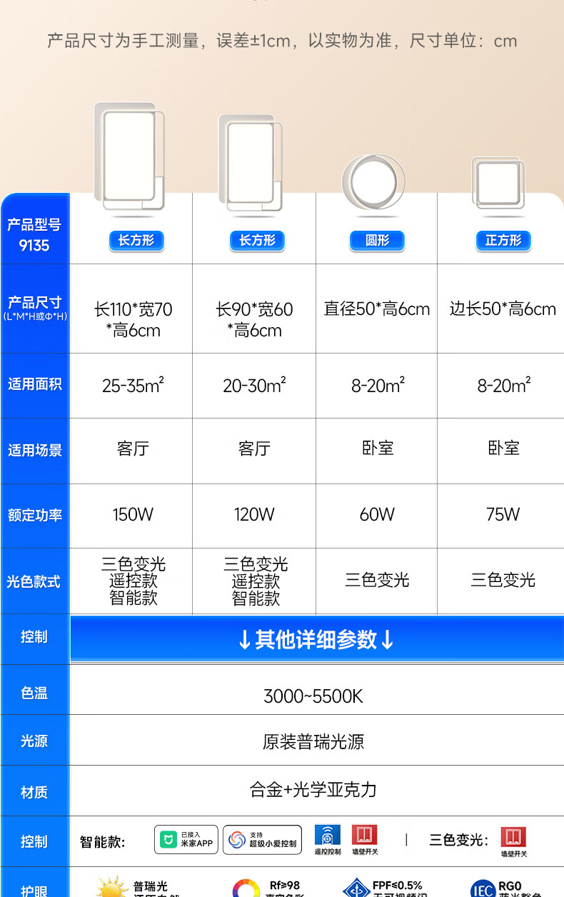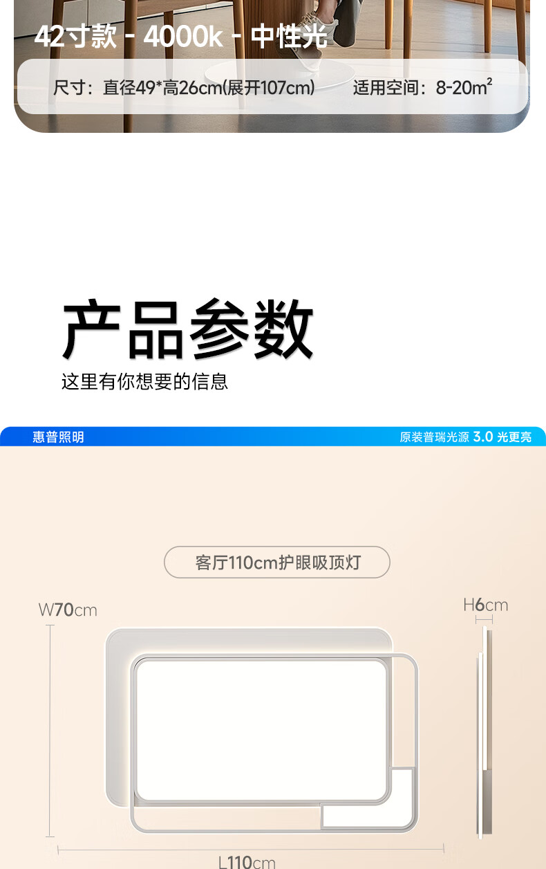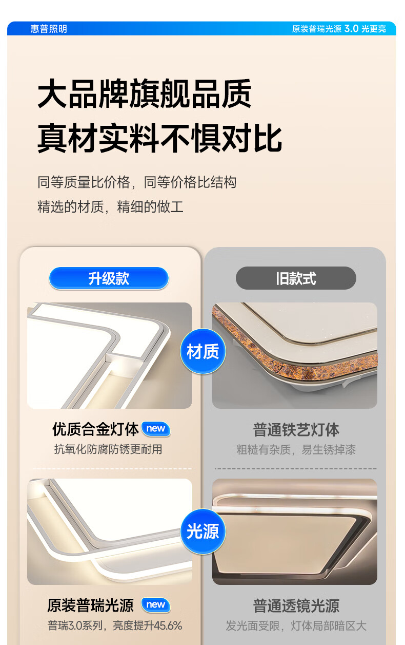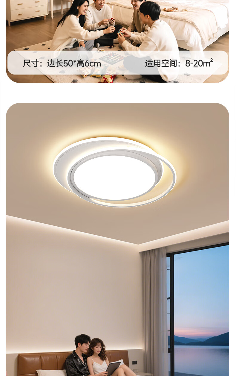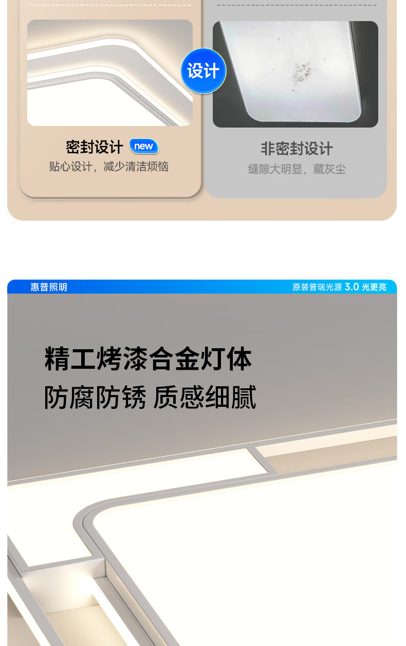 惠普普瑞护眼超薄无缝隙卧室吸顶灯智能儿童房灯中山灯具晨之光包安装