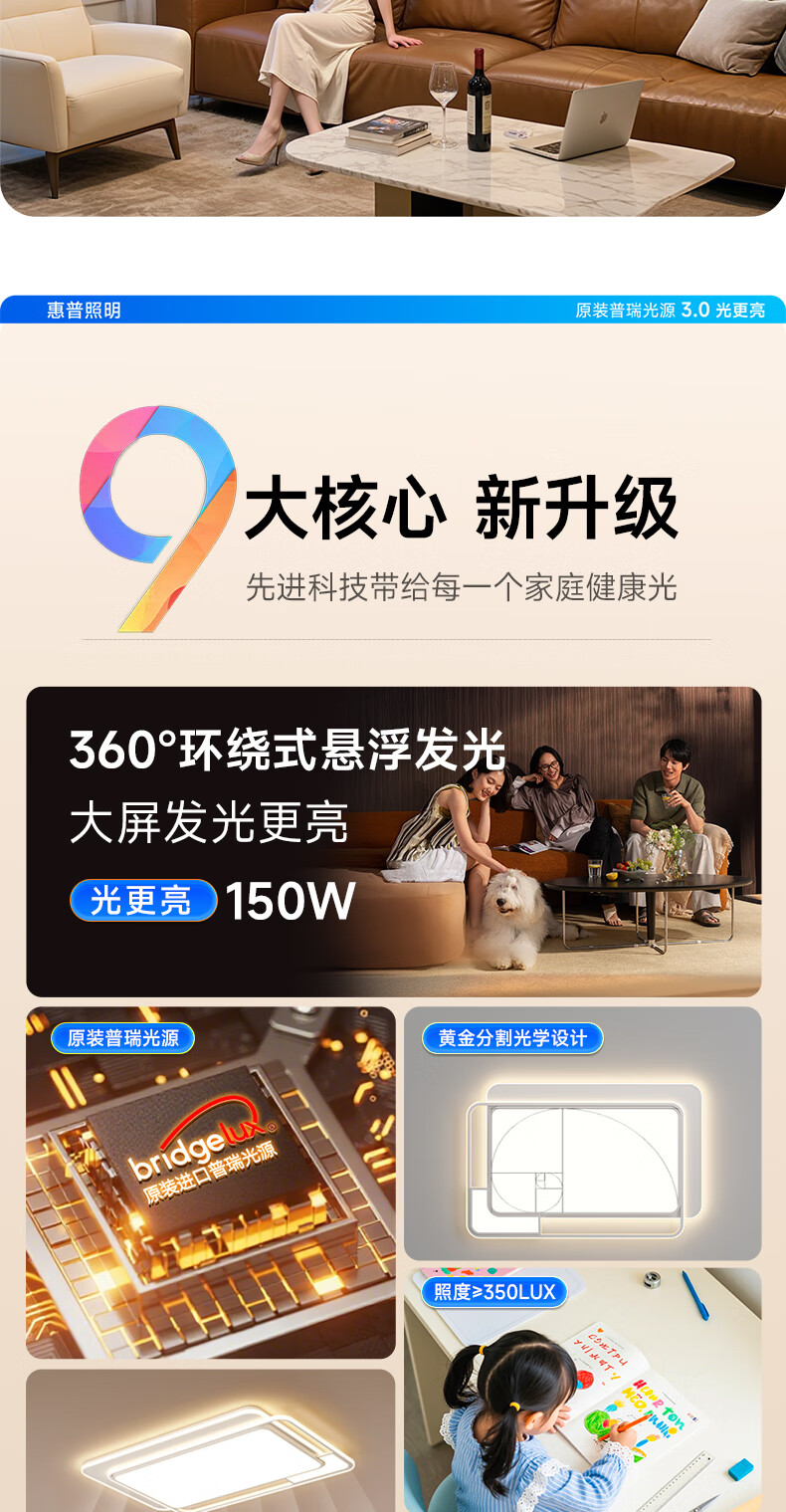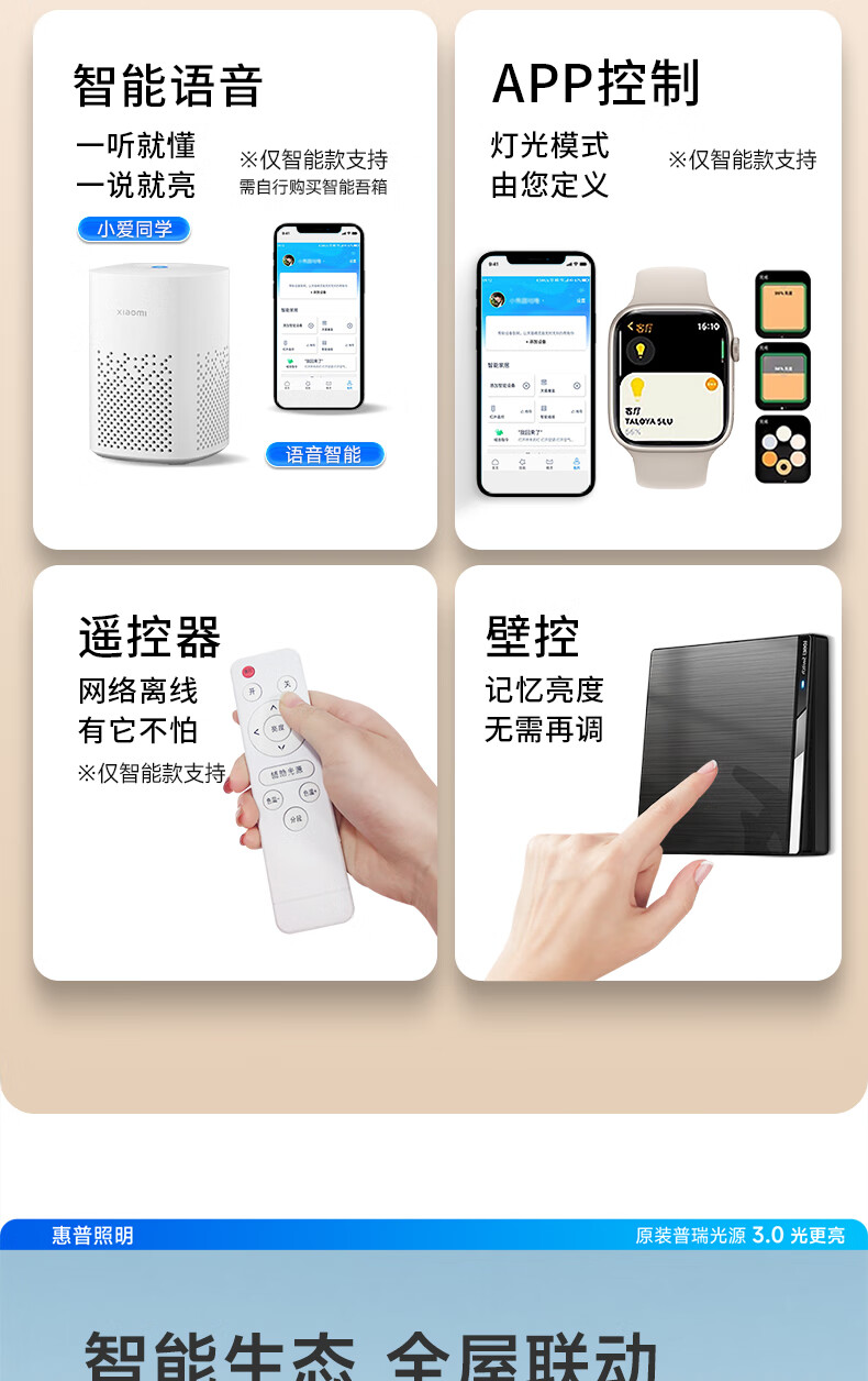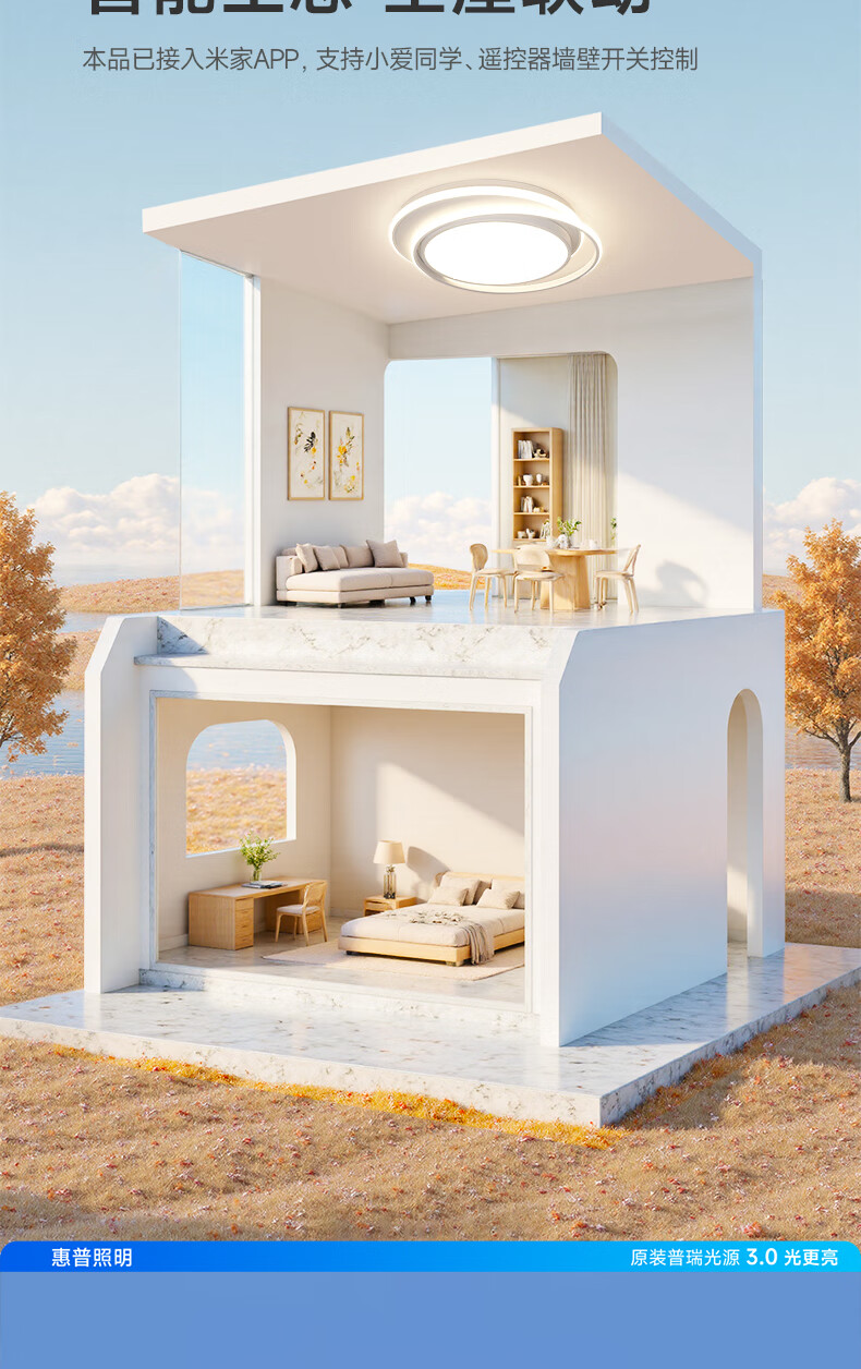 惠普普瑞护眼客厅大灯吸顶灯智控云朵奶油风全屋套餐中山臻之光包安装