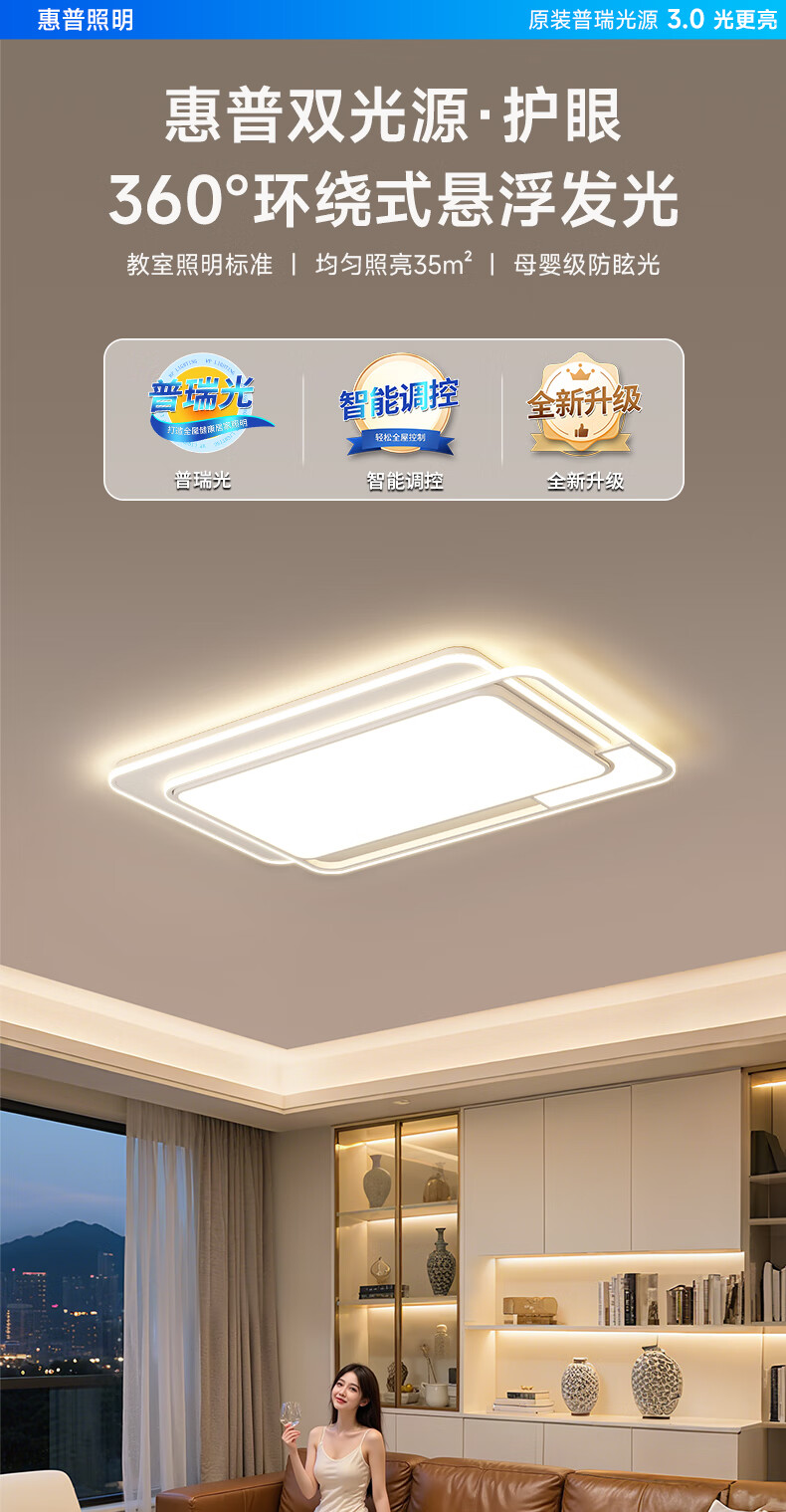 惠普普瑞护眼led客厅大灯吸顶灯智能APP中山灯具全屋套餐臻之光包安装
