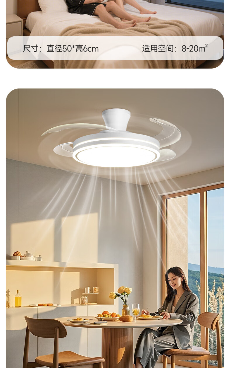 惠普普瑞护眼风扇灯LED吊扇灯隐形扇叶遥控调光灯具中山灯具包安装