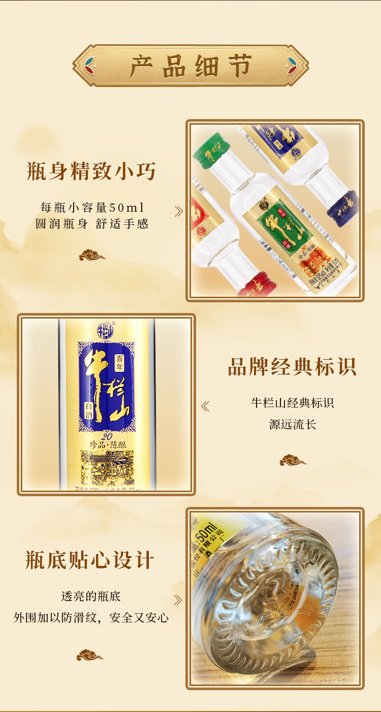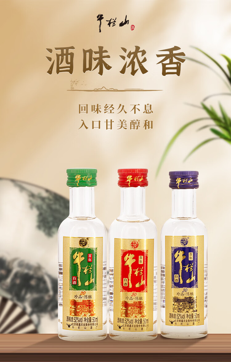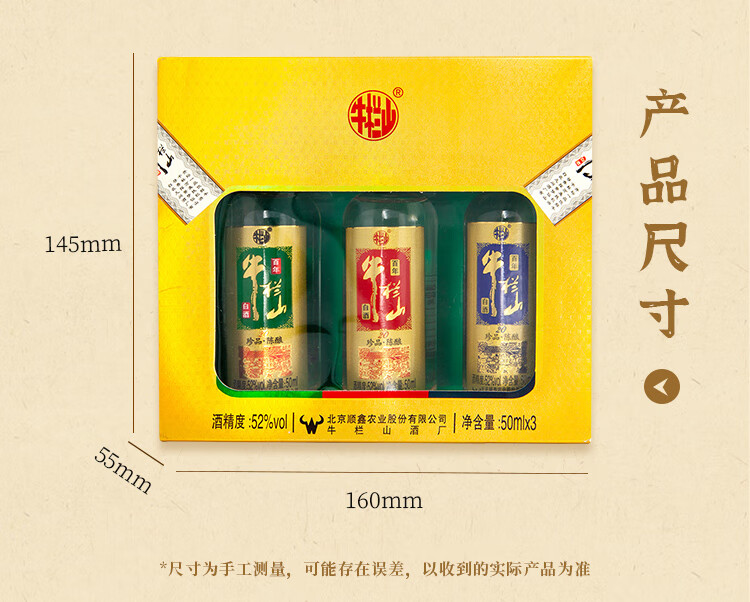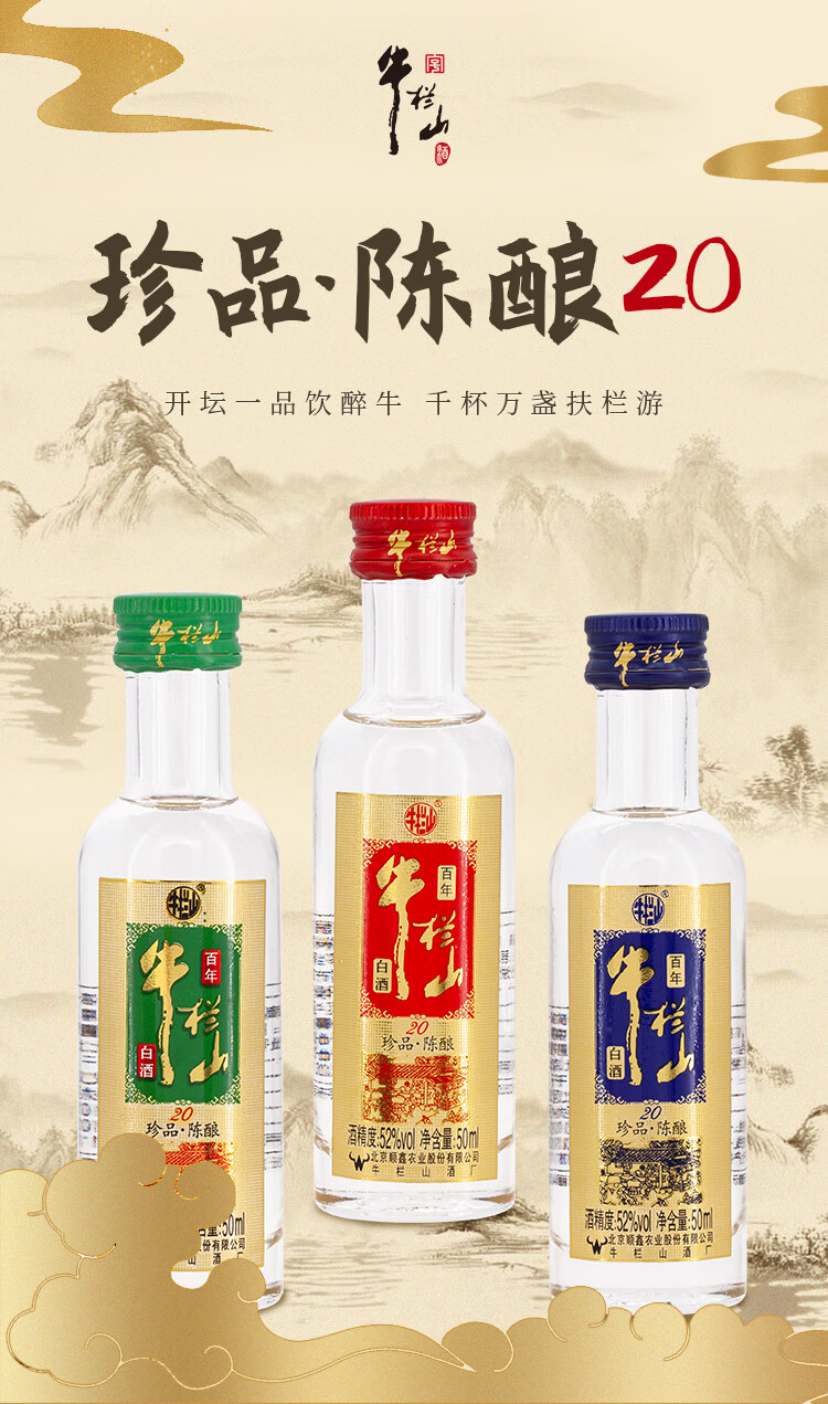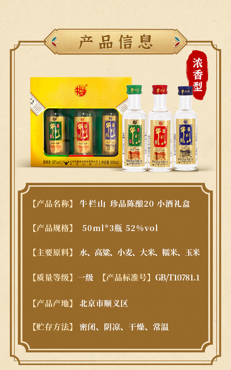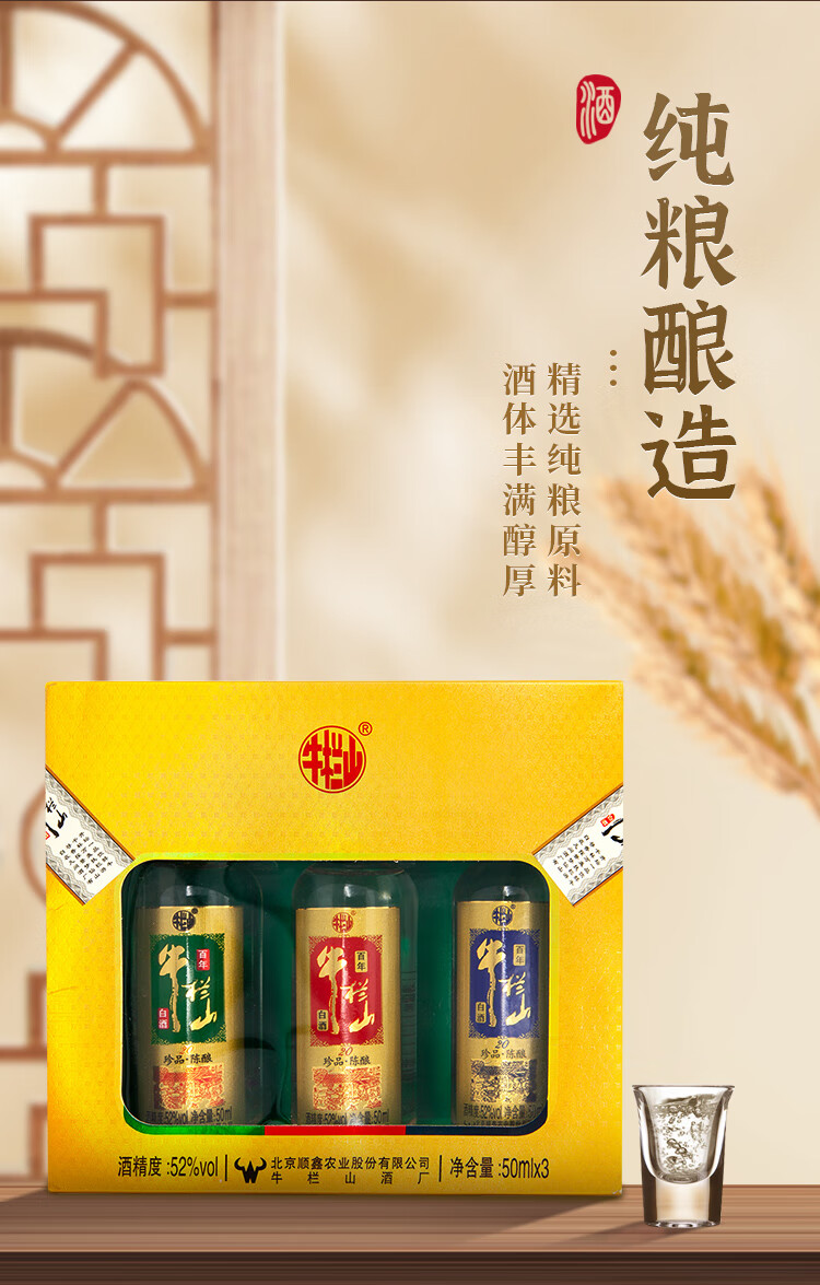 牛栏山百年珍品陈酿(20) 土豪金小酒 52度50ml*3瓶小酒 礼盒装