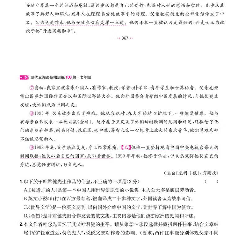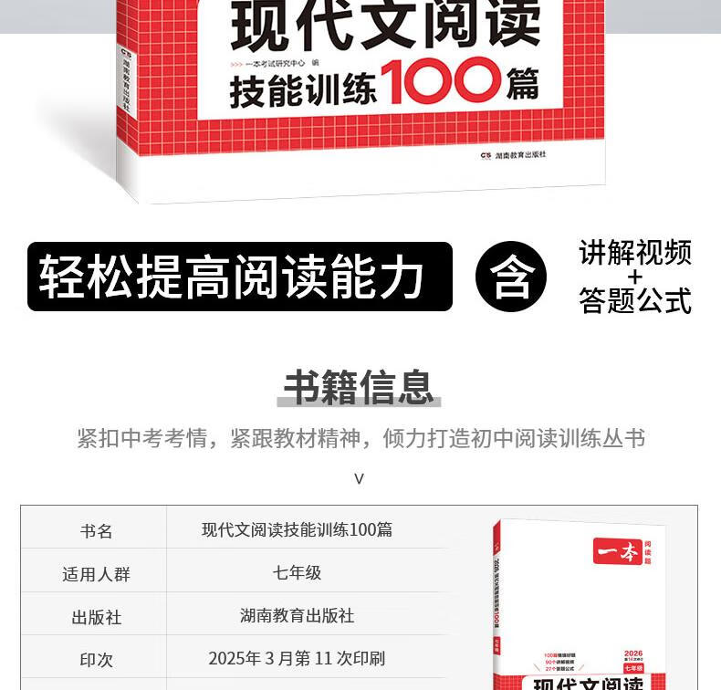 2026一本初中现代文七年级现代文阅读技能训练100篇 初一语文现代文阅读训练题7年级语文阅读理解专项训练课外阅读理解专项训练