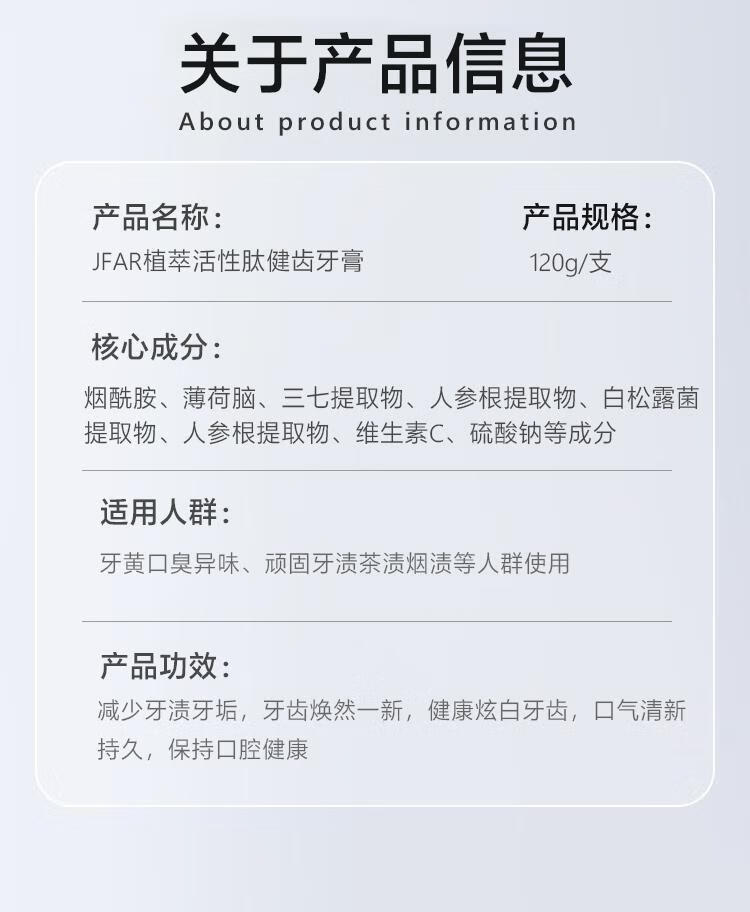 KCHYimoyog牙膏加拿大原装进口JFAR植萃活性肽健齿牙膏120g官方正品 1支【体验装】 120g