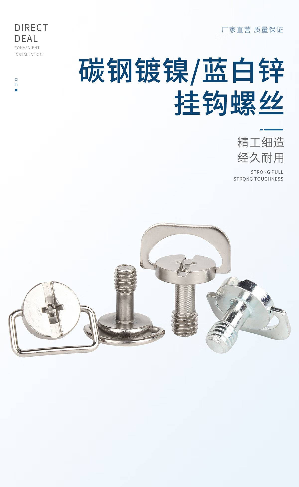 固万基(GUWANJI)手拧挂钩螺丝快装板螺丝手柄铁环螺丝云台螺丝带环锁紧螺丝M4M6 铁片 M6x13 环保镍(2只)