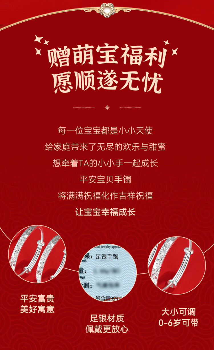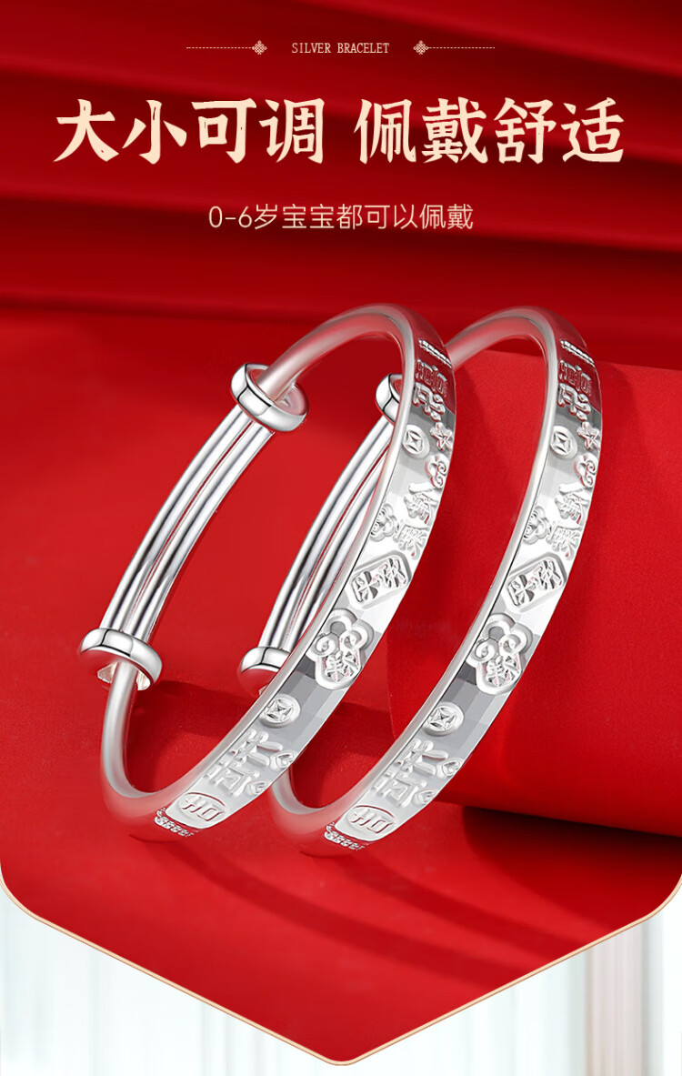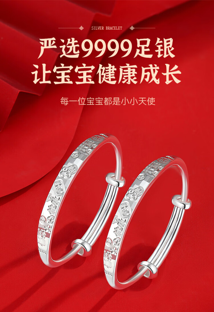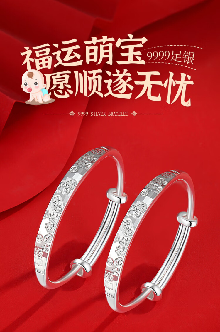 唯一(Winy)宝宝银手镯婴儿一对9999足银镯子新生儿见面礼银饰满月生日礼物