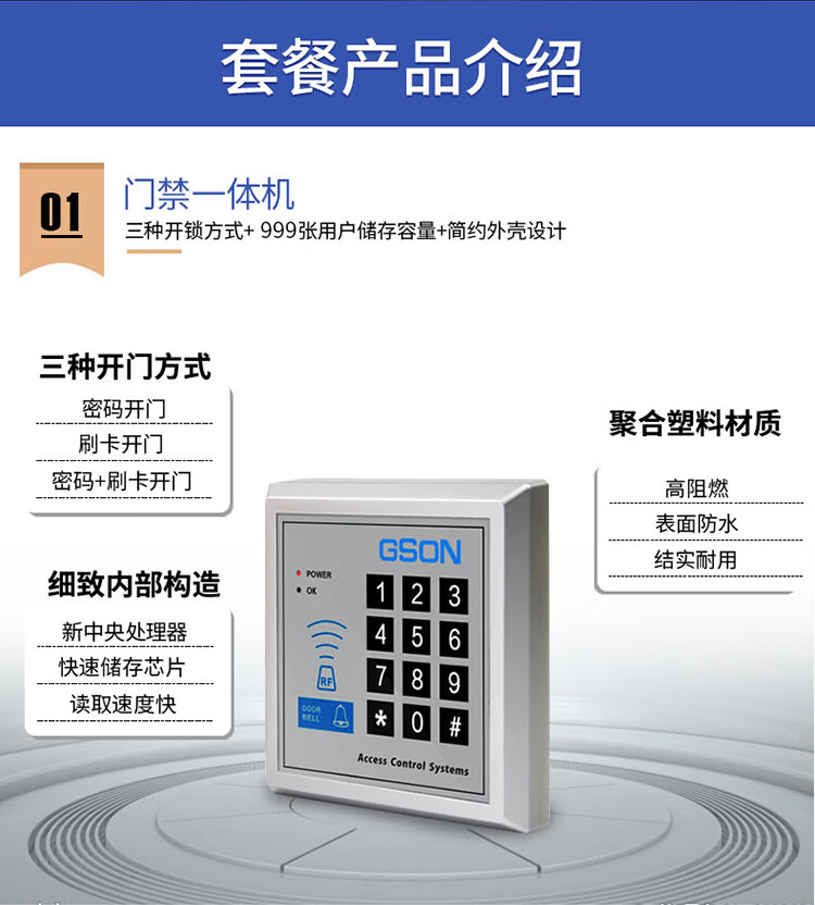 GS固尚GSON门禁一体机电磁锁磁力锁公司办公室刷卡密码门禁系统