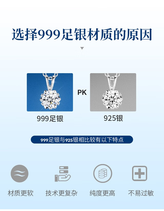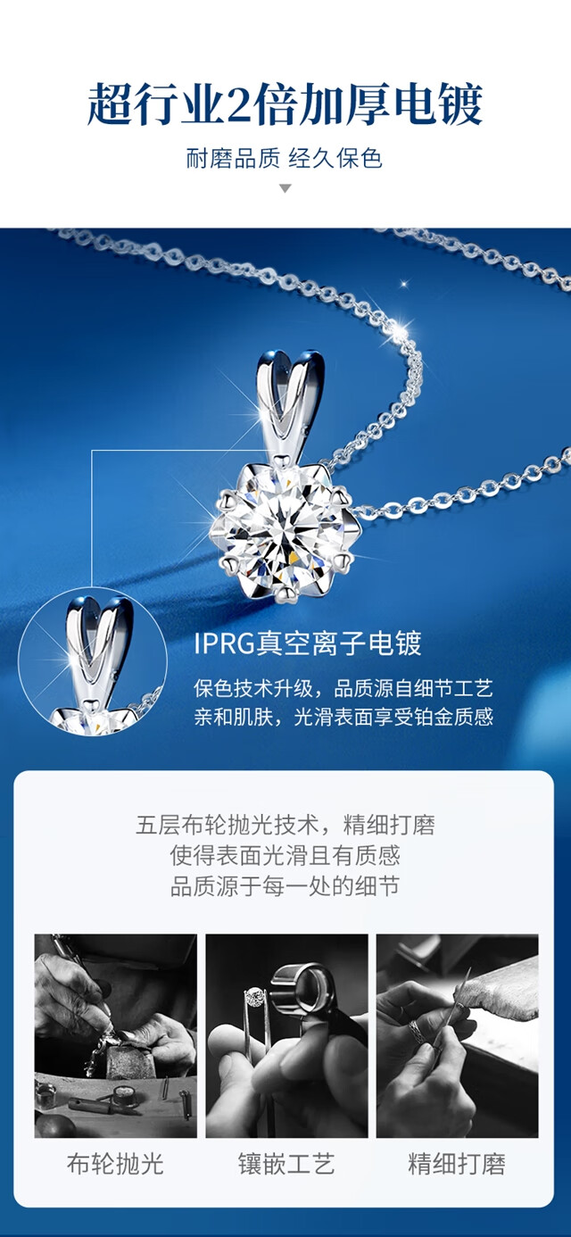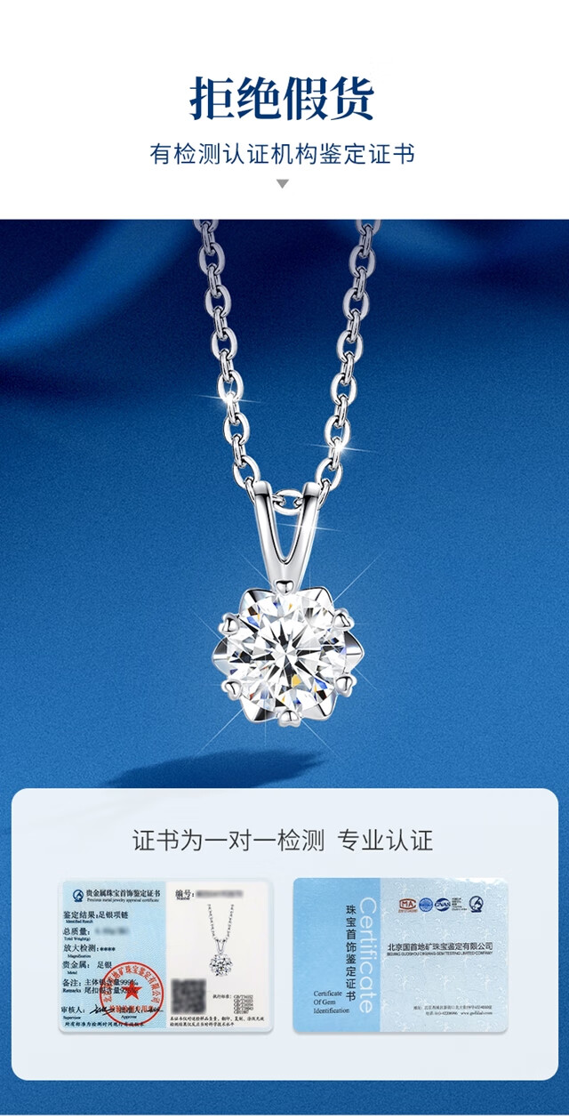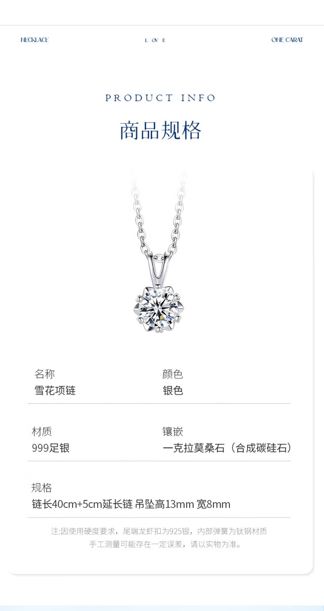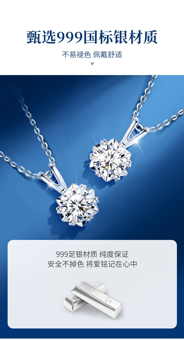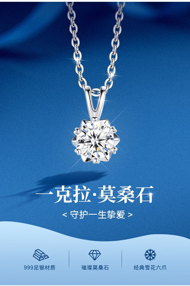唯一(Winy)一克拉莫桑钻项链女生2025新款999纯银吊坠送女朋友老婆生日礼物
