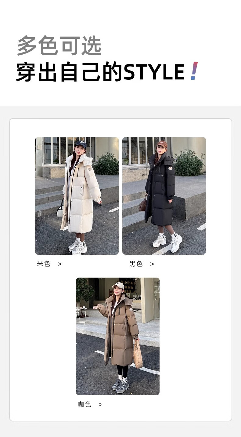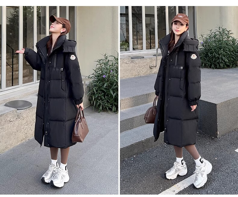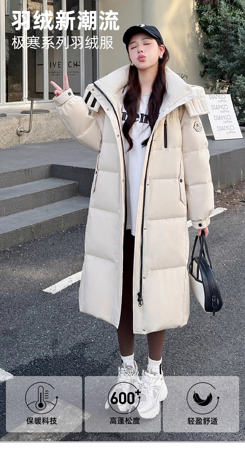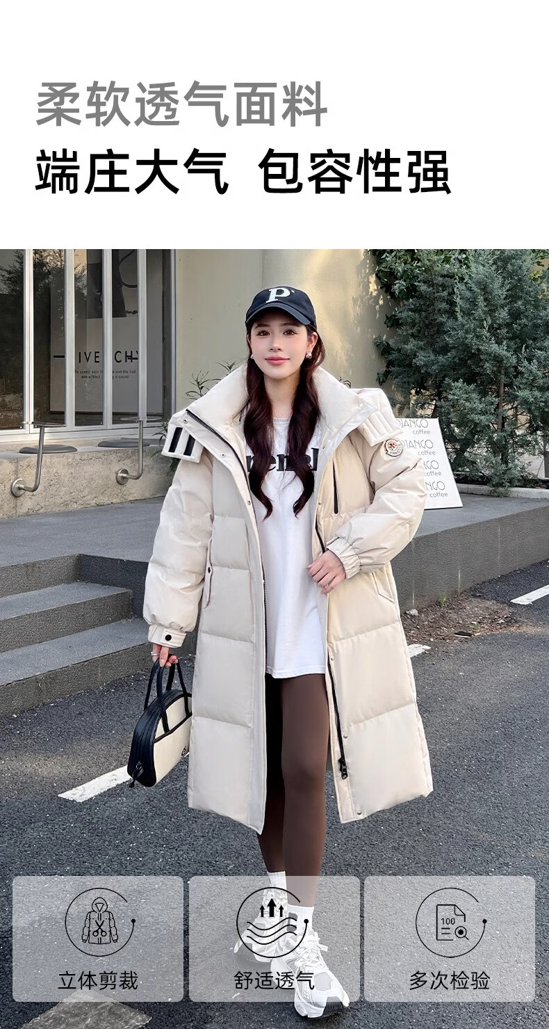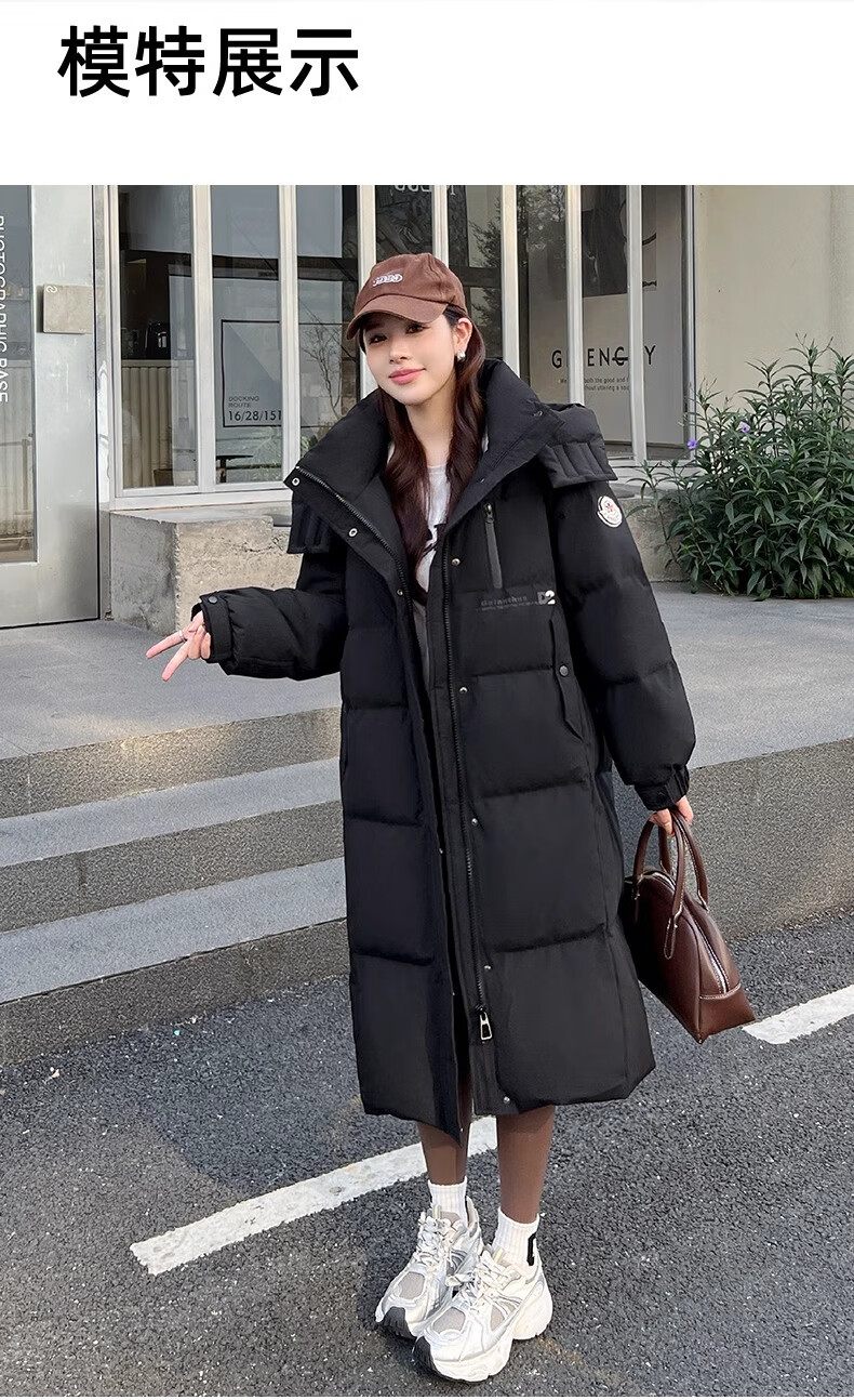 鸭鸭(YAYA)羽绒服女士2024冬新款中长款时尚百搭连帽保暖90鸭绒厚外套XB 黑色 165/88A(L)