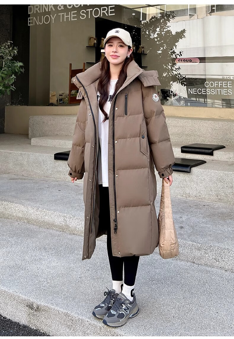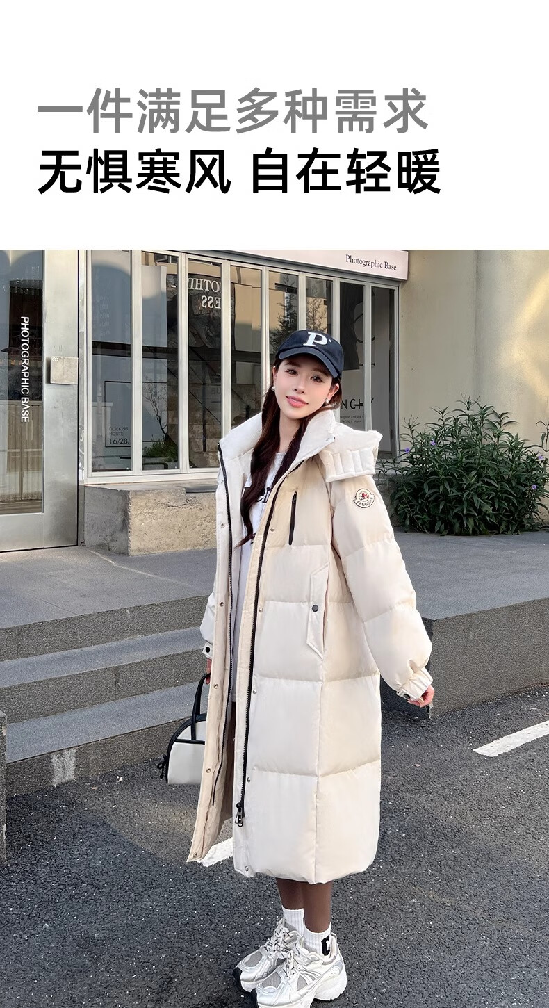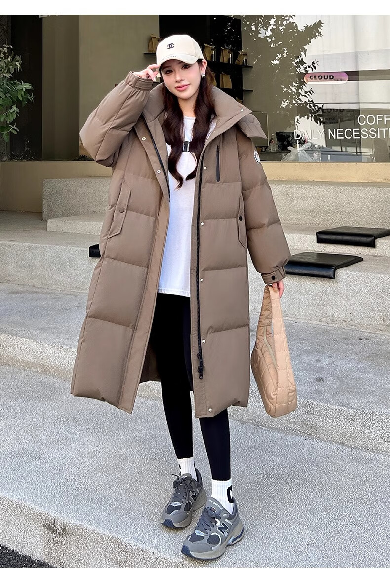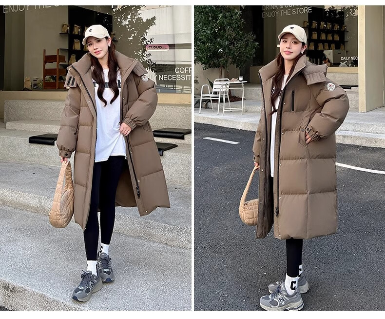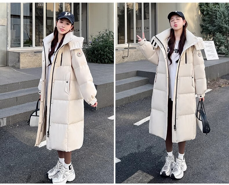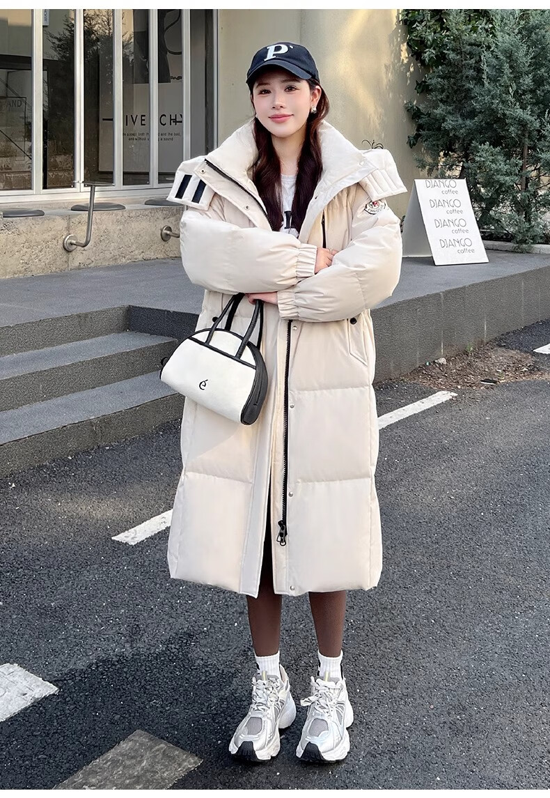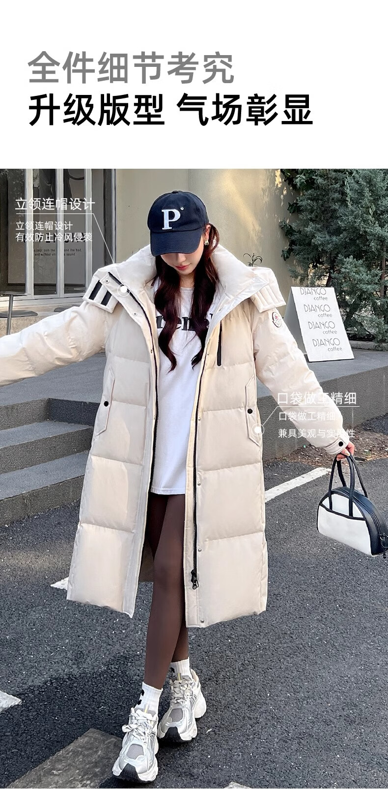 鸭鸭(YAYA)羽绒服女士2024冬新款中长款时尚百搭连帽保暖90鸭绒厚外套XB 黑色 165/88A(L)