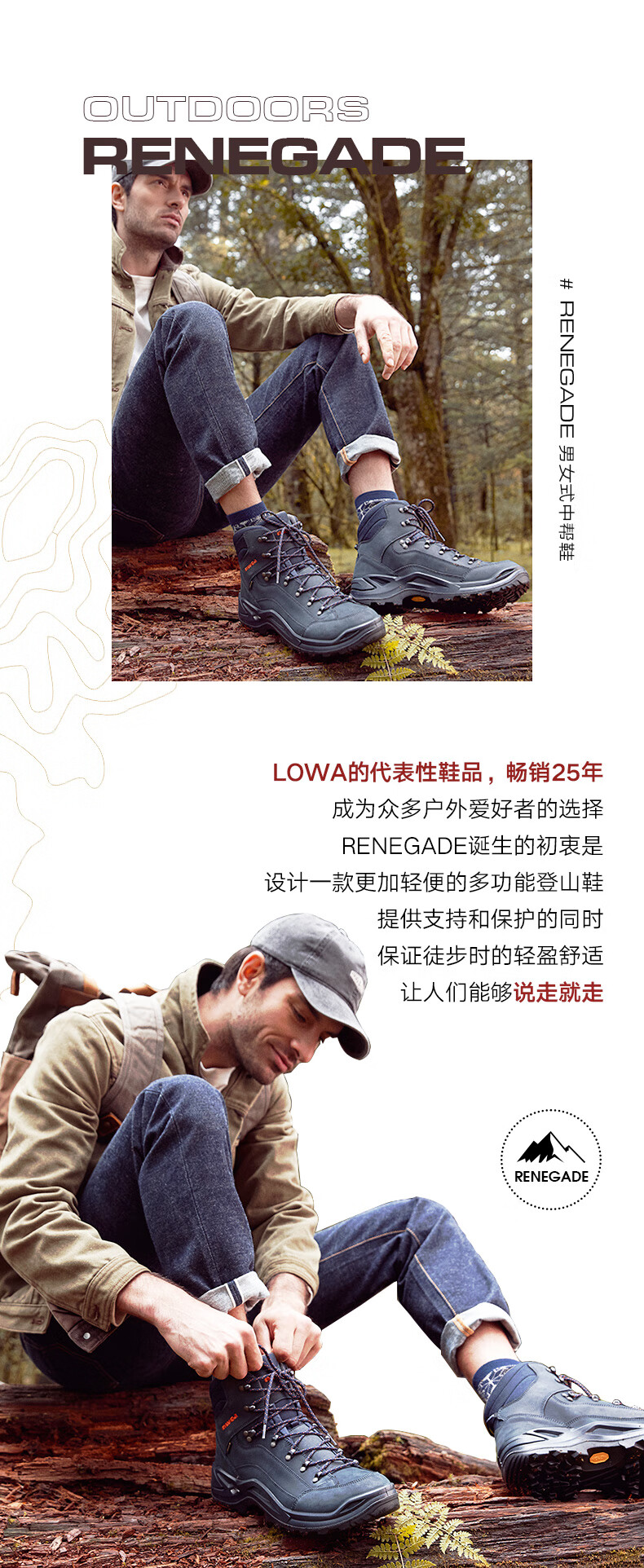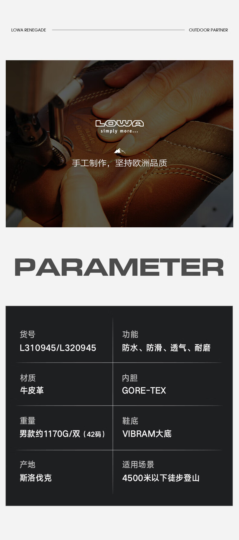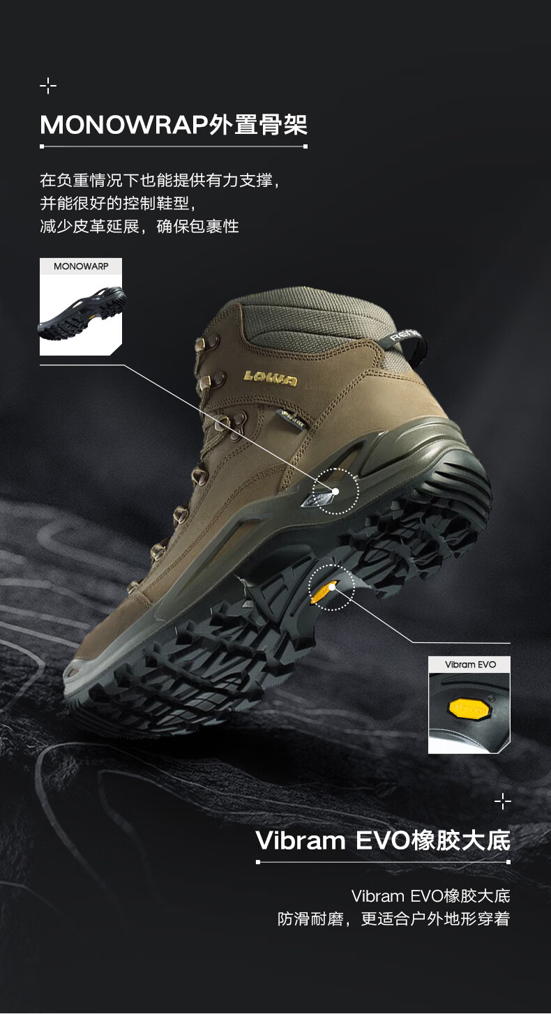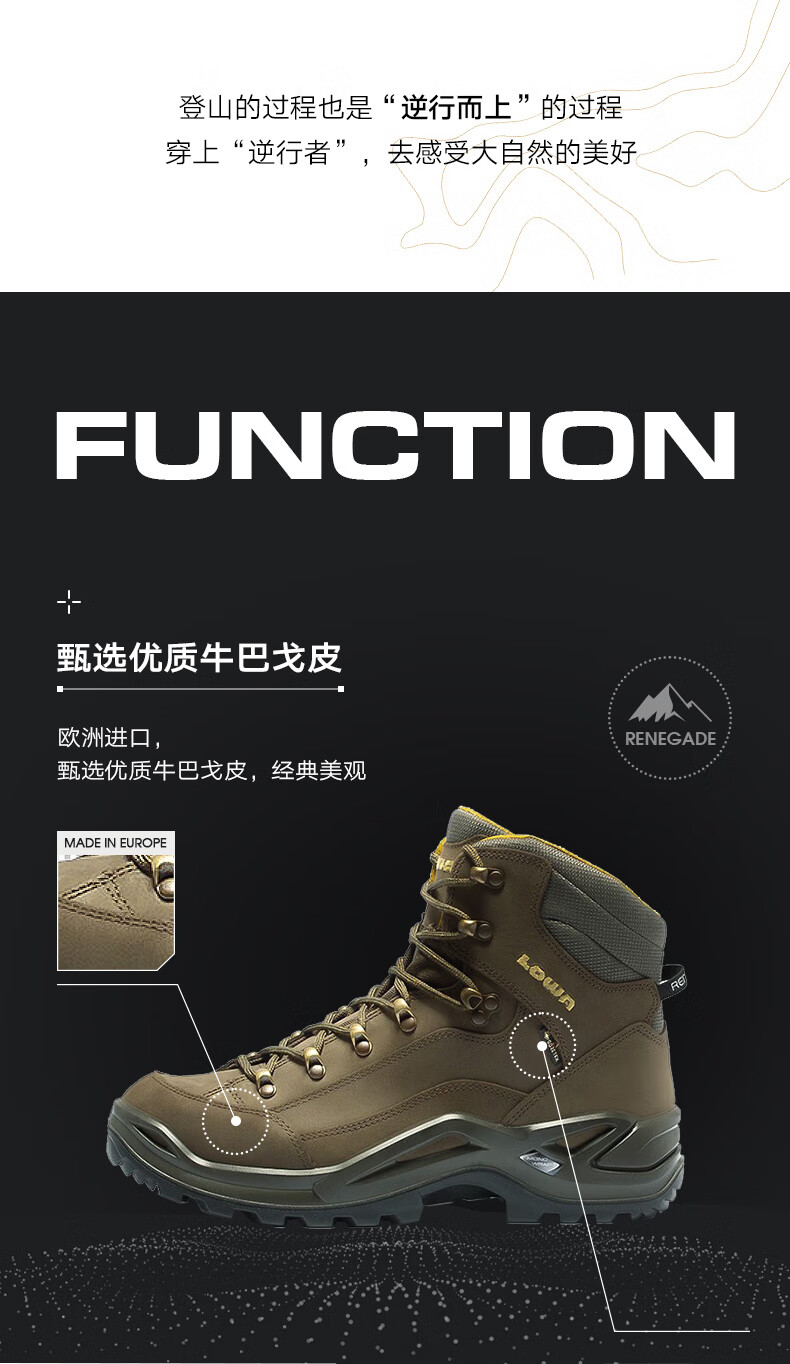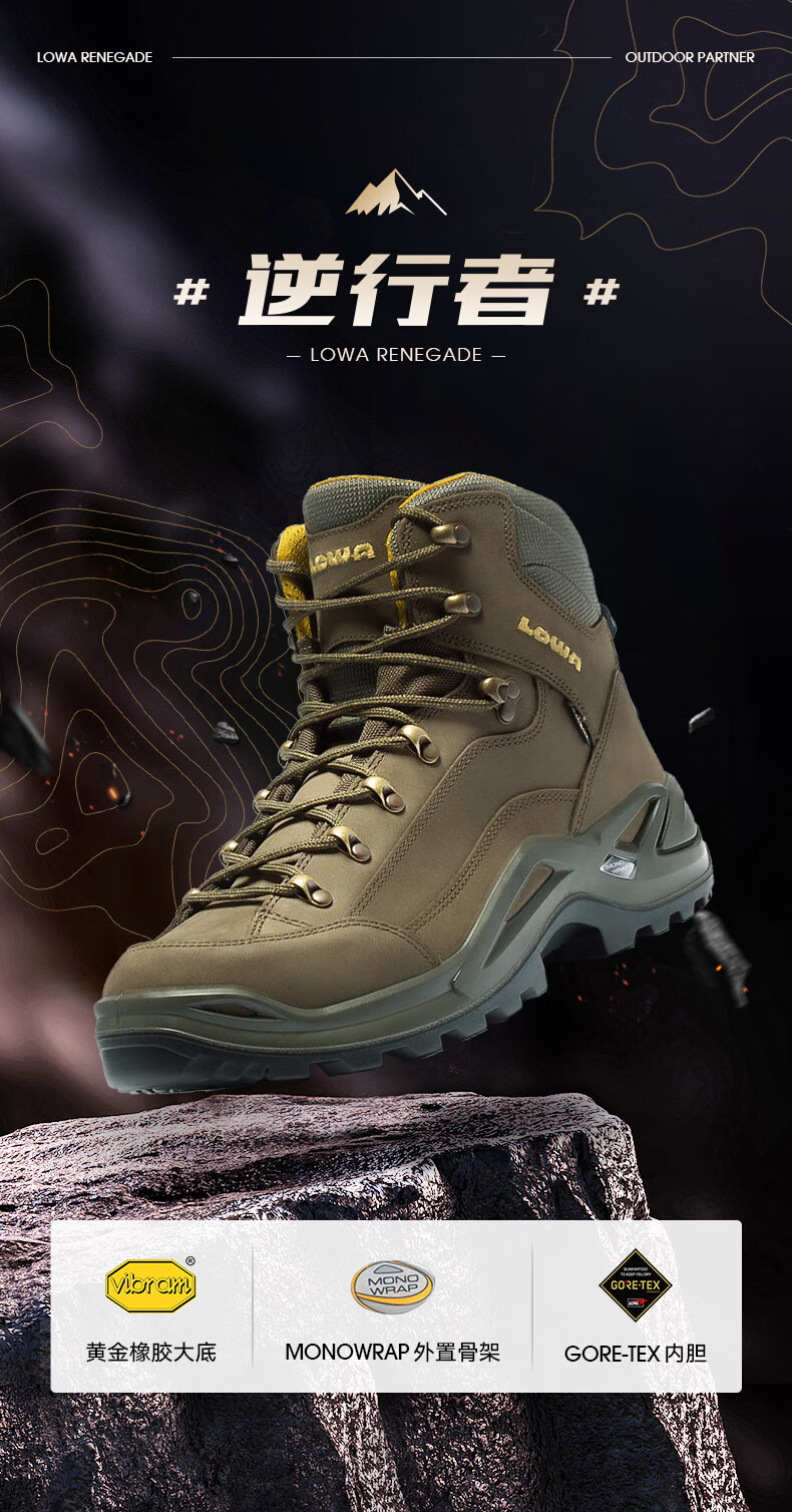 LOWA逆行者德国登山鞋专业户外作战靴goretex防水防滑徒步鞋男春夏款 橄榄色/深黄色 42
