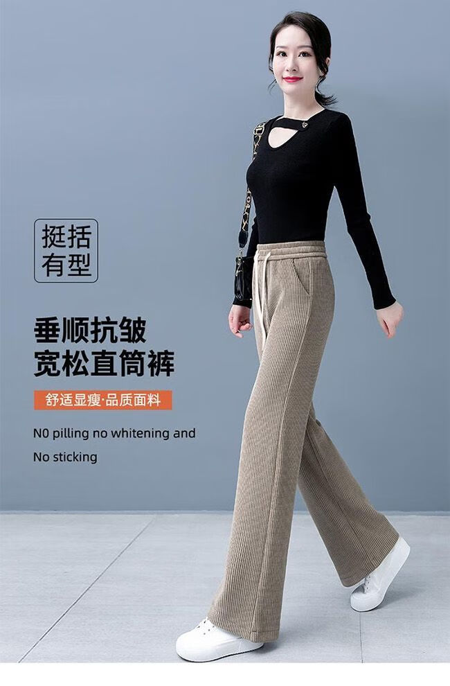 忆思减2025春夏秋直筒裤宽松显瘦小个子休闲百搭长裤高腰垂感阔腿裤女 咖色款不加绒【无口袋】 常规 XL 【125-155斤】