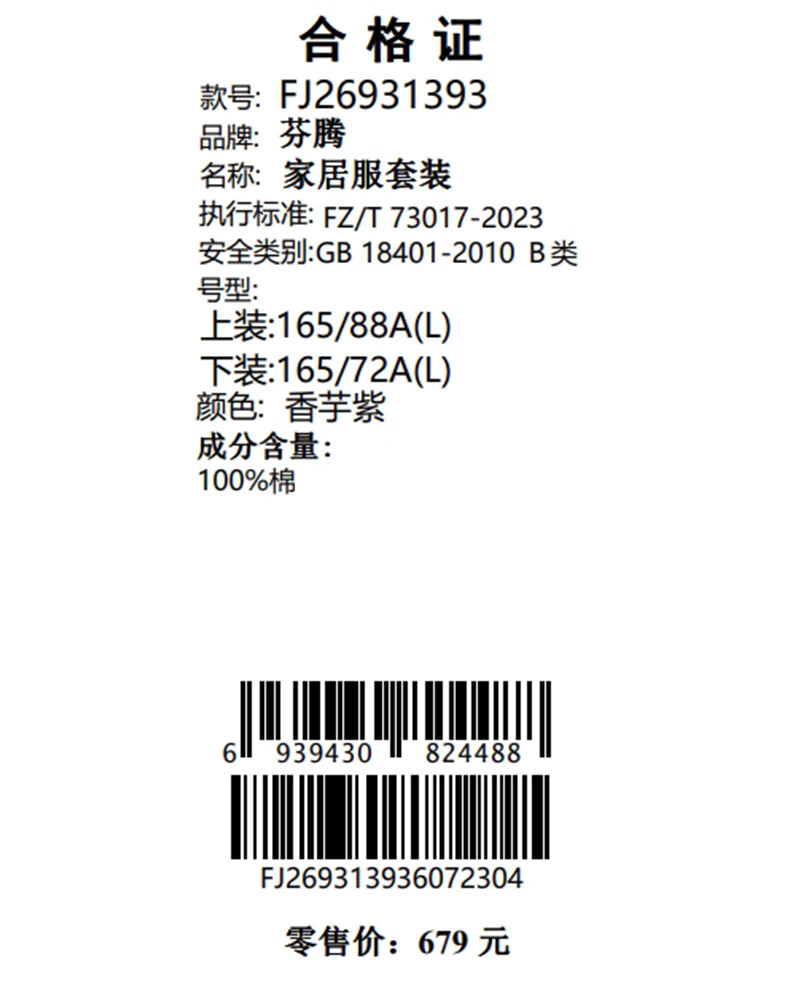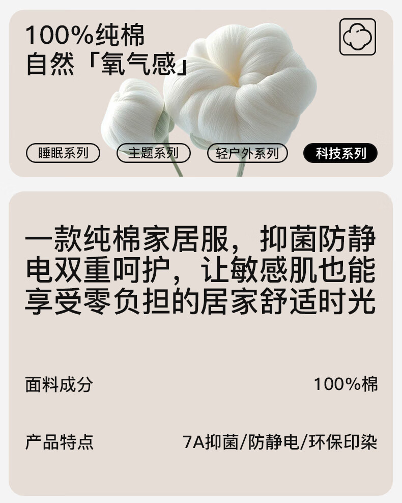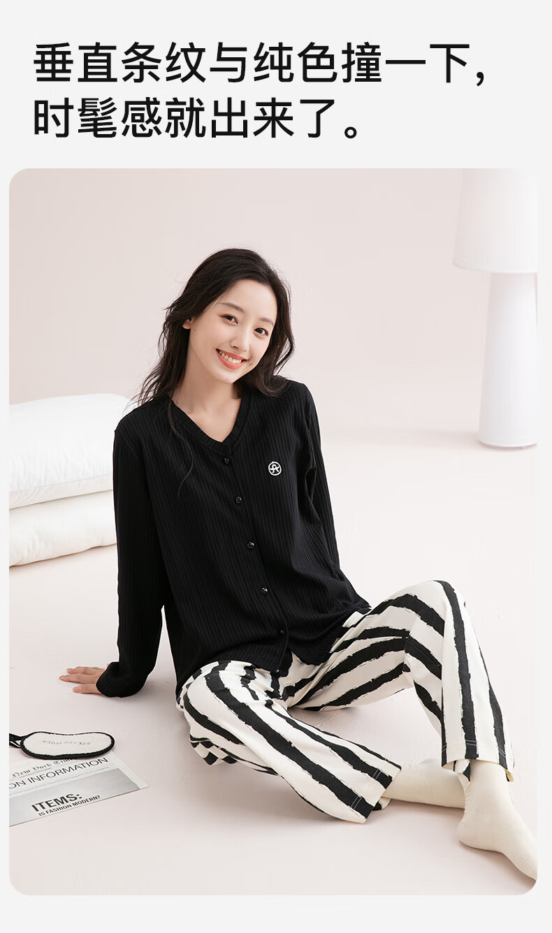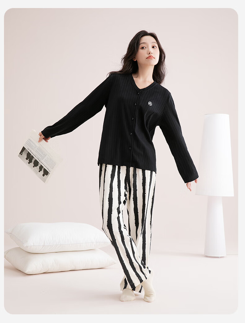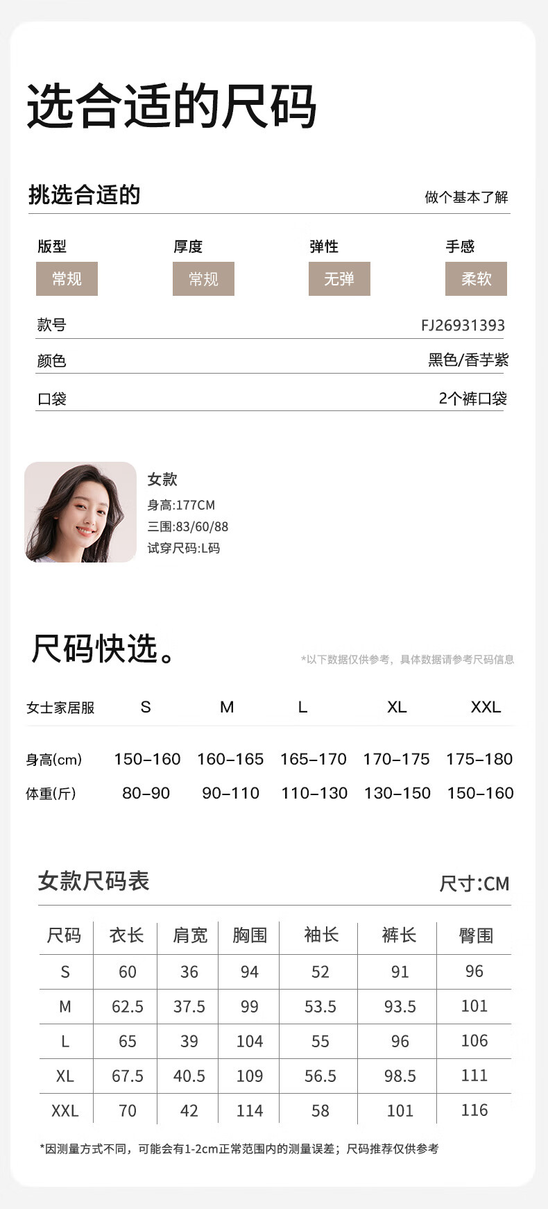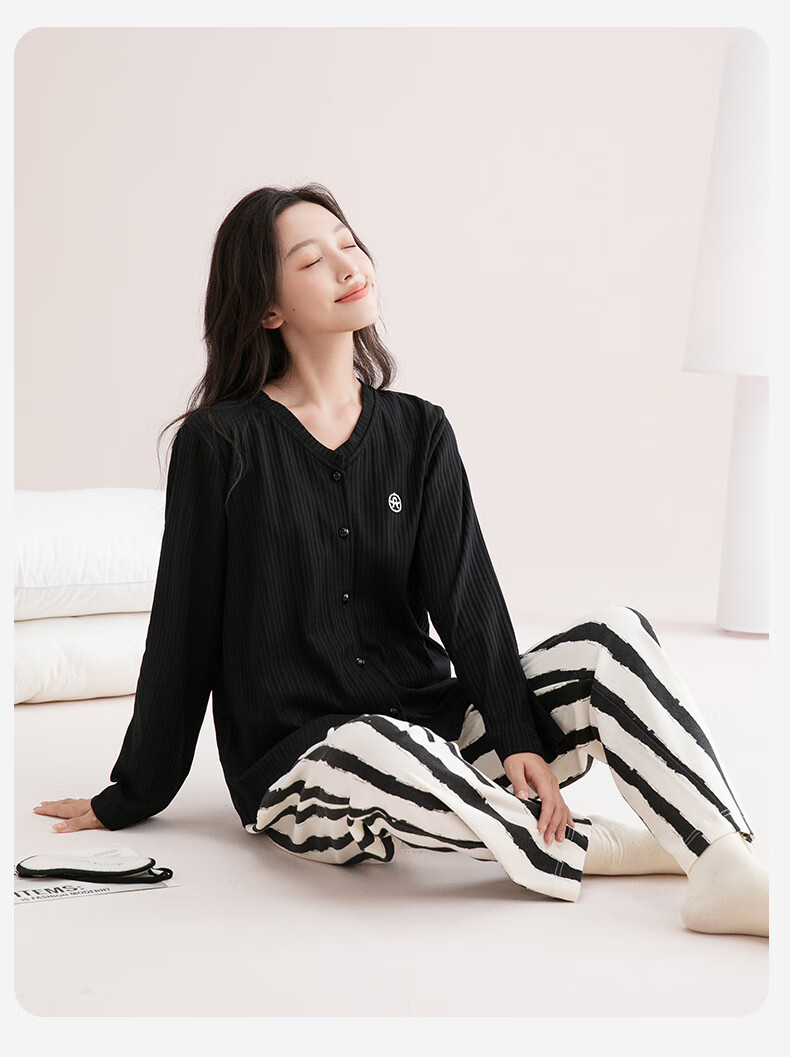 芬腾睡衣女100%纯棉2025秋季新款7A抑菌防静电V领长袖外穿家居服套装 香芋紫 XL