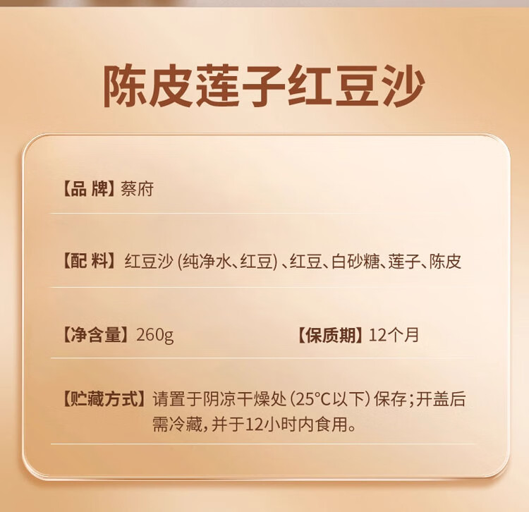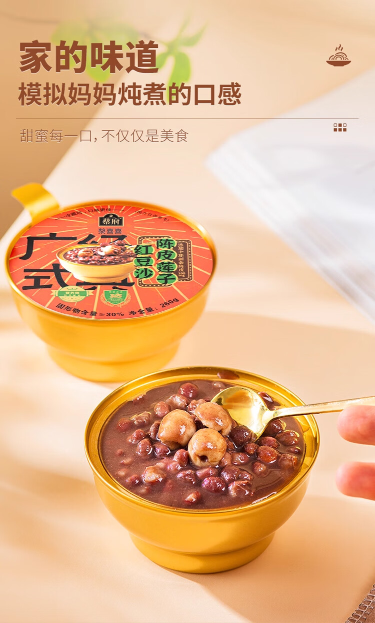 蔡府(CHAIFOO)陈皮莲子红豆沙260g*1碗尝鲜装即食速食营养早餐养生粥代餐粥