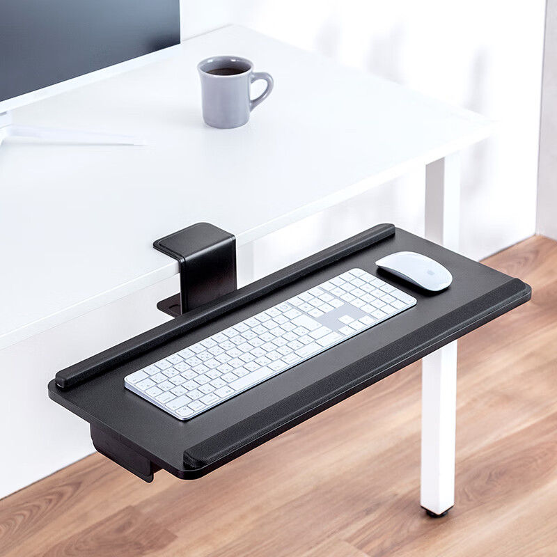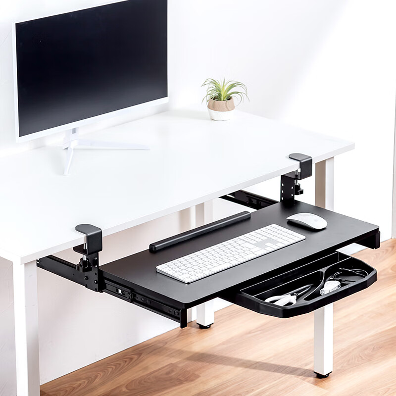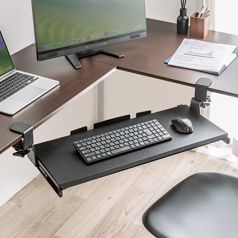 山业sanwa键盘鼠标托架支架 旋转可伸缩可调节托台增高架 桌下延伸板扩展板 免打孔桌下托 360°可旋转-面板厚度1.5~6.8cm适合
