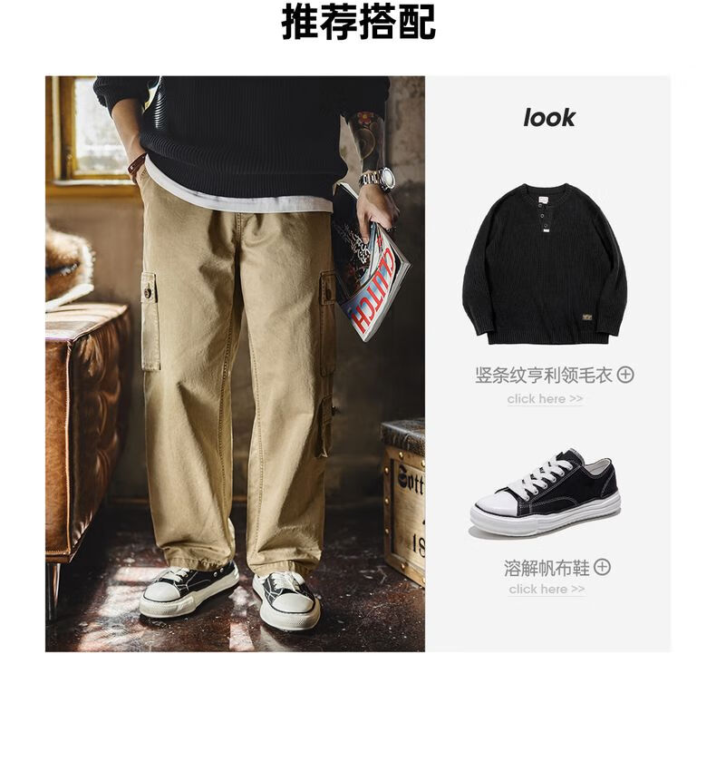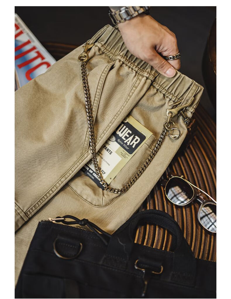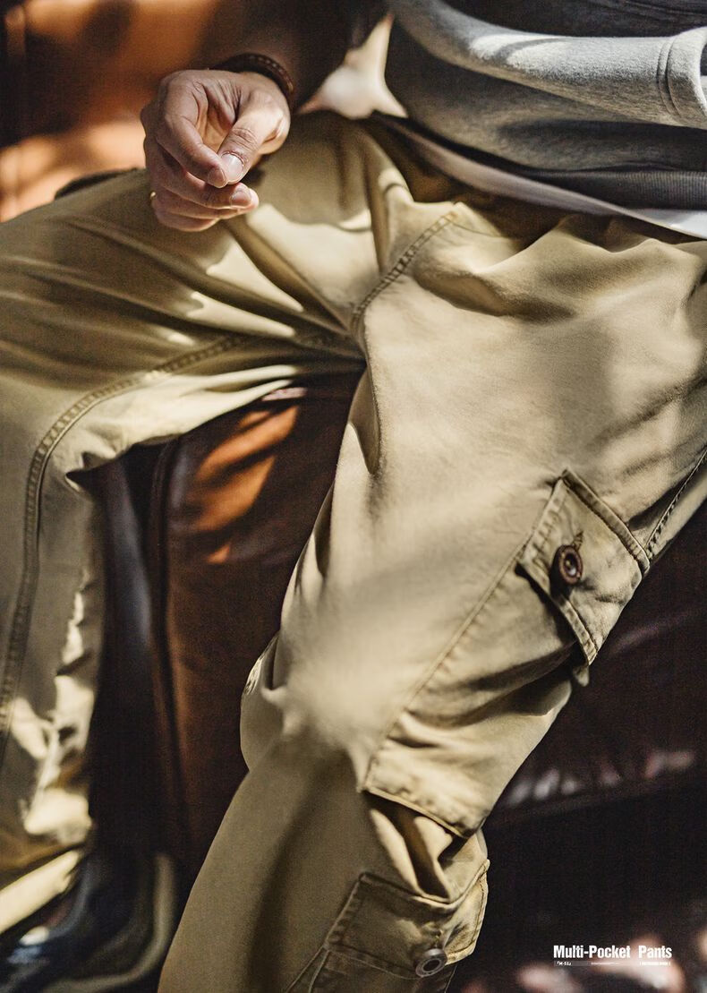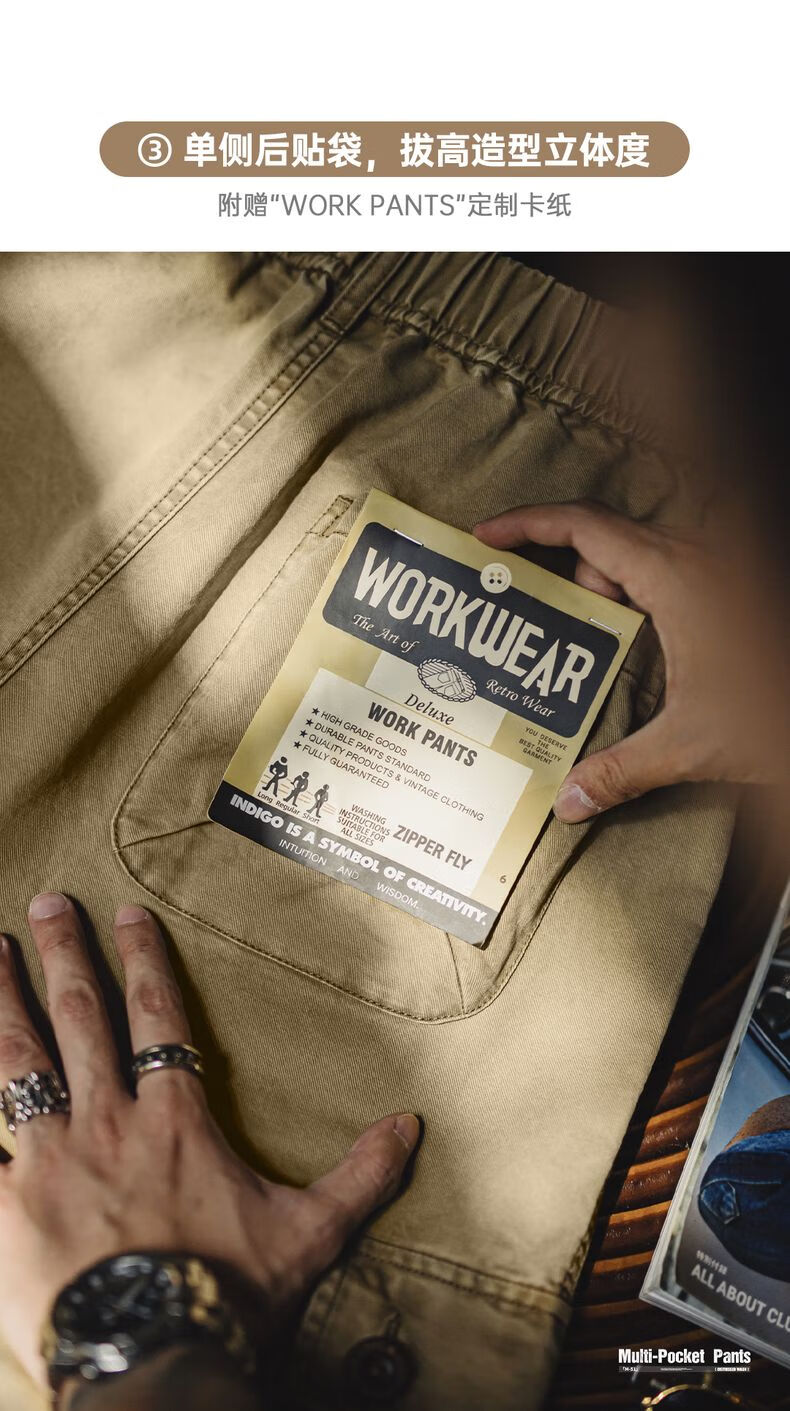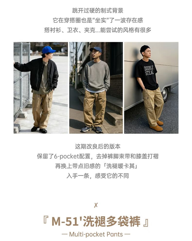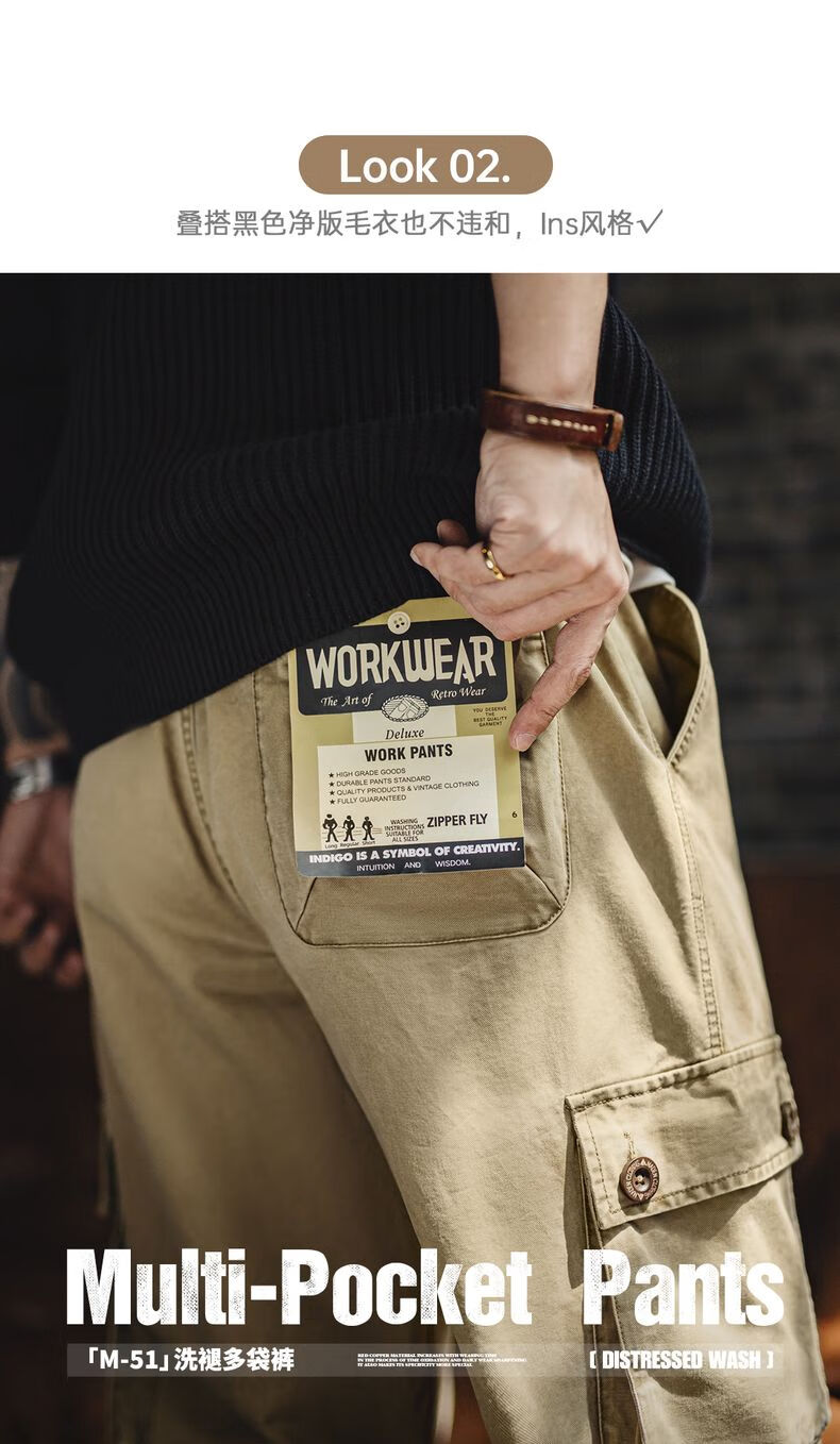 马登工装美式复古m51卡其色多口袋休闲裤水洗做旧直筒长裤子男秋 卡其色 XL