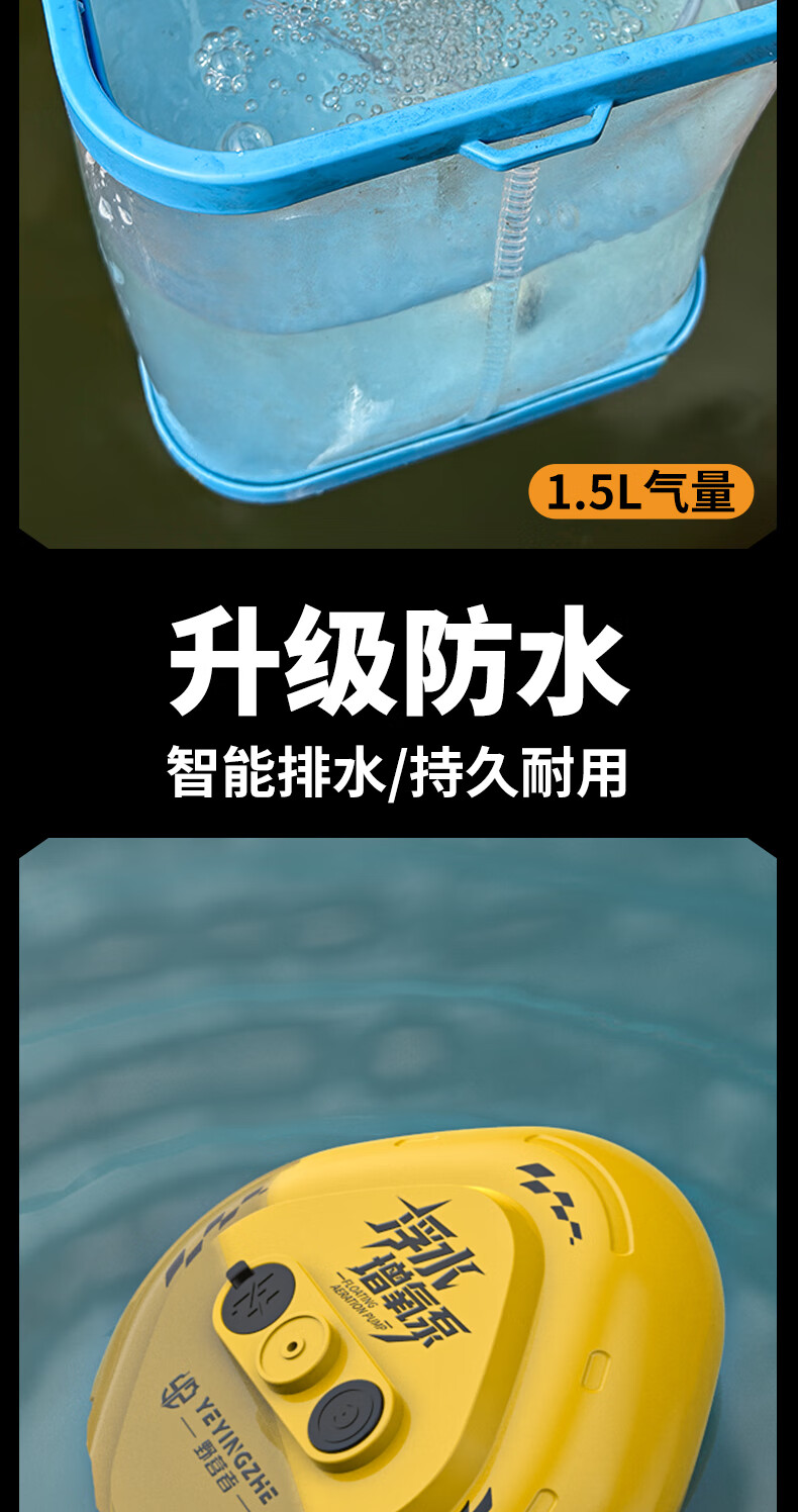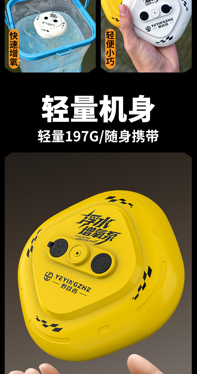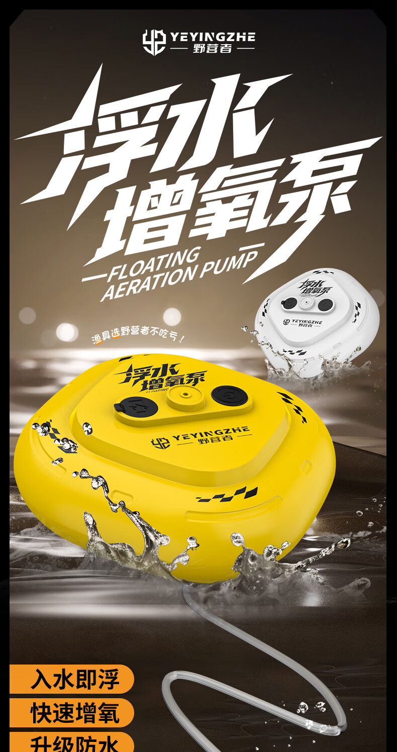 野营者浮水增氧泵户外防水型增氧机钓鱼水面打氧机鱼缸钓鱼氧气泵 入水即浮-防水型【黄色】浮水增氧泵