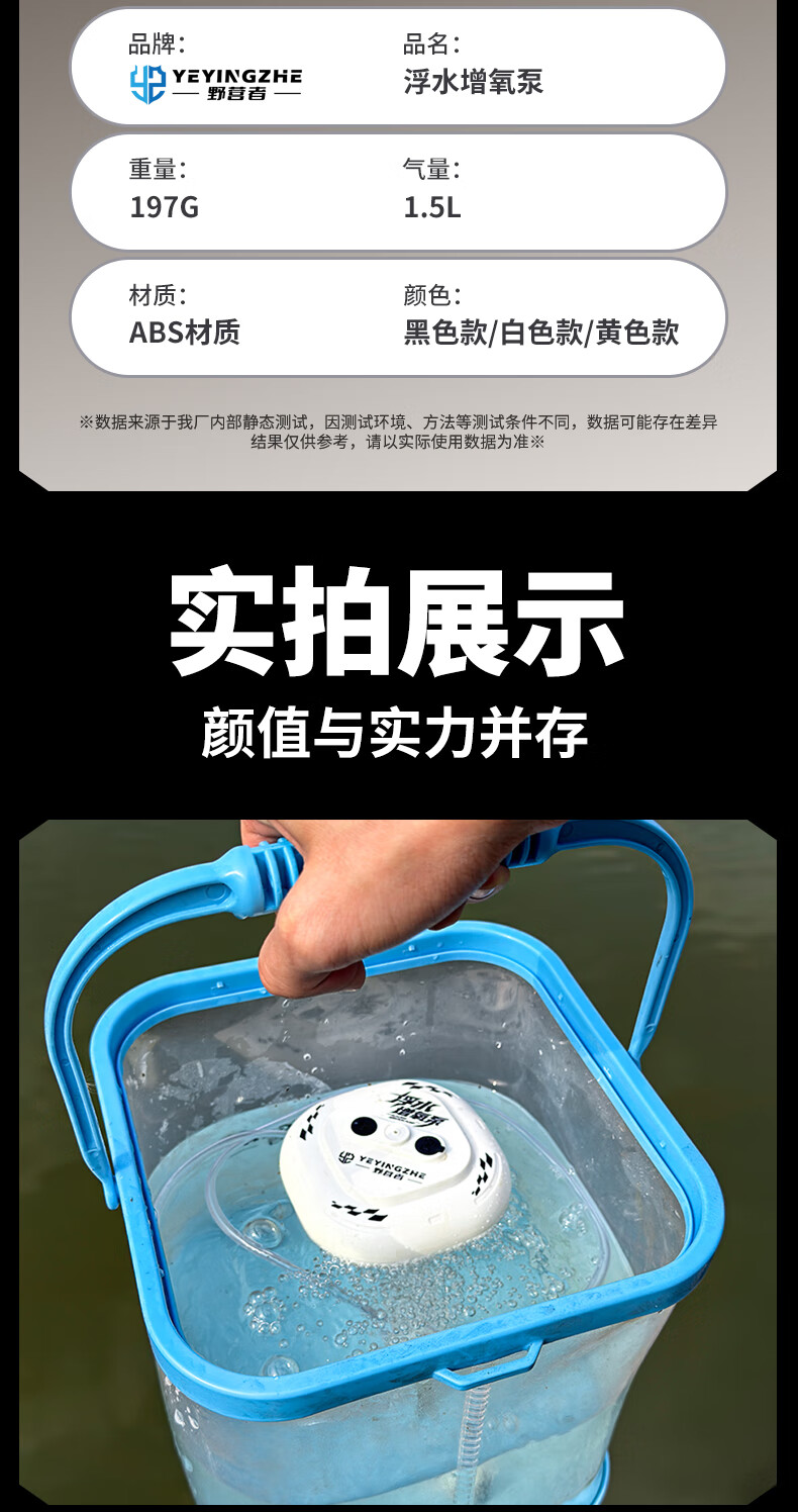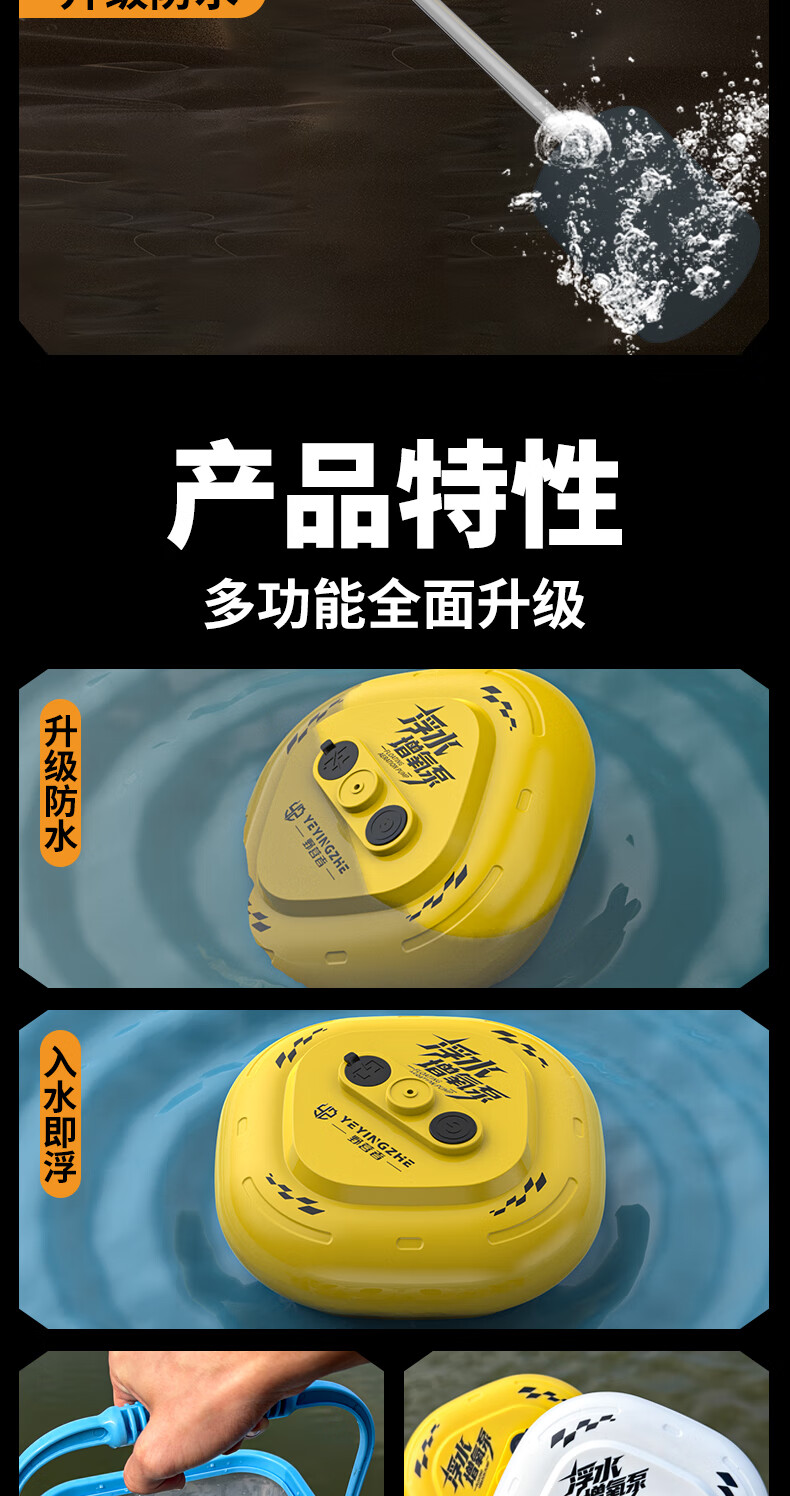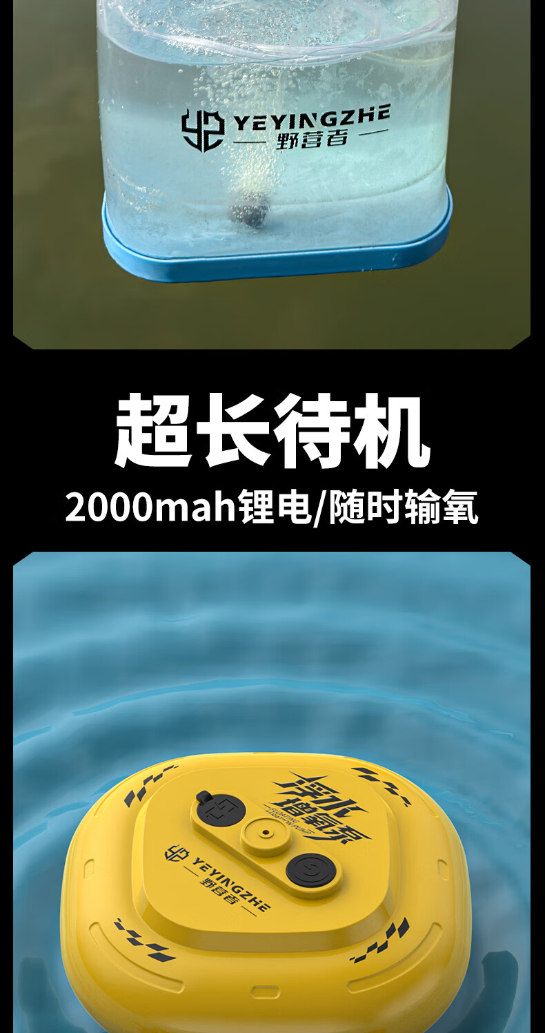 野营者浮水增氧泵户外防水型增氧机钓鱼水面打氧机鱼缸钓鱼氧气泵 入水即浮-防水型【黄色】浮水增氧泵