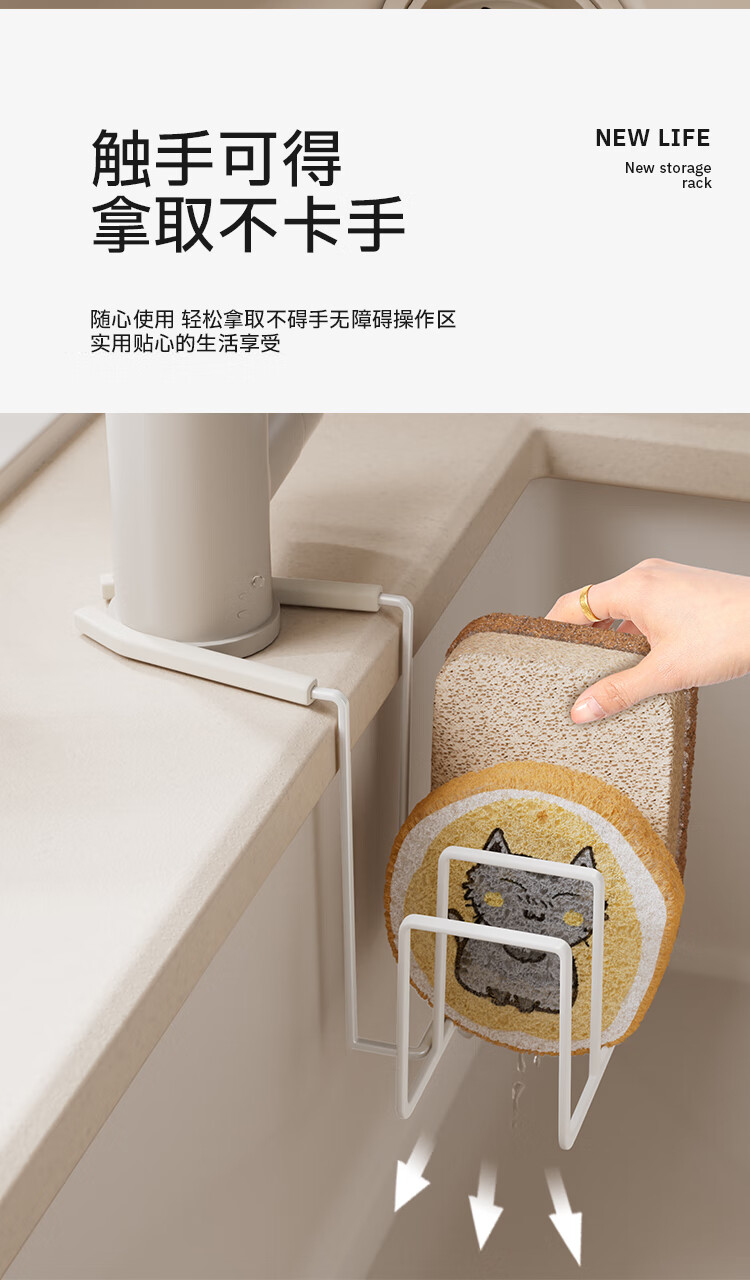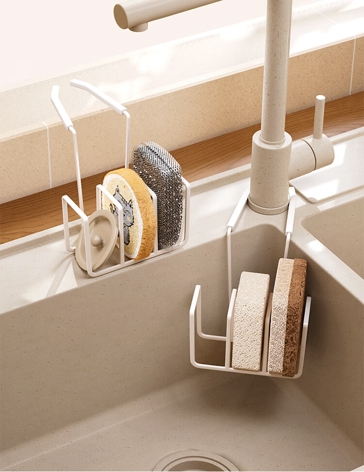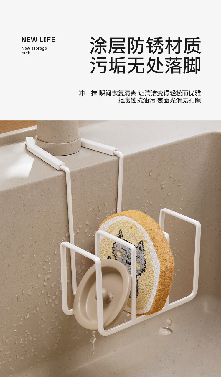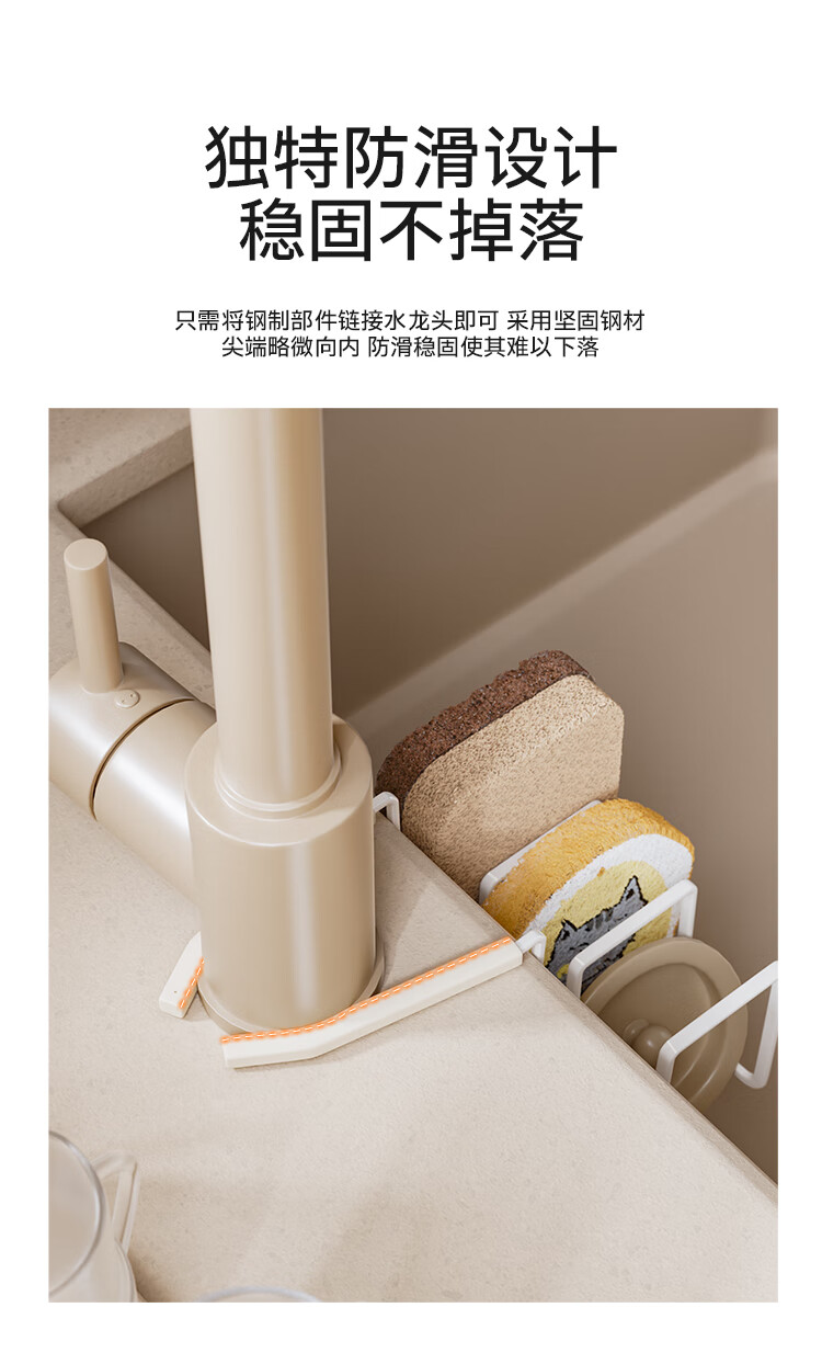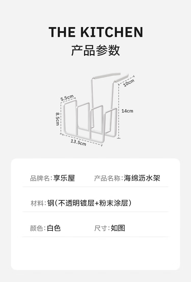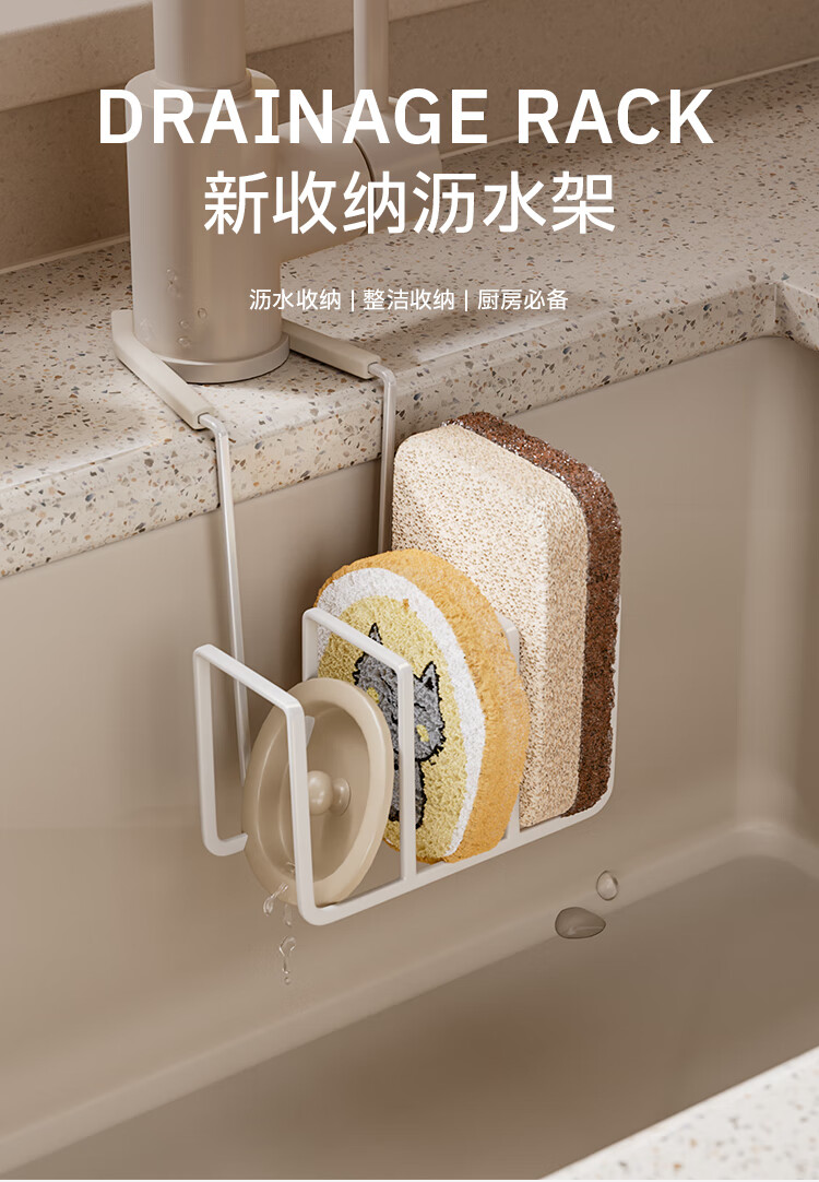 享乐屋海绵沥水架水龙头放钢丝球清洁球水槽置物架抹布架厨房清洁收纳架 黑色【免打孔 一挂即用】