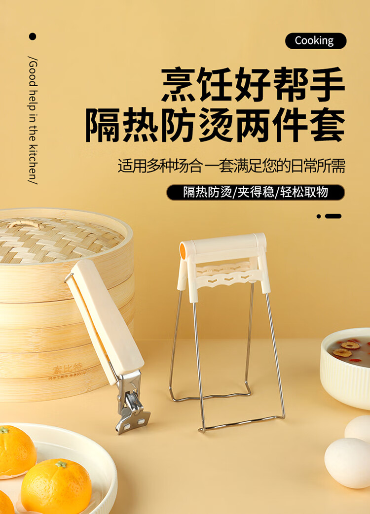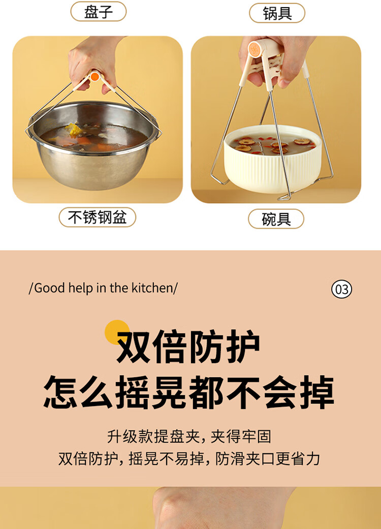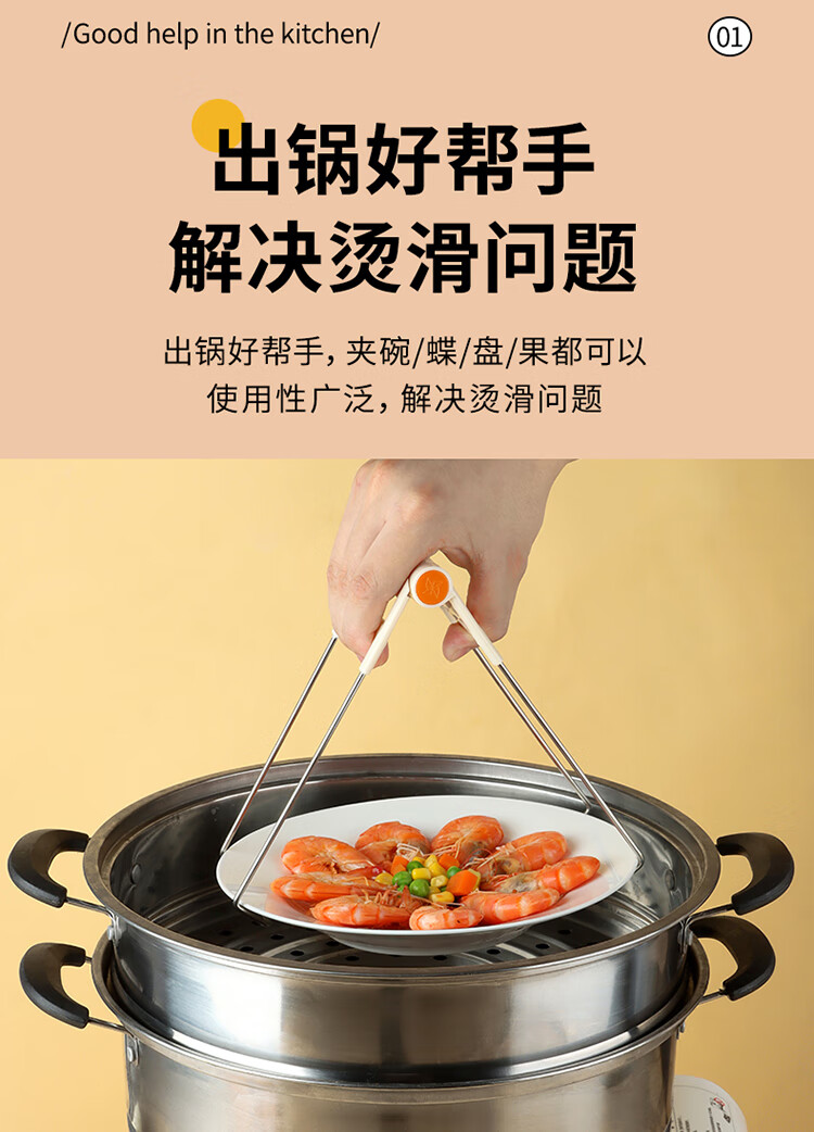 拜杰防烫夹2件套取盘夹碗器蒸锅夹子厨房防滑厨房提盘器取碗夹