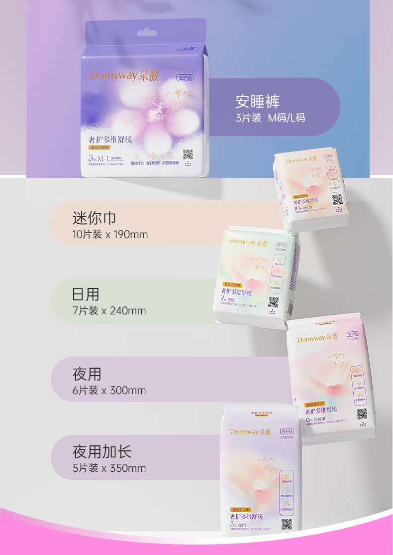 朵薇【48元任选8包】黄子韬卫生巾姨妈巾日用夜用迷你巾经期卫生巾 【日用】240mm7片*2包
