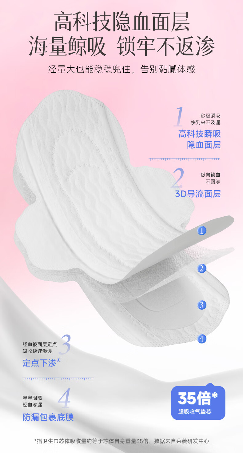 由意卫生巾薄款日夜整箱18包104片赠露营箱 京东自营