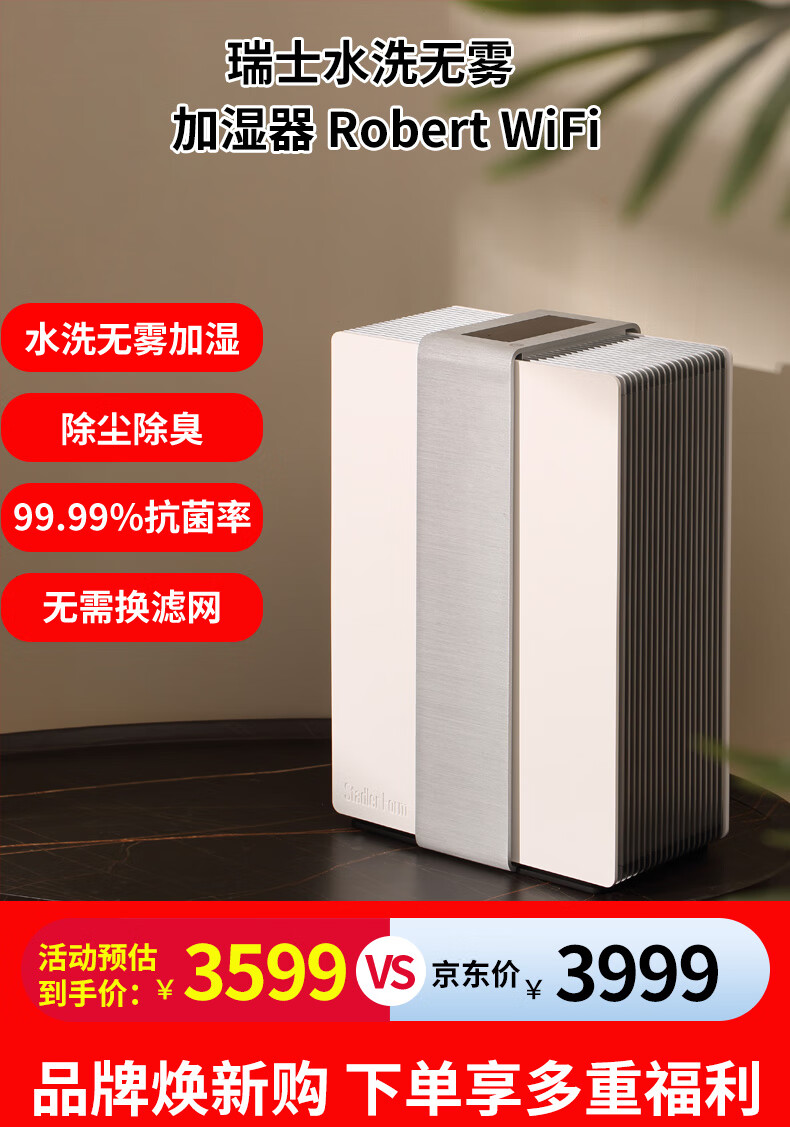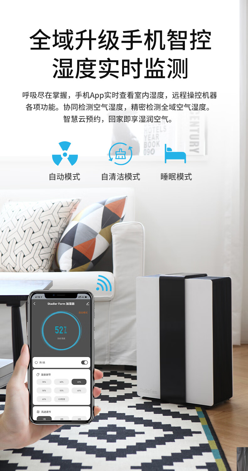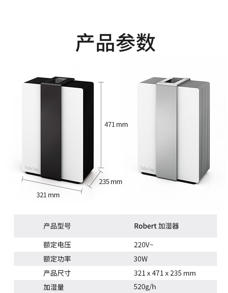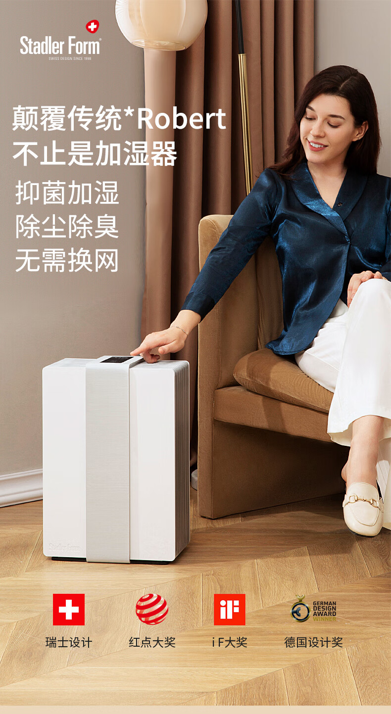 斯泰得乐(Stadler Form)智能无雾加湿器 家用卧室空气孕妇婴儿净化水洗加湿落地式Robert WiFi