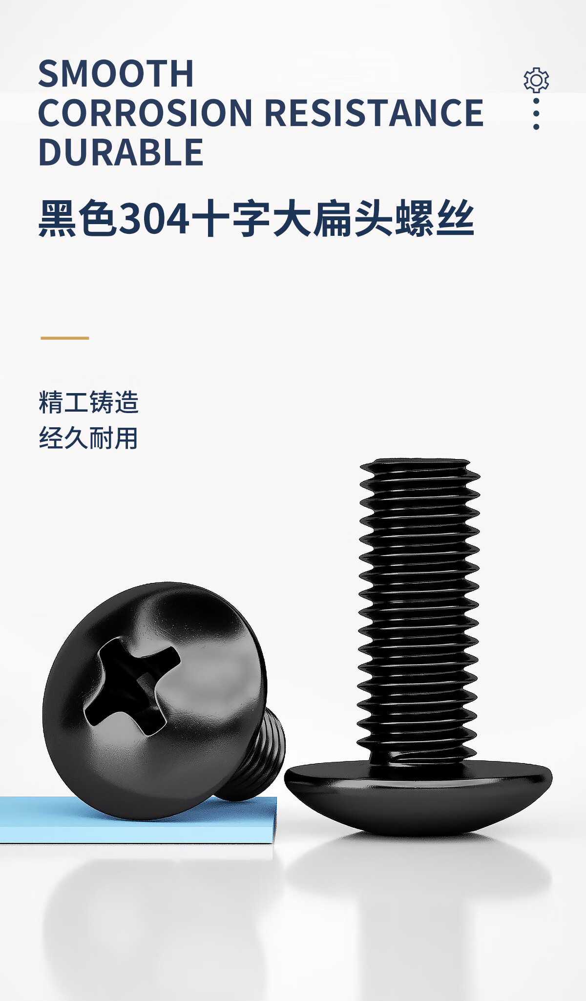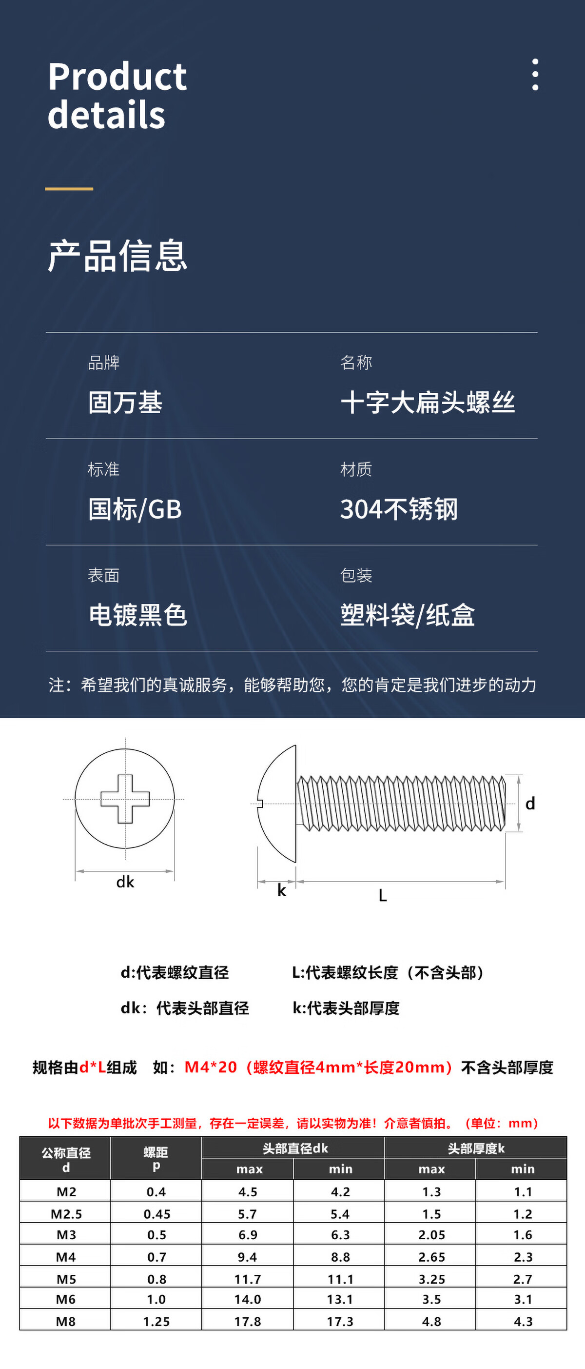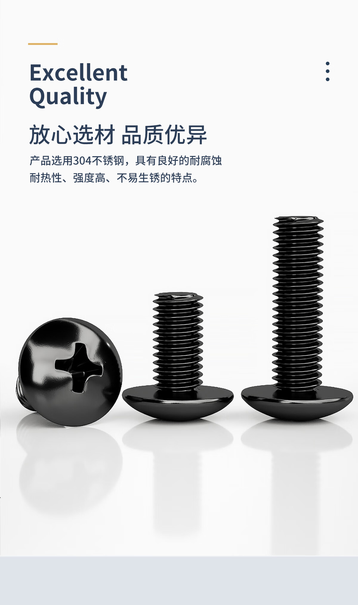 固万基(GUWANJI)304不锈钢黑色十字大扁头螺丝YB406蘑菇圆头螺栓伞头螺丝钉 M3x4[200个]