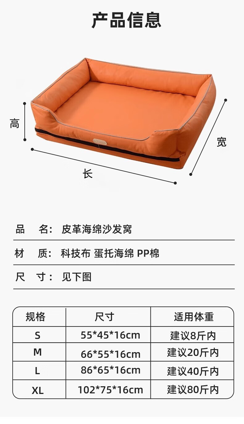 AILUKI日本可拆洗狗窝四季通用防水耐抓耐咬宠物窝中大型皮质狗床垫子 天蓝色 S:55*45*16cm【建议8斤内】