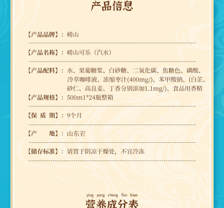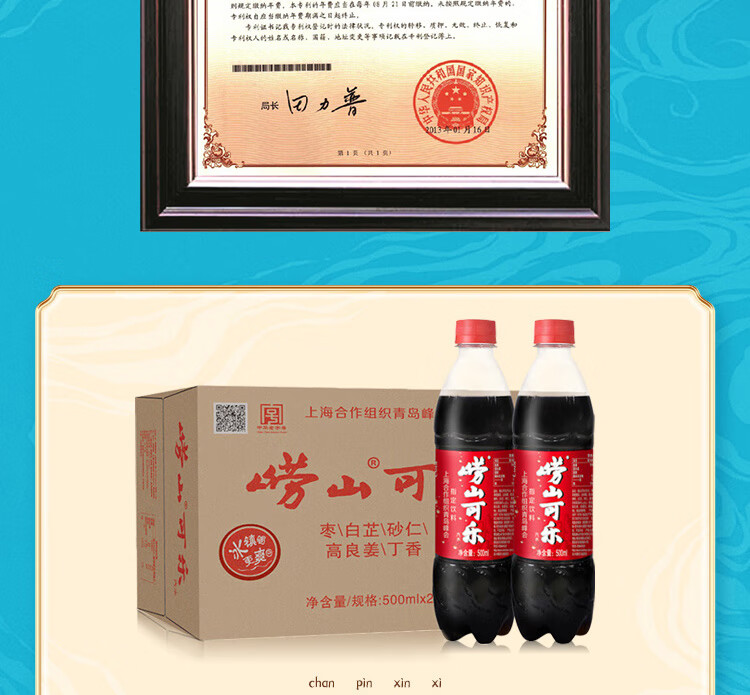 崂山【任嘉伦推荐款】中华老字号 国货可乐汽水 碳酸饮料 500ml*24瓶