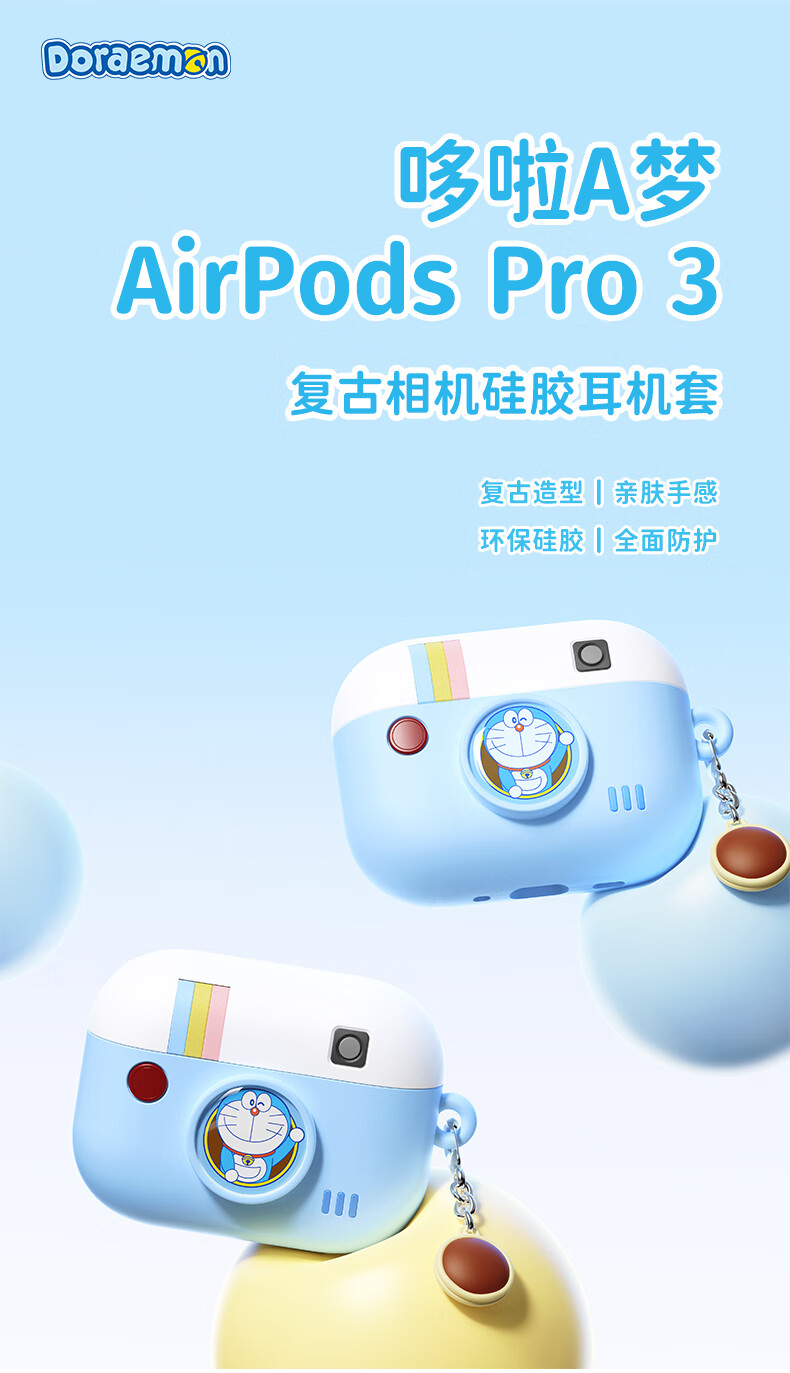 ROCK哆啦A梦适用Airpods Pro3保护套AirpodsPro三代耳机套壳全包硅胶可爱高颜值卡通动漫防摔男女生款