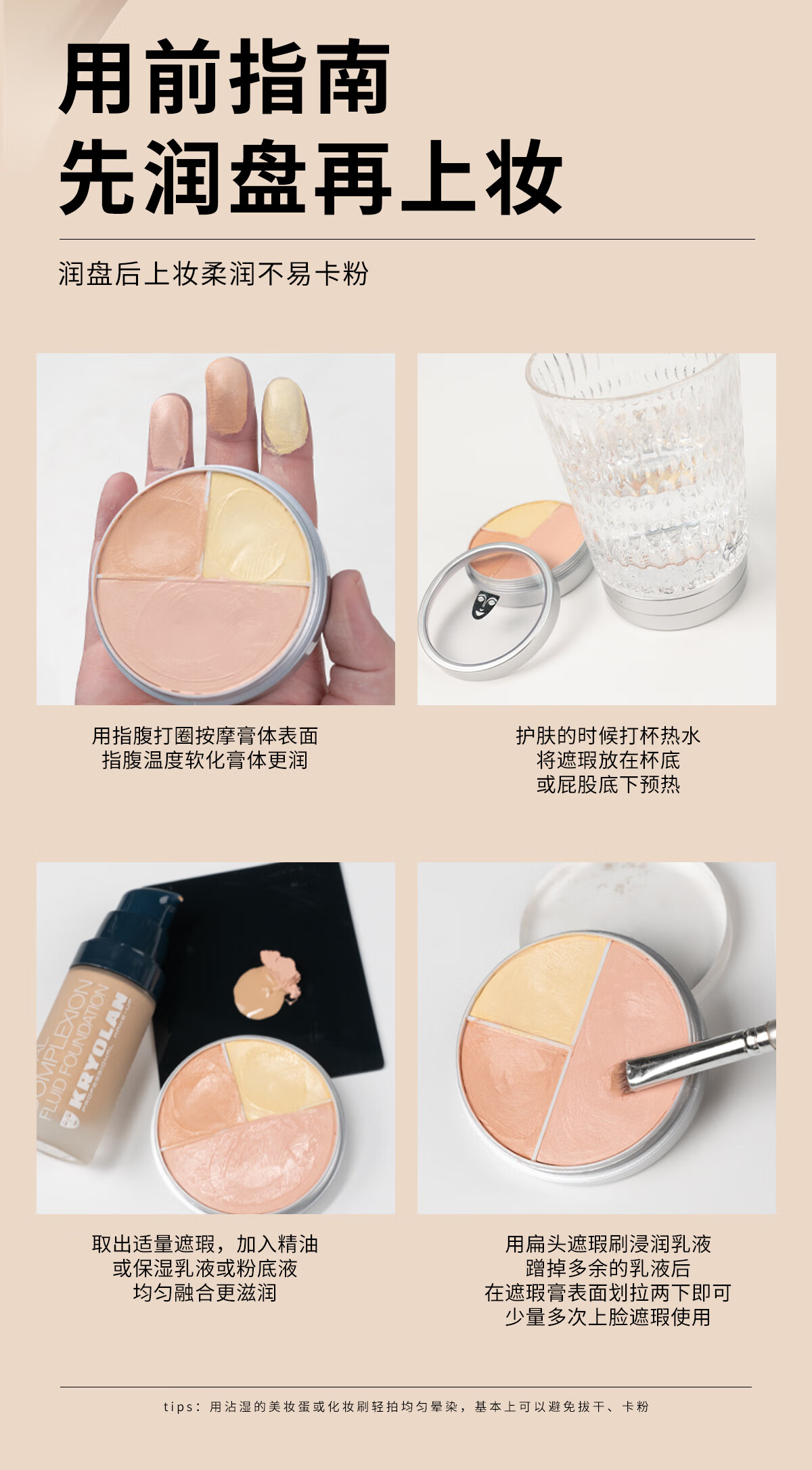KRYOLAN歌剧魅影遮瑕膏德国面具定制三色粉底40g遮痘印节日送生日礼物女