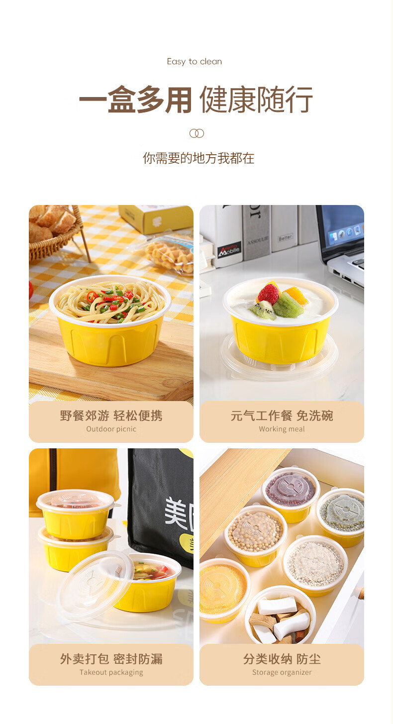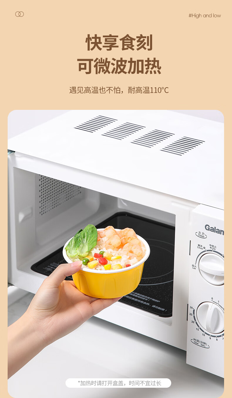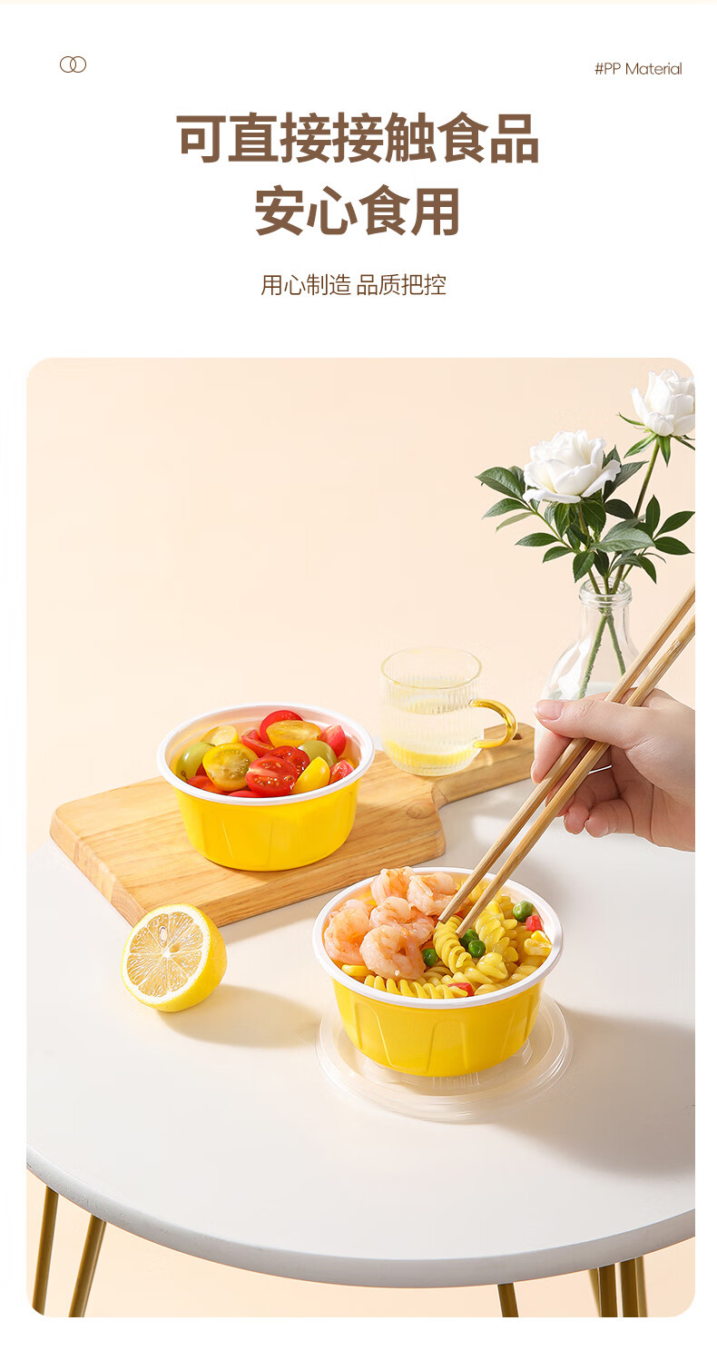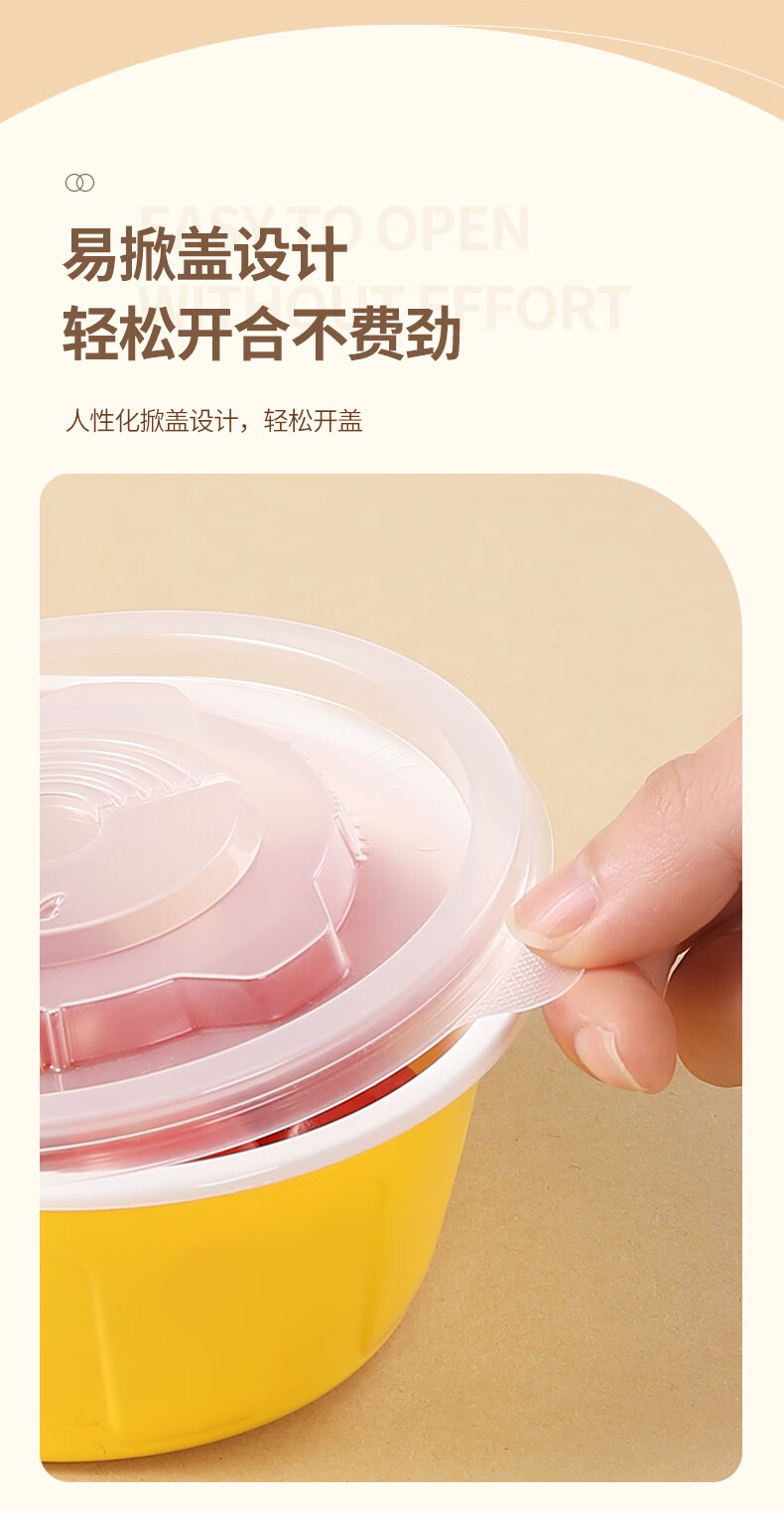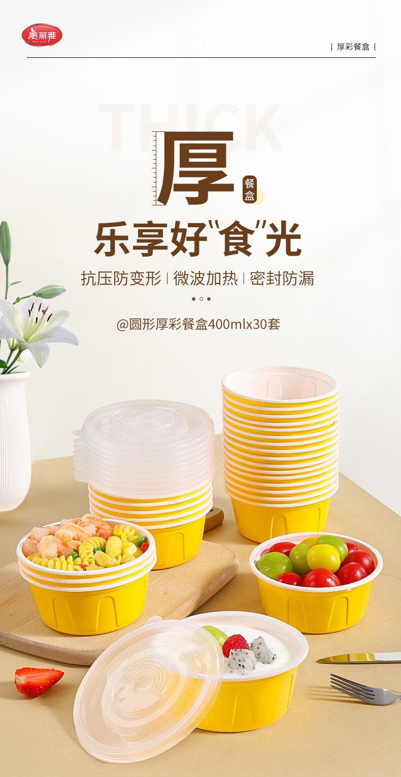 美丽雅一次性饭盒食品级餐盒带盖 快餐外卖打包厚彩餐盒碗 【圆形带盖】500ml* 30只