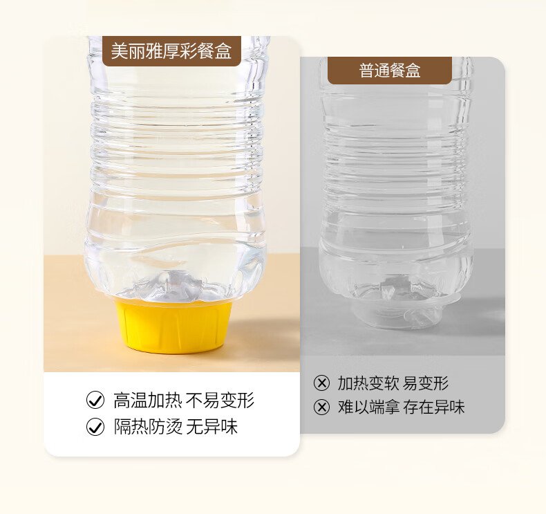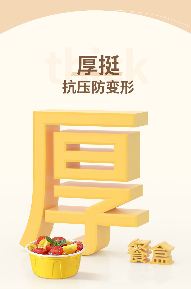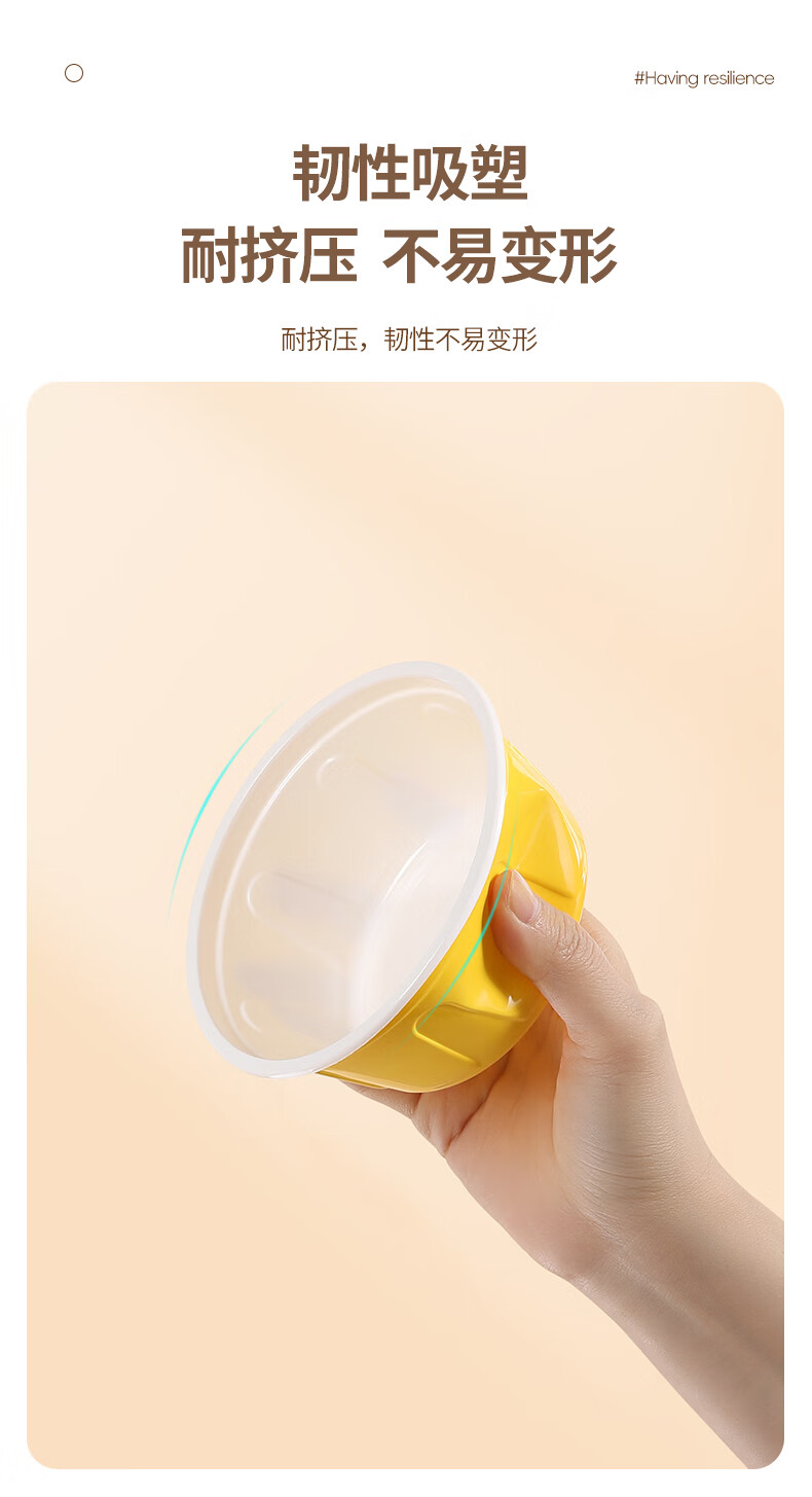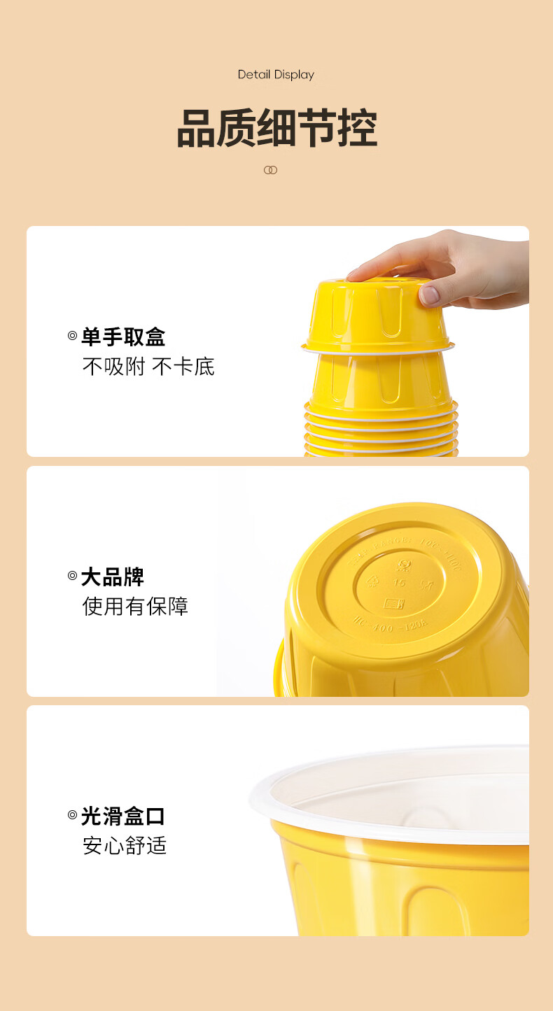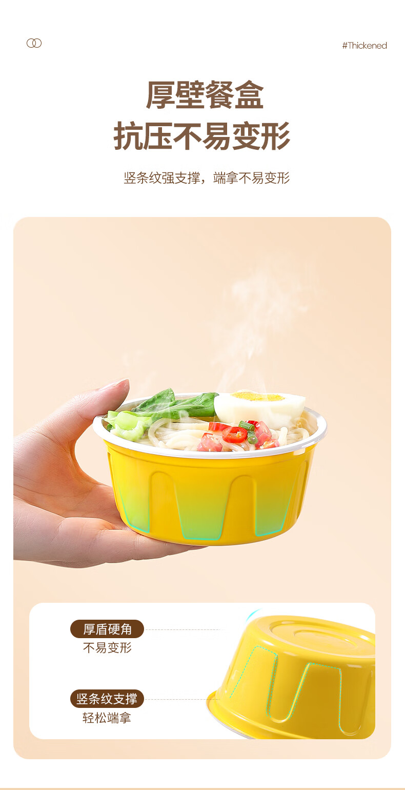 美丽雅一次性饭盒食品级餐盒带盖 快餐外卖打包厚彩餐盒碗 【圆形带盖】500ml* 30只